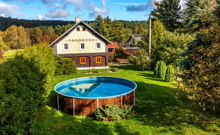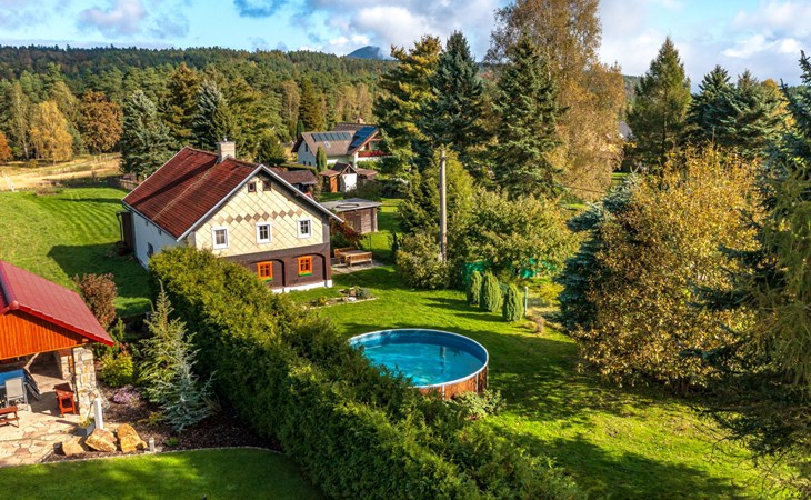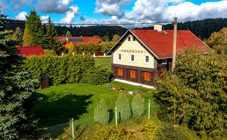 7 km von Děčín: Sehr schöner, freistehender Landsitz "Kámen", Baujahr 1875, renoviert im Jahre 2019. Ruhige, sonnige Lage, 200 m vom Waldrand. Zur Alleinbenutzung: Garten 1'600 m2, Aufstellpool (5,5 m Durchmesser, saisonale Verfügbarkeit: 01.Jun. - 30.Aug.). Sitzplatz, Pergola, Grill. Im Hause: Einstellraum für Fahrräder. Parkplatz (für 3 Autos) beim Haus. Lebensmittelgeschäft 300 m, Einkaufszentrum 9 km, Restaurant 1.5 km, Café 7 km, Bushaltestelle "Kámen" 250 m, Bahnstation "Děčín východ" 7 km, Freibad 4.5 km, Hallenbad 8 km. Golfplatz (9 Loch) 7 km, Tennis 7 km, Tennishalle 7 km, Minigolf 12 km, Wanderwege ab Haus 100 m, Kinderspielplatz 450 m. Nahe gelegene Sehenswürdigkeiten: vyhlídka Belveder 7 km, Děčín - zoo, zámek, aquapark 9 km, Hřensko, Pravčická brána 11 km, Děčínský Sněžník, Bad Schandau, zříceniny hradů Falkenštejn, Šunštejn 20 km, Liberec, Drážďany 70 km. Wandergebiete: kaňon Labe, Jetřichovické skály, České Švýcarsko/Böhmische Schweiz.