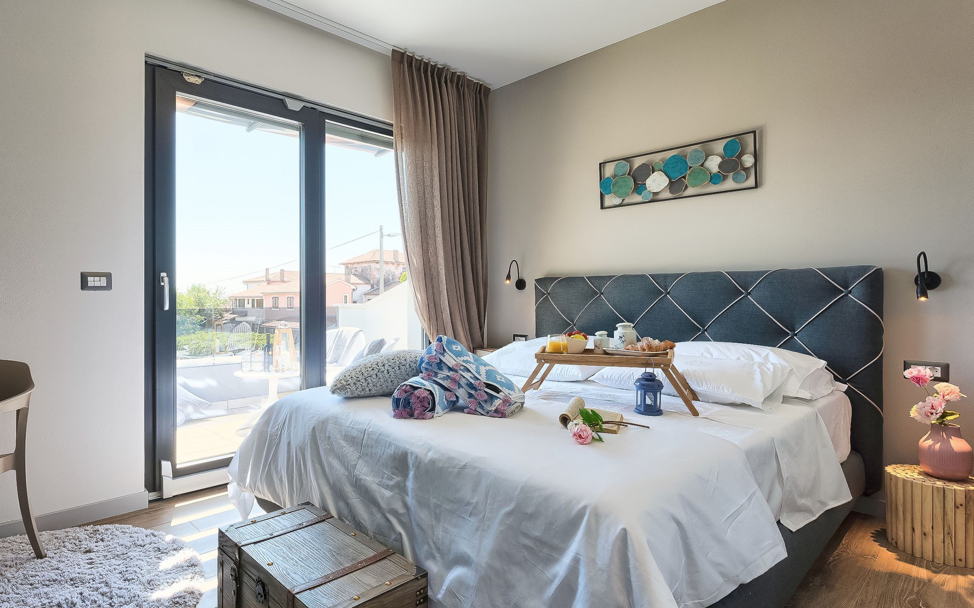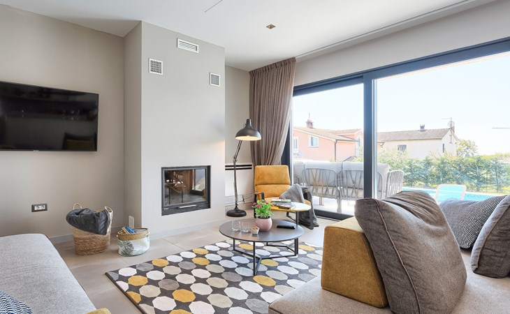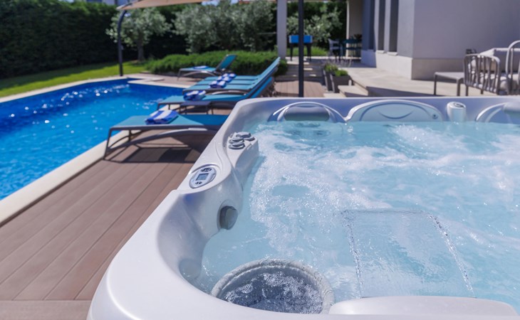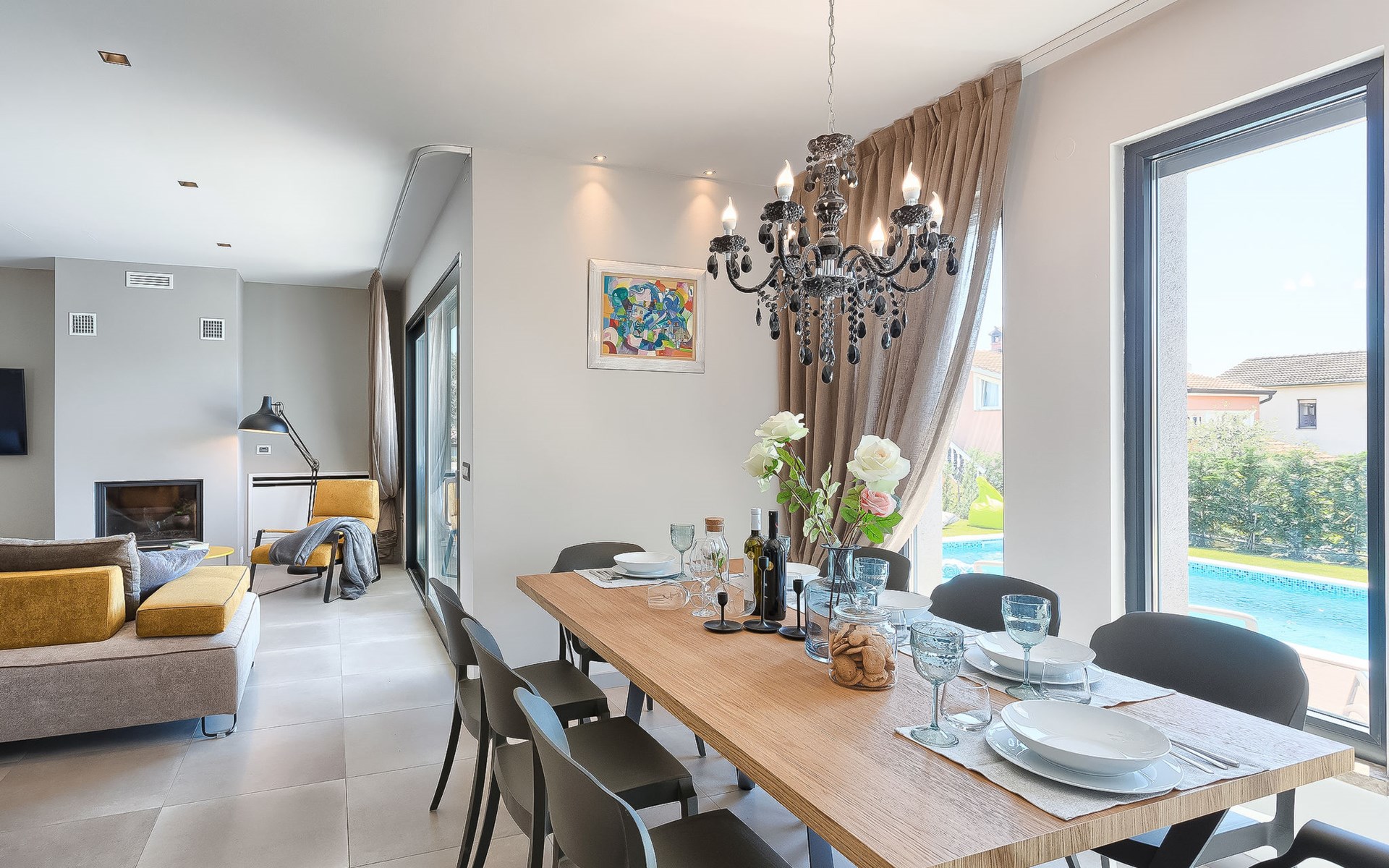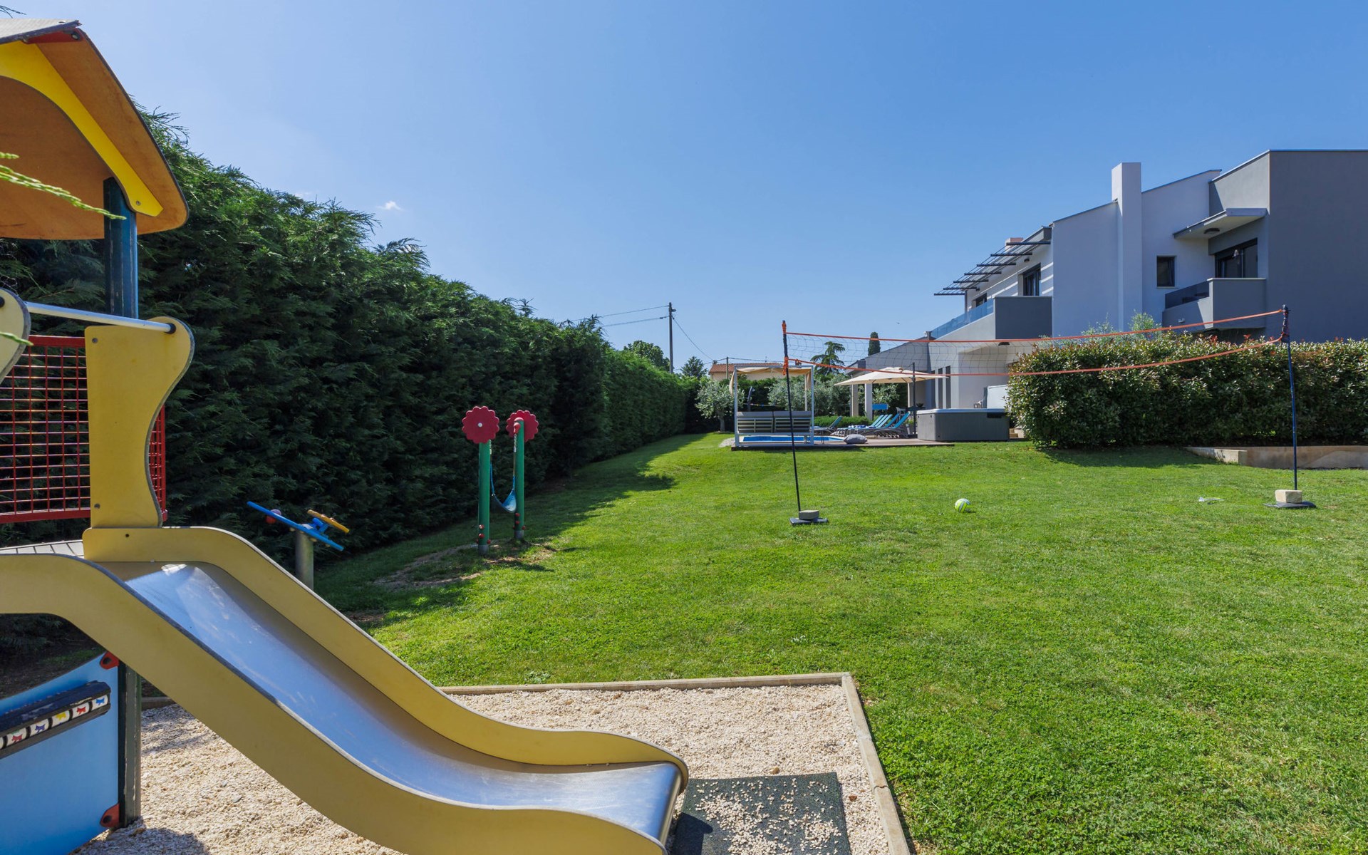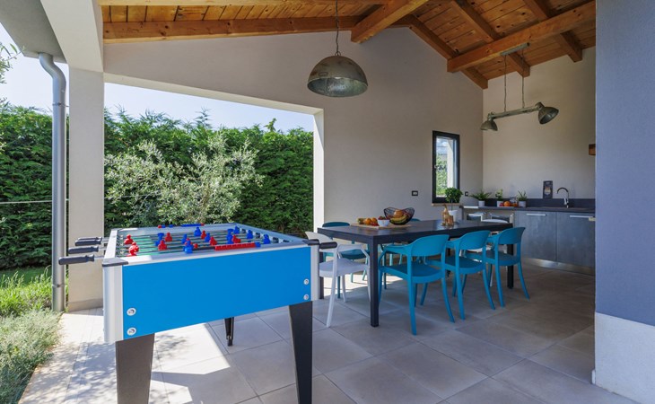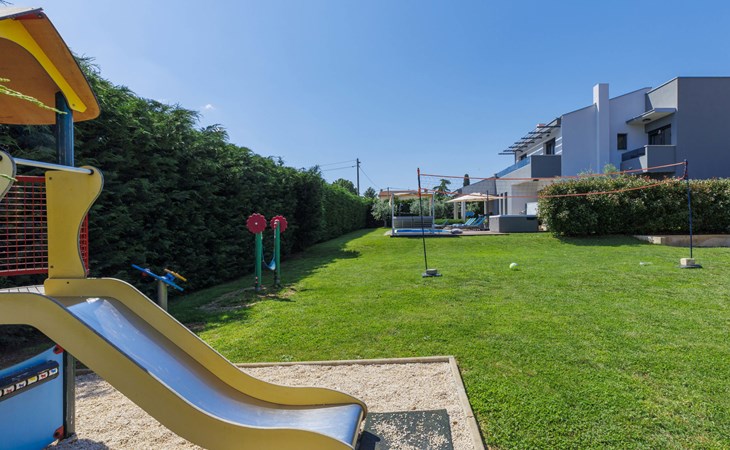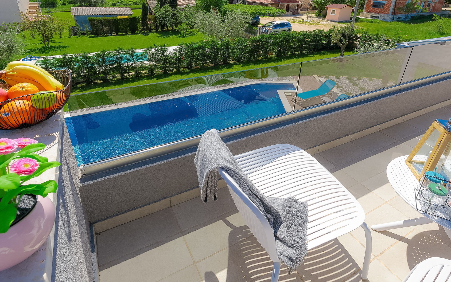 Tar 7 km von Poreč: Schöne Villa "Grande", auf 2 Stockwerken, Baujahr 2019. Im Weiler Rogovići, 2 km vom Zentrum von Tar, ruhige, sonnige Lage, 3.5 km vom Meer, 3.5 km vom Strand. Zur Alleinbenutzung: Grundstück 1'000 m2 (eingezäunt), Garten, Schwimmbad eckig (9 x 3 m, 150 cm tief, saisonale Verfügbarkeit: 01.Mai. - 15.Okt.) mit Innentreppe. Aussendusche, Sprudelbad, Badminton, Terrasse (18 m2), Gartenmöbel, Grill (Rutschbahn, Schaukel). Im Hause: Internetzugang, Billard, Tischfussball, Klimaanlage, Waschmaschine. Parkplatz (für 2 Autos) beim Haus auf dem Grundstück. Einkaufsgeschäft 2 km, Restaurant 2 km, Bushaltestelle 3.2 km, Kieselstrand 3.5 km, Felsstrand 3.5 km. Tennis 3.5 km, Reitstall 3.5 km, Wanderwege ab Haus 200 m, Radweg 250 m, Kinderspielplatz 15 m. Nahe gelegene Sehenswürdigkeiten: Aquapark 25 km. Der Besitzer akzeptiert keine Jugendgruppen. Das veranstalten von Feiern ist nicht gestattet. Verfügung: Darts (inbegriffen).
