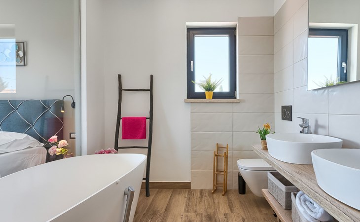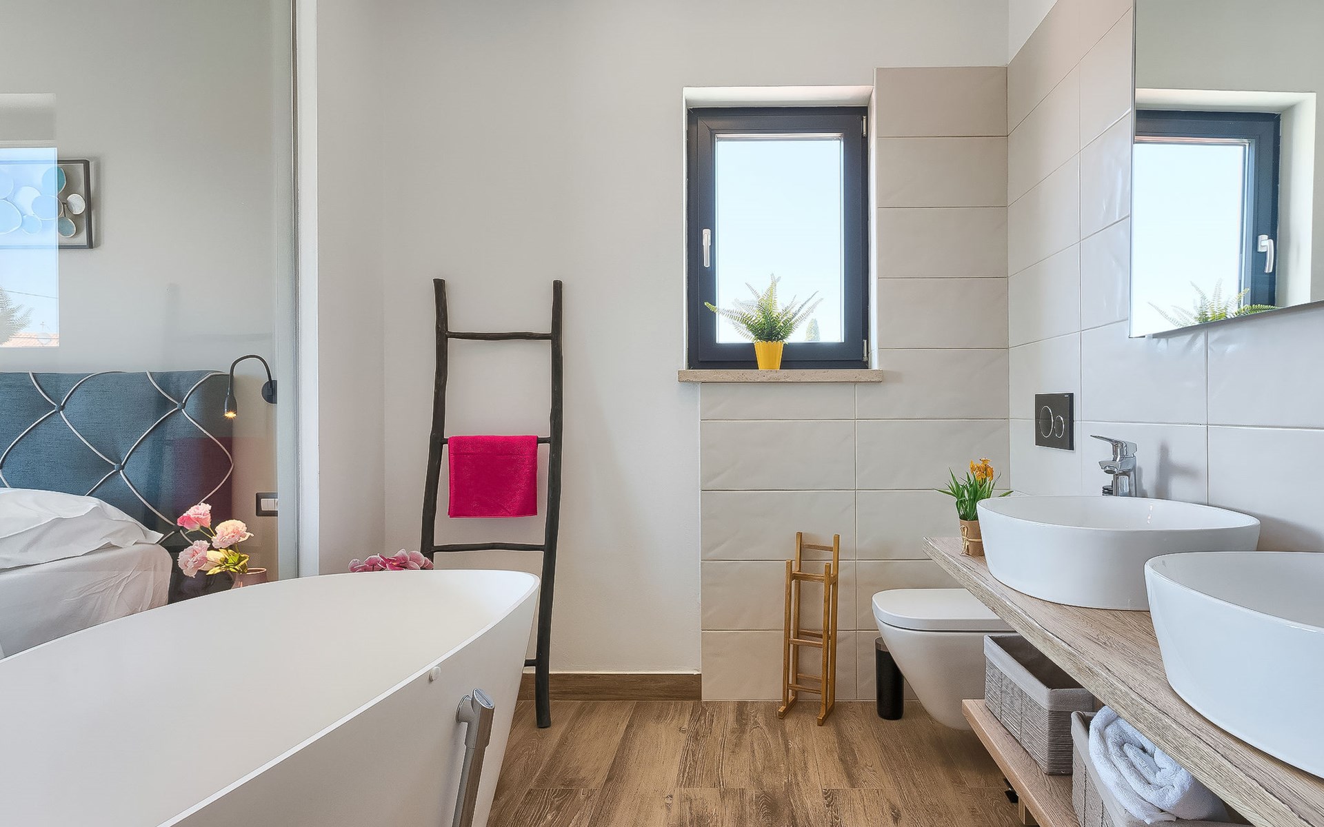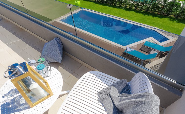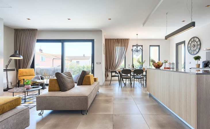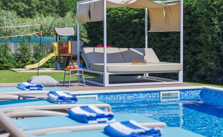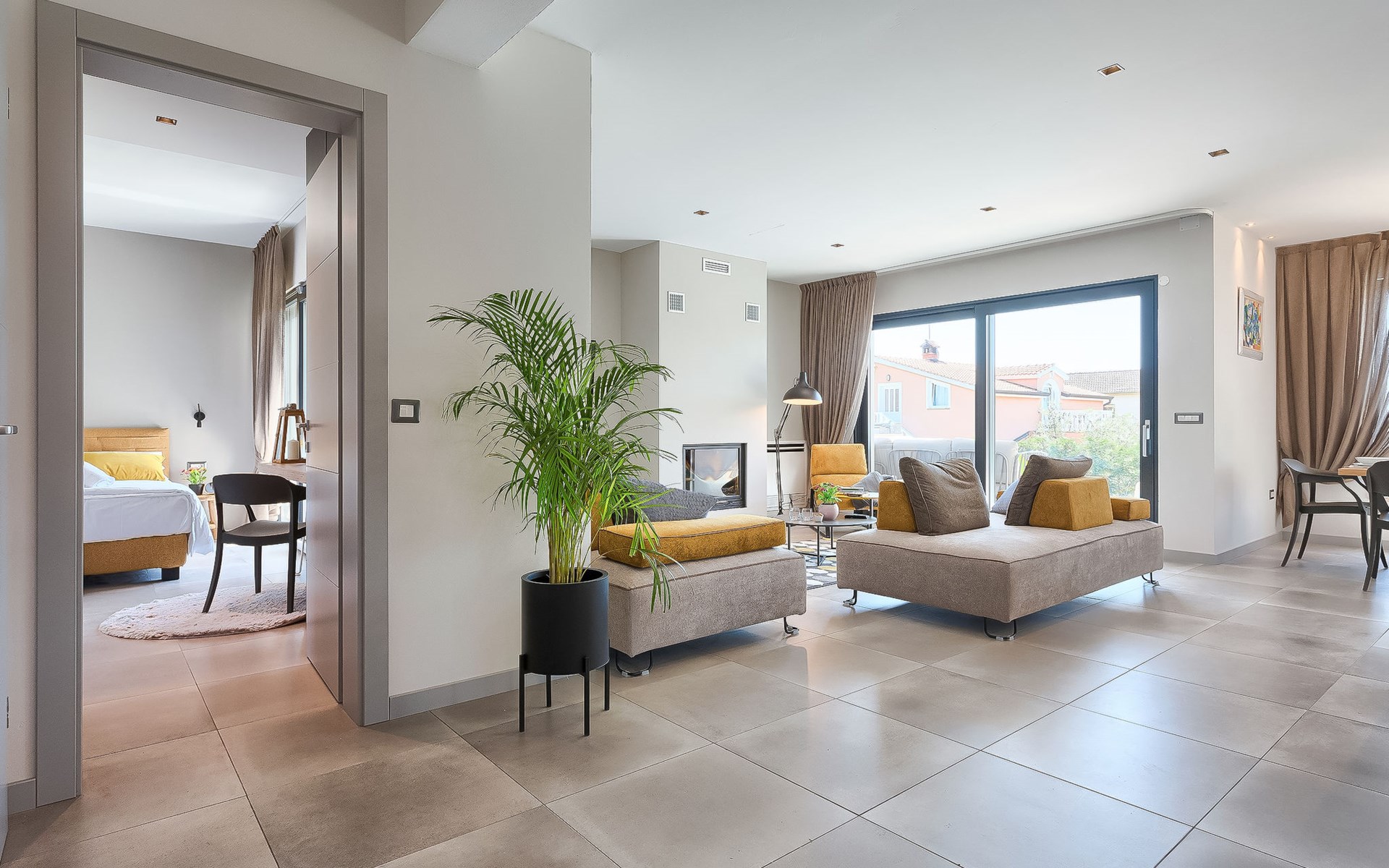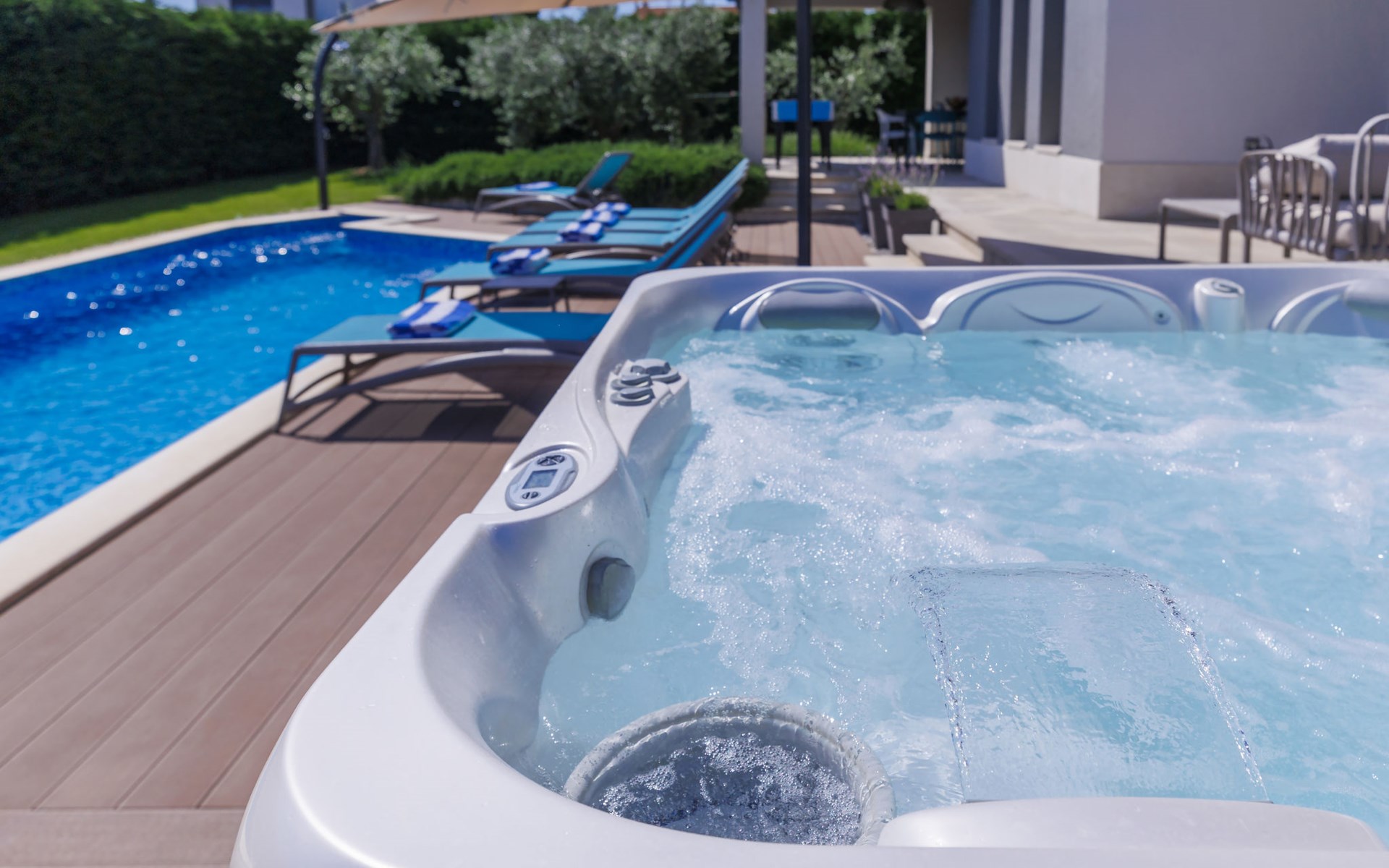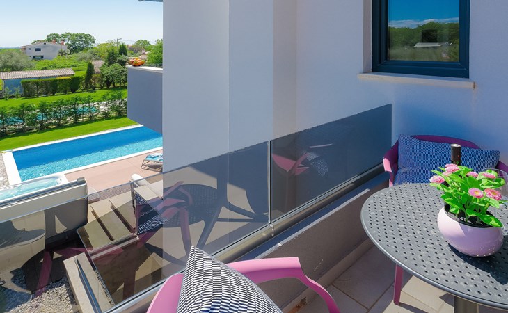 Tar 7 km von Poreč: Schöne Villa "Grande", auf 2 Stockwerken, Baujahr 2019. Im Weiler Rogovići, 2 km vom Zentrum von Tar, ruhige, sonnige Lage, 3.5 km vom Meer, 3.5 km vom Strand. Zur Alleinbenutzung: Grundstück 1'000 m2 (eingezäunt), Garten, Schwimmbad eckig (9 x 3 m, 150 cm tief, saisonale Verfügbarkeit: 01.Mai. - 15.Okt.) mit Innentreppe. Aussendusche, Sprudelbad, Badminton, Terrasse (18 m2), Gartenmöbel, Grill (Rutschbahn, Schaukel). Im Hause: Internetzugang, Billard, Tischfussball, Klimaanlage, Waschmaschine. Parkplatz (für 2 Autos) beim Haus auf dem Grundstück. Einkaufsgeschäft 2 km, Restaurant 2 km, Bushaltestelle 3.2 km, Kieselstrand 3.5 km, Felsstrand 3.5 km. Tennis 3.5 km, Reitstall 3.5 km, Wanderwege ab Haus 200 m, Radweg 250 m, Kinderspielplatz 15 m. Nahe gelegene Sehenswürdigkeiten: Aquapark 25 km. Der Besitzer akzeptiert keine Jugendgruppen. Das veranstalten von Feiern ist nicht gestattet. Verfügung: Darts (inbegriffen).