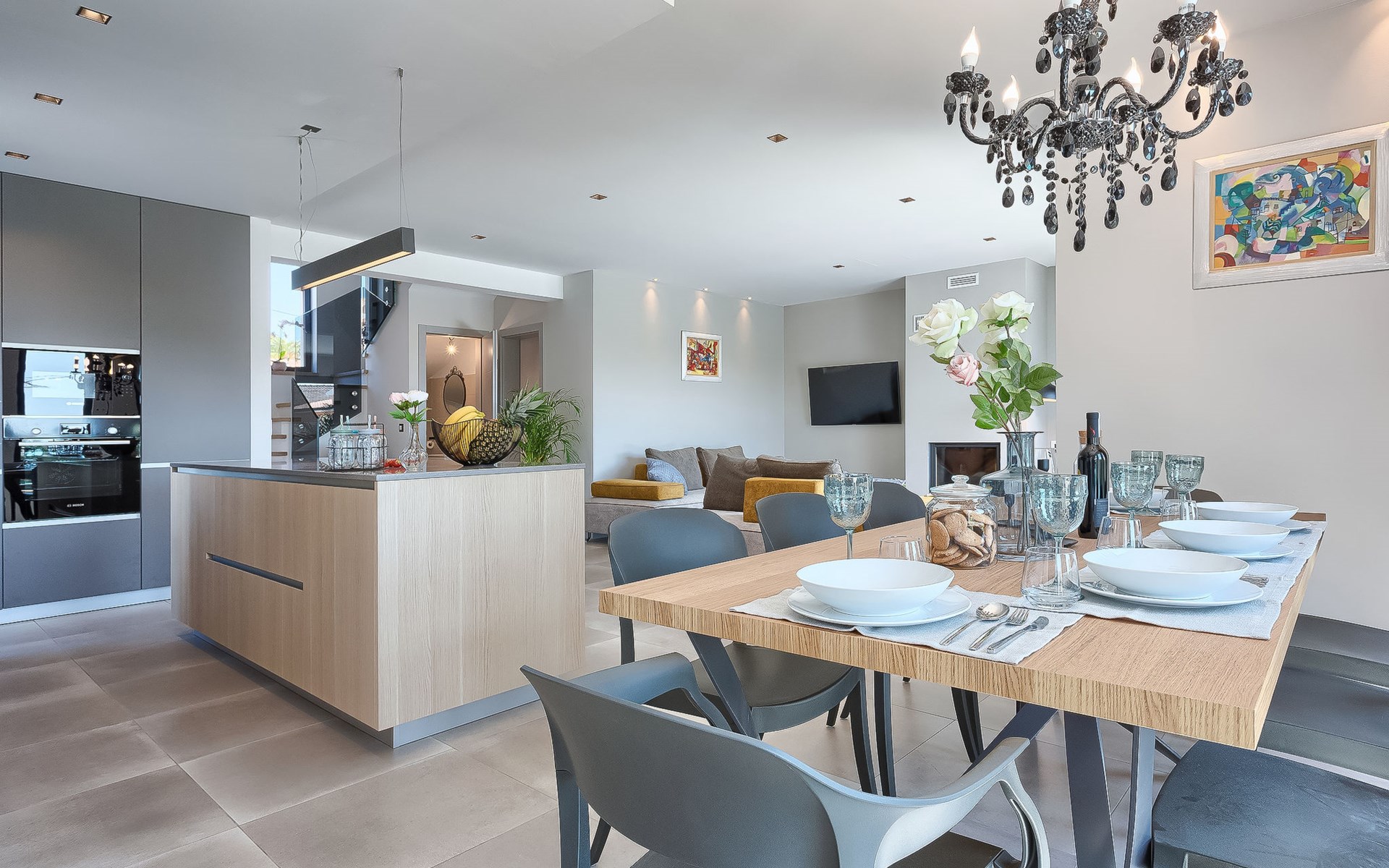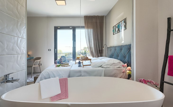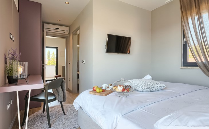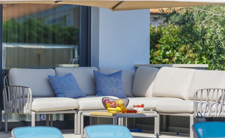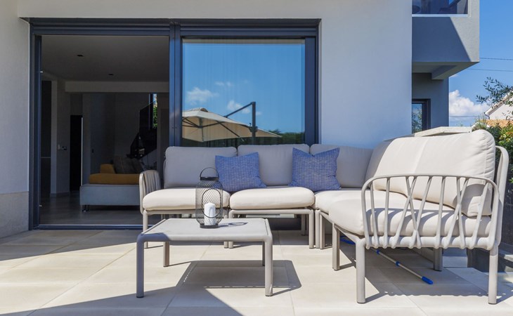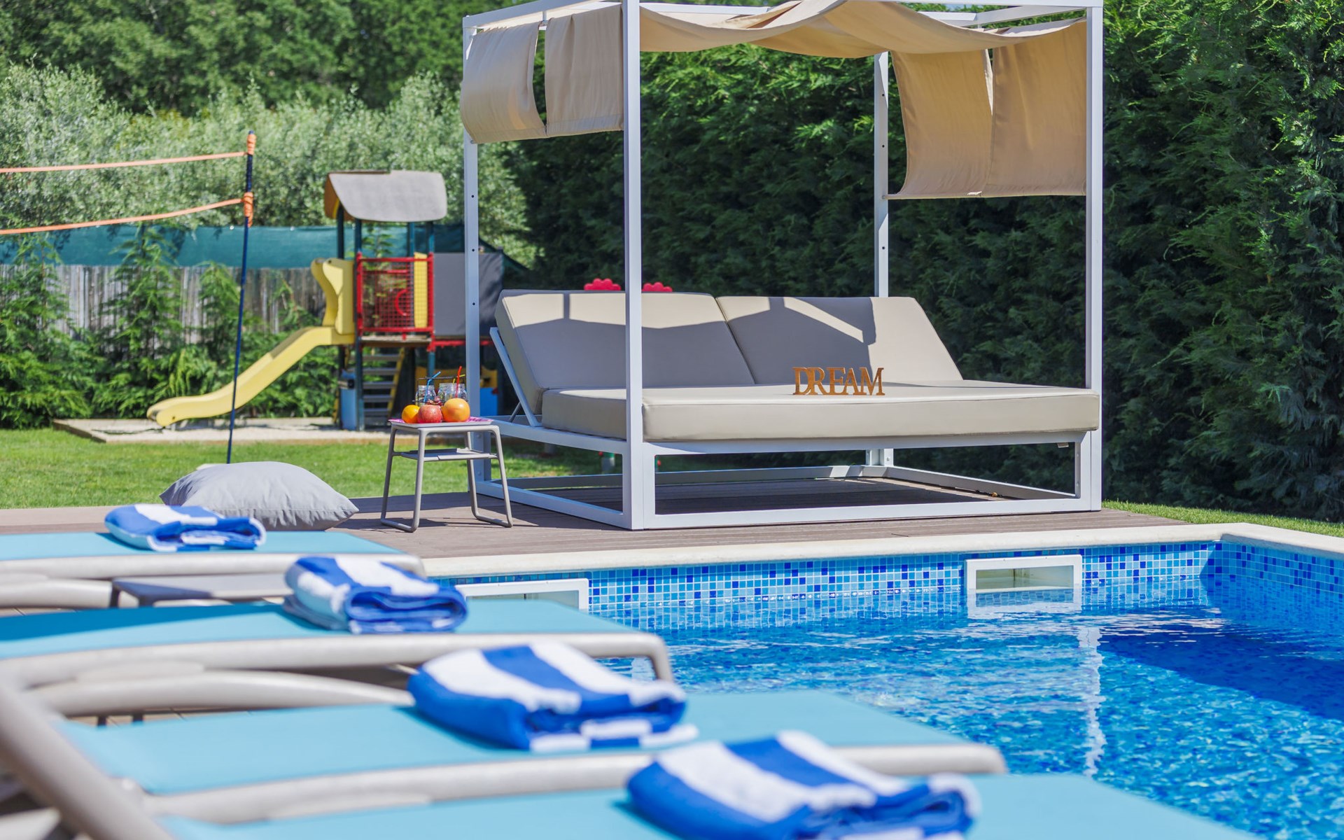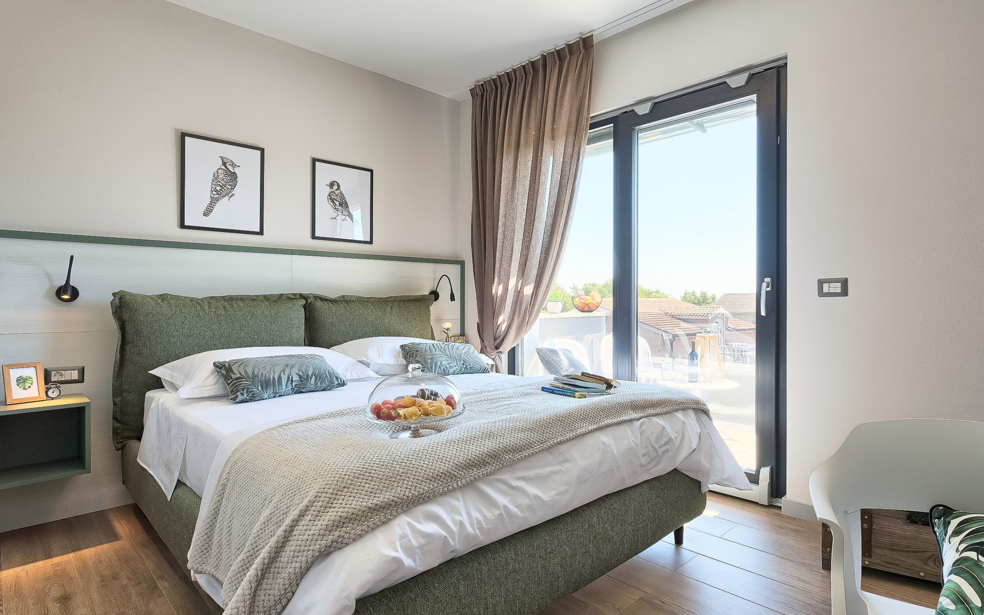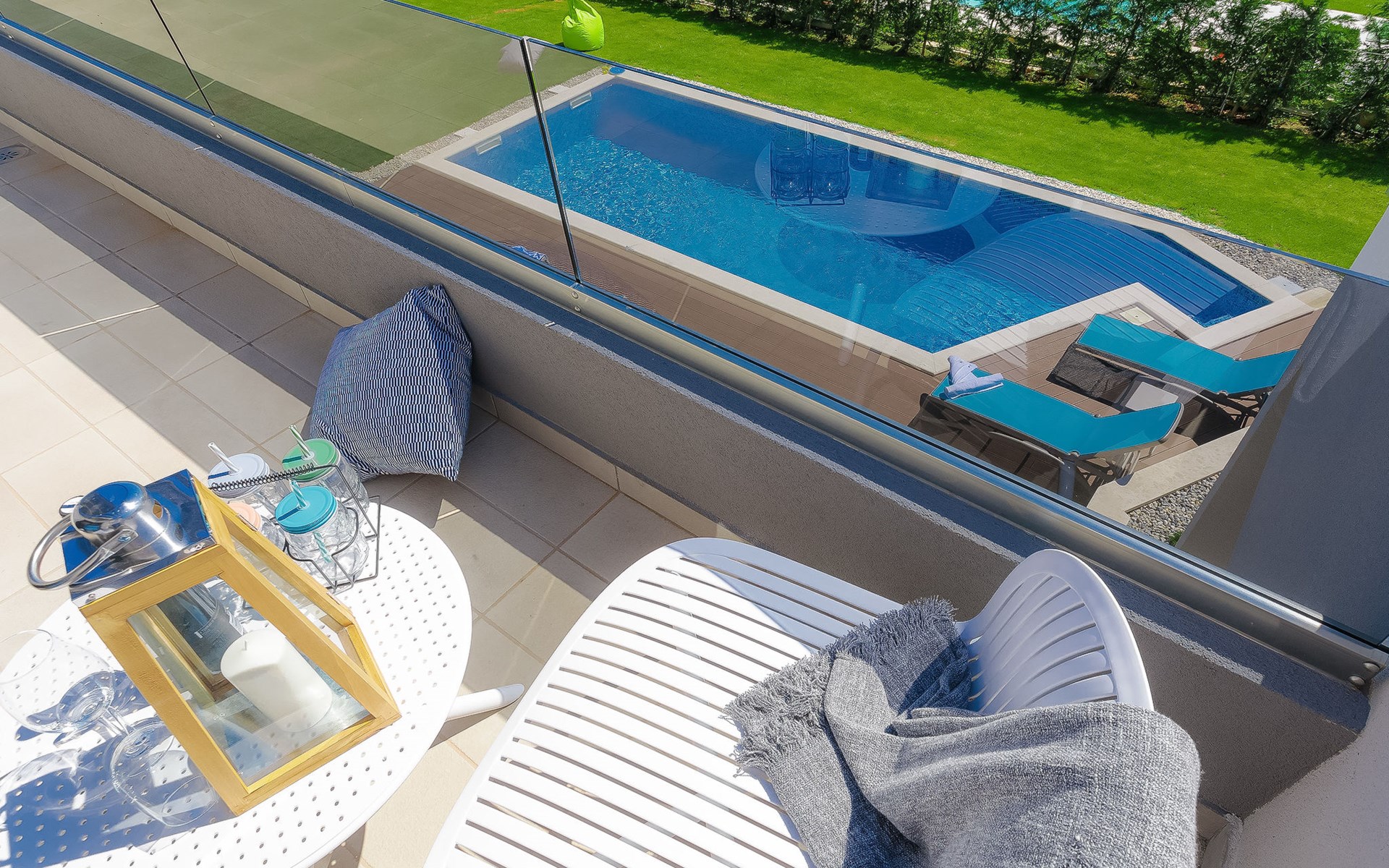 Tar 7 km von Poreč: Schöne Villa "Grande", auf 2 Stockwerken, Baujahr 2019. Im Weiler Rogovići, 2 km vom Zentrum von Tar, ruhige, sonnige Lage, 3.5 km vom Meer, 3.5 km vom Strand. Zur Alleinbenutzung: Grundstück 1'000 m2 (eingezäunt), Garten, Schwimmbad eckig (9 x 3 m, 150 cm tief, saisonale Verfügbarkeit: 01.Mai. - 15.Okt.) mit Innentreppe. Aussendusche, Sprudelbad, Badminton, Terrasse (18 m2), Gartenmöbel, Grill (Rutschbahn, Schaukel). Im Hause: Internetzugang, Billard, Tischfussball, Klimaanlage, Waschmaschine. Parkplatz (für 2 Autos) beim Haus auf dem Grundstück. Einkaufsgeschäft 2 km, Restaurant 2 km, Bushaltestelle 3.2 km, Kieselstrand 3.5 km, Felsstrand 3.5 km. Tennis 3.5 km, Reitstall 3.5 km, Wanderwege ab Haus 200 m, Radweg 250 m, Kinderspielplatz 15 m. Nahe gelegene Sehenswürdigkeiten: Aquapark 25 km. Der Besitzer akzeptiert keine Jugendgruppen. Das veranstalten von Feiern ist nicht gestattet. Verfügung: Darts (inbegriffen).