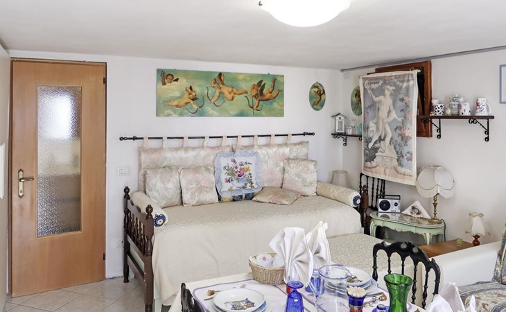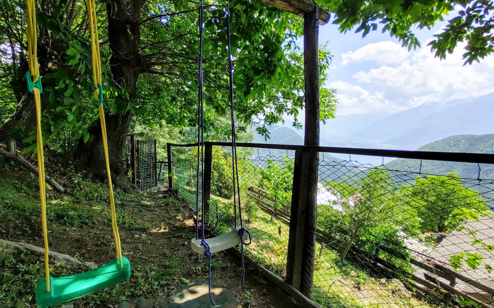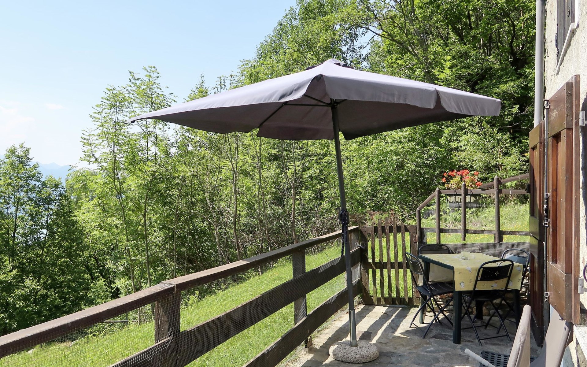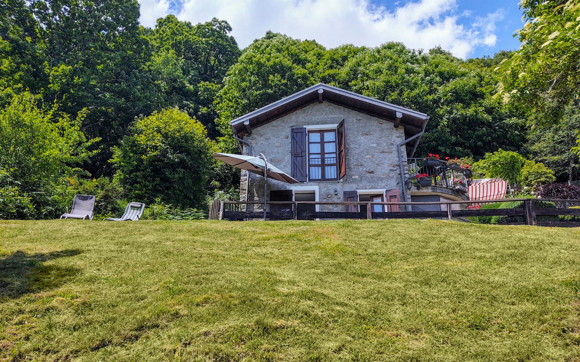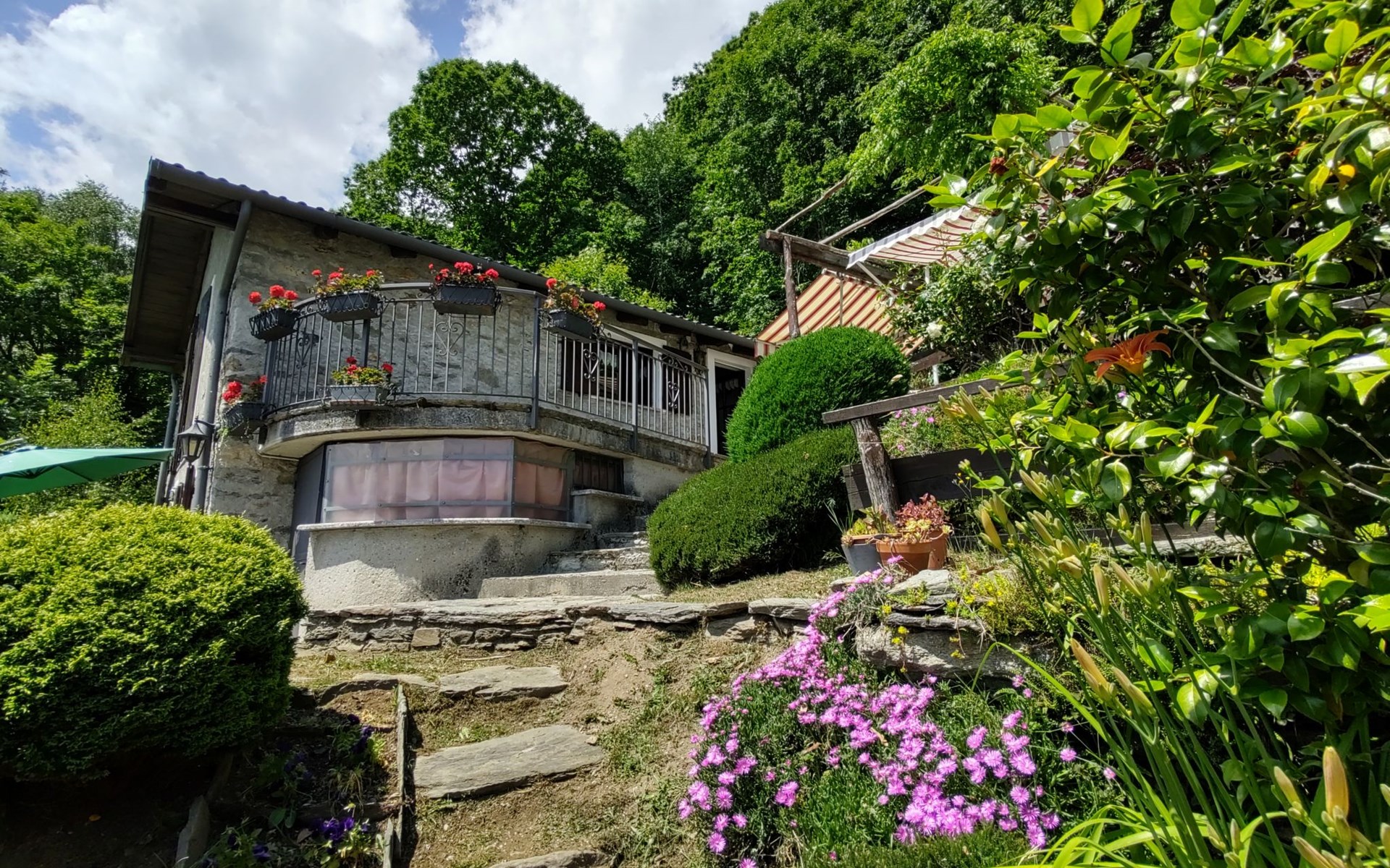 Rustikales Zweifamilienhaus "Baita dei Nonni", 950 m.ü.M., umgeben von Bäumen. Unterhalb von Bodone, in einem Weiler mit 8 Häusern, 8 km vom Zentrum von Gravedona, 60 km vom Zentrum von Como, 61 km vom Zentrum von Lecco, erhöhte Lage am Hang, 8 km vom See. Zur Mitbenutzung: naturbelassenes Grundstück (eingezäunt), terrassierter Garten mit Pflanzen, Wiese. 3 km lange holprige, steile, schmale Zufahrt (250 m Naturweg, Bergstrasse). Treppenweg (20 Stufen) bis zum Haus. Parkplatz beim Haus in 20 m. Einkaufsgeschäft 3 km, Supermarkt 8 km, Restaurant 3 km, Bushaltestelle 3 km, Bahnstation "Como" 60 km, Kieselstrand "Lido di Gravedona" 8 km, Freibad 8 km.