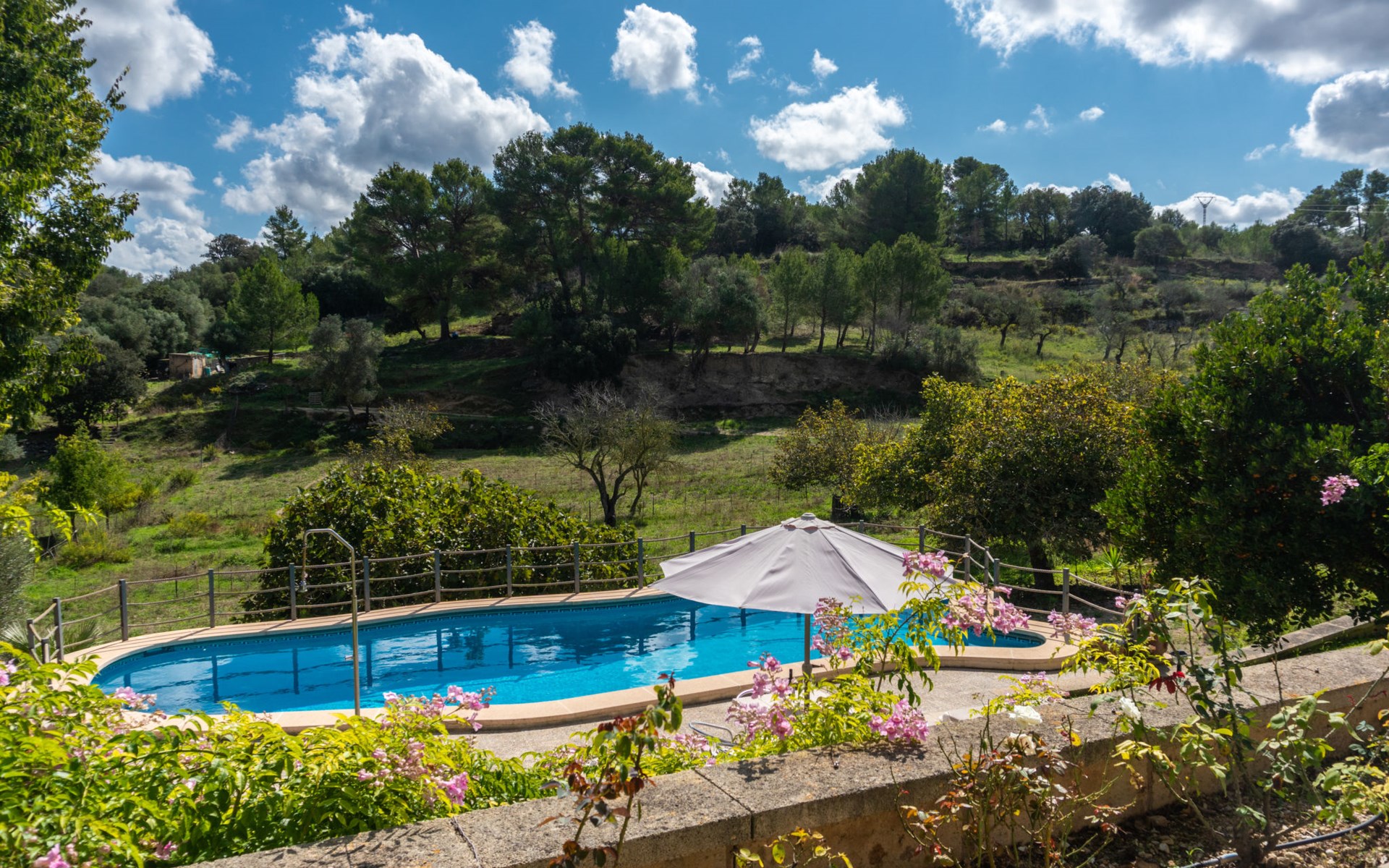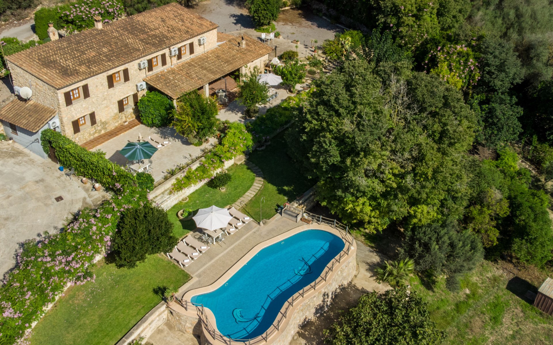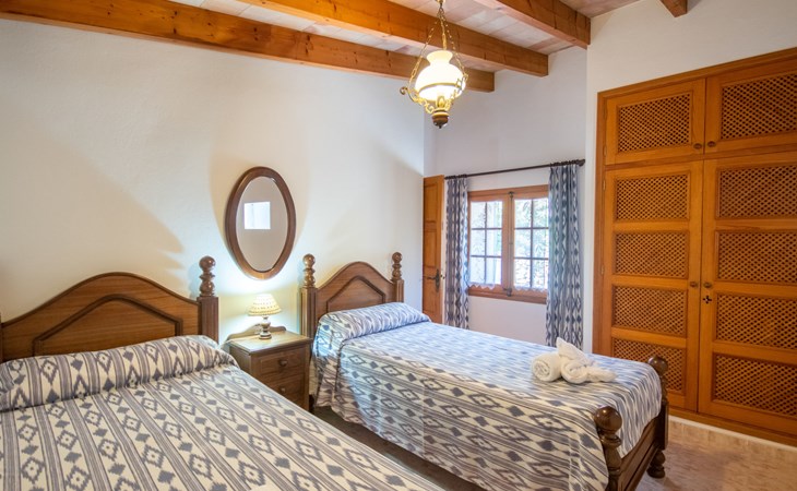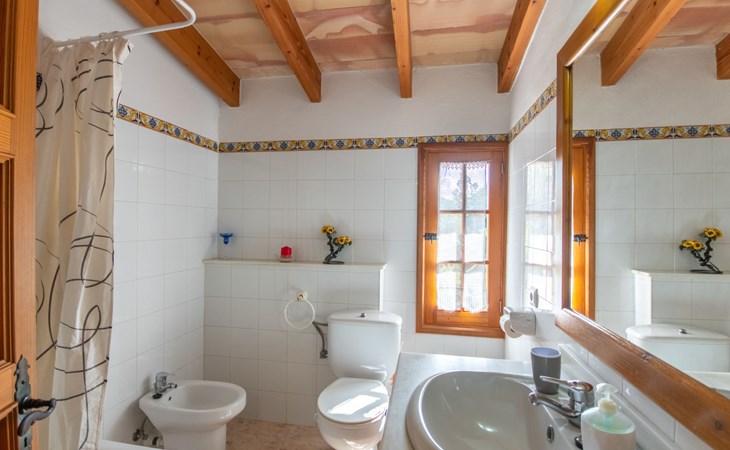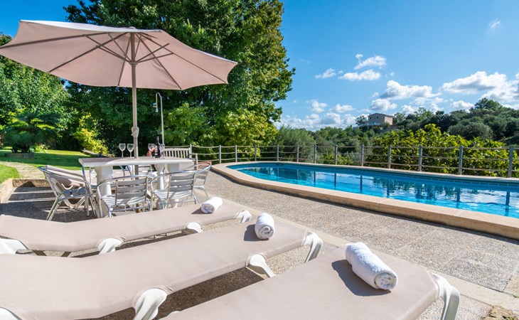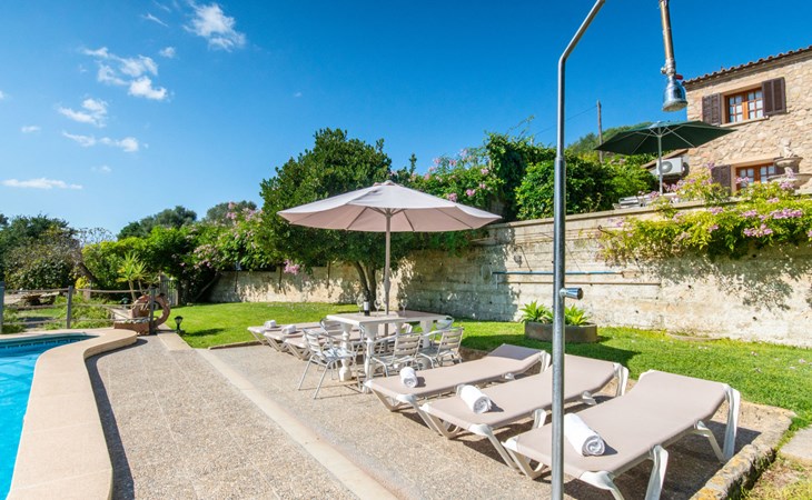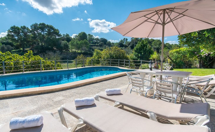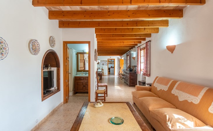 Schöne Finca "Son Femenia", auf 2 Stockwerken, umgeben von Wiesen und Feldern. 1.5 km vom Zentrum von Santa Margalida, 8 km vom Zentrum von Ca'n Picafort, 19 km vom Zentrum von Alcudia, alleinstehende Lage auf einem Hügel, 9 km vom Meer. Zur Alleinbenutzung: naturbelassenes Grundstück 15'000 m2 (eingezäunt), Garten 1'500 m2 mit Rasen und Bäumen, Wiese, Schwimmbad nierenförmig (13 x 5 m, saisonale Verfügbarkeit: 01.Jan. - 31.Dez.). Aussendusche. Im Hause: Alarmanlage. Parkplatz (für 2 Autos, überdacht) auf dem Grundstück. Einkaufsgeschäft 1.5 km, Bushaltestelle 800 m, Sandstrand "Ca'n Picafort" 9 km. Bitte beachten: Fahrzeug empfohlen. Der Besitzer wohnt auf dem gleichen Grundstück. Eigentümer hat einen Hund. Tiere in der Umgebung.