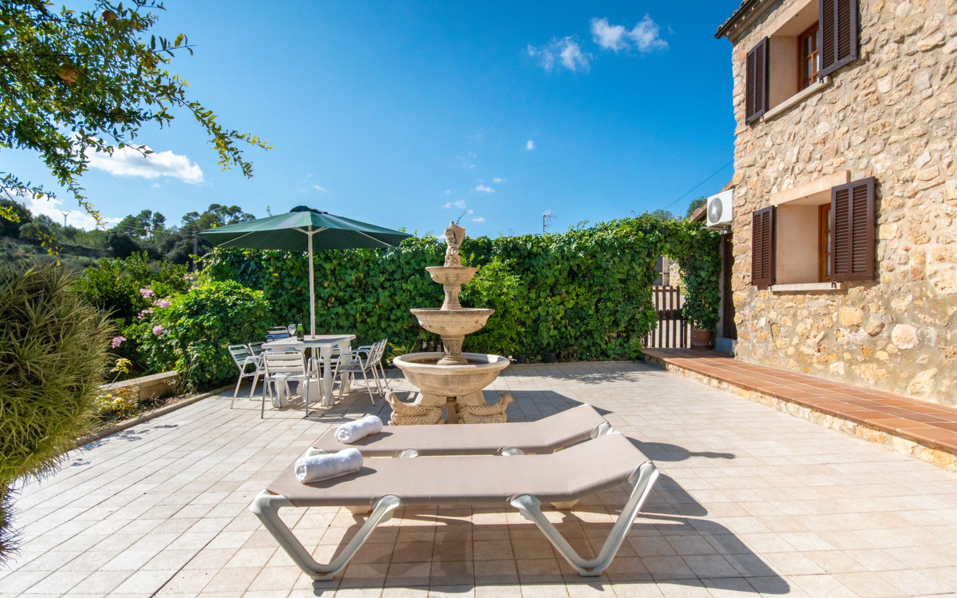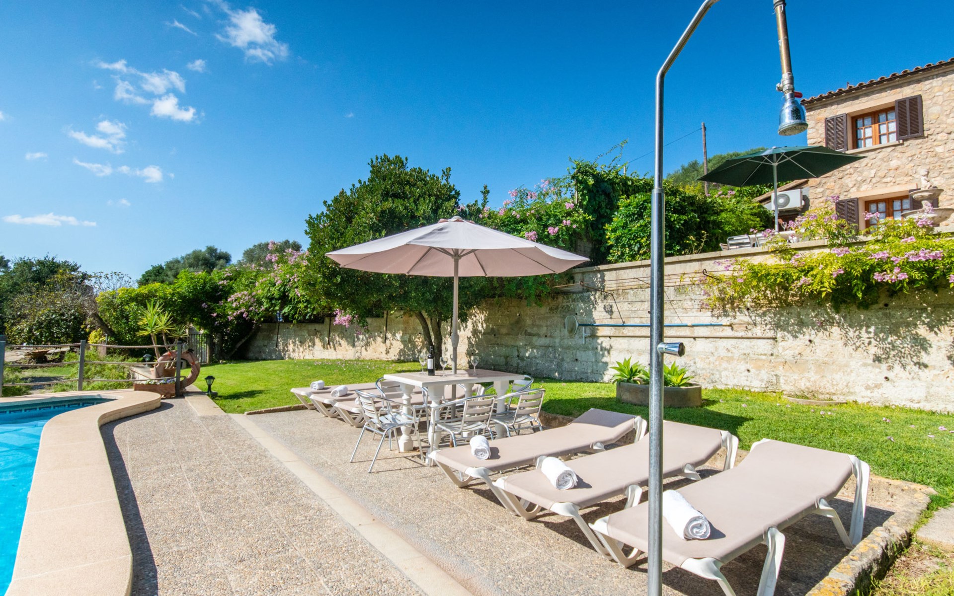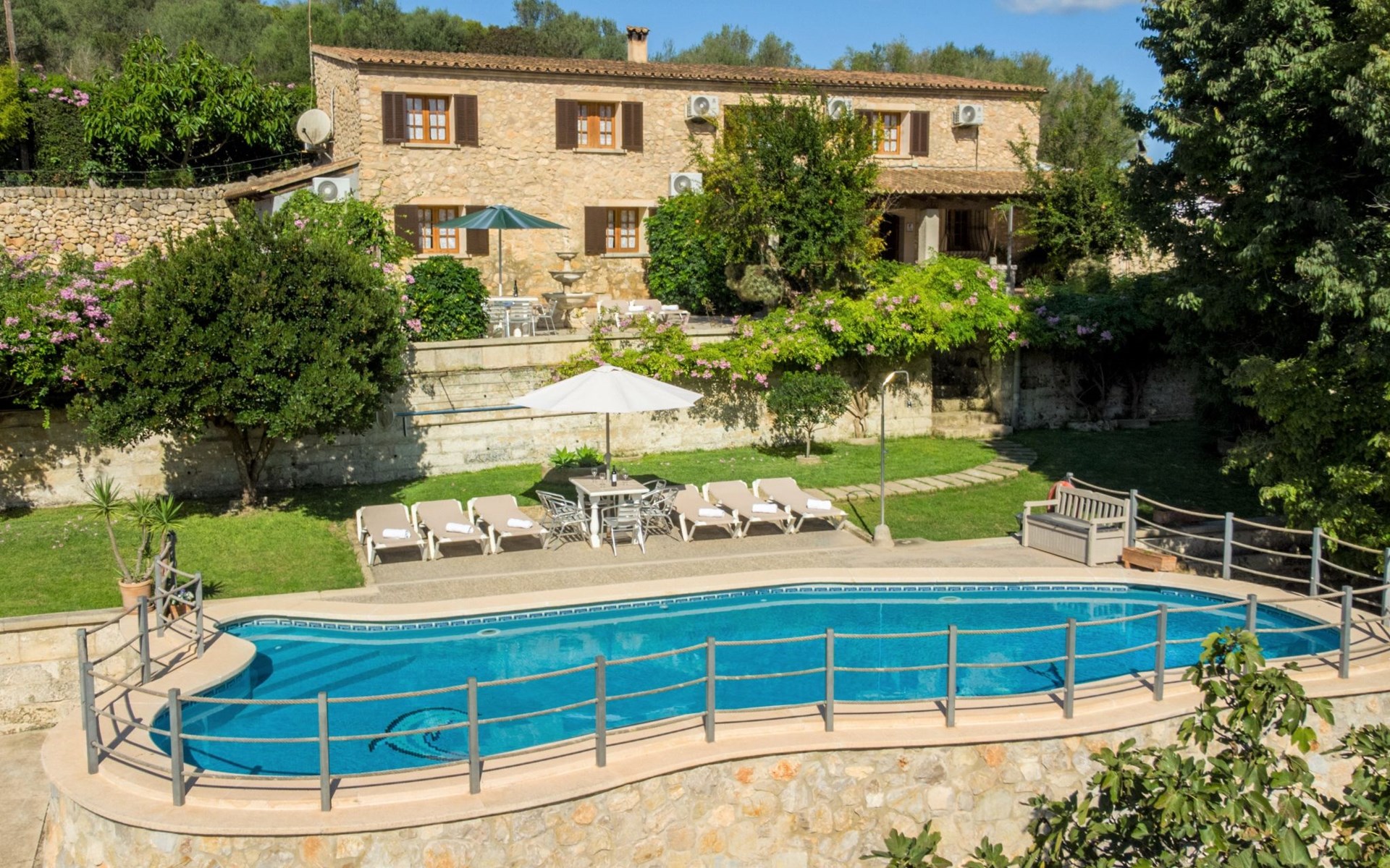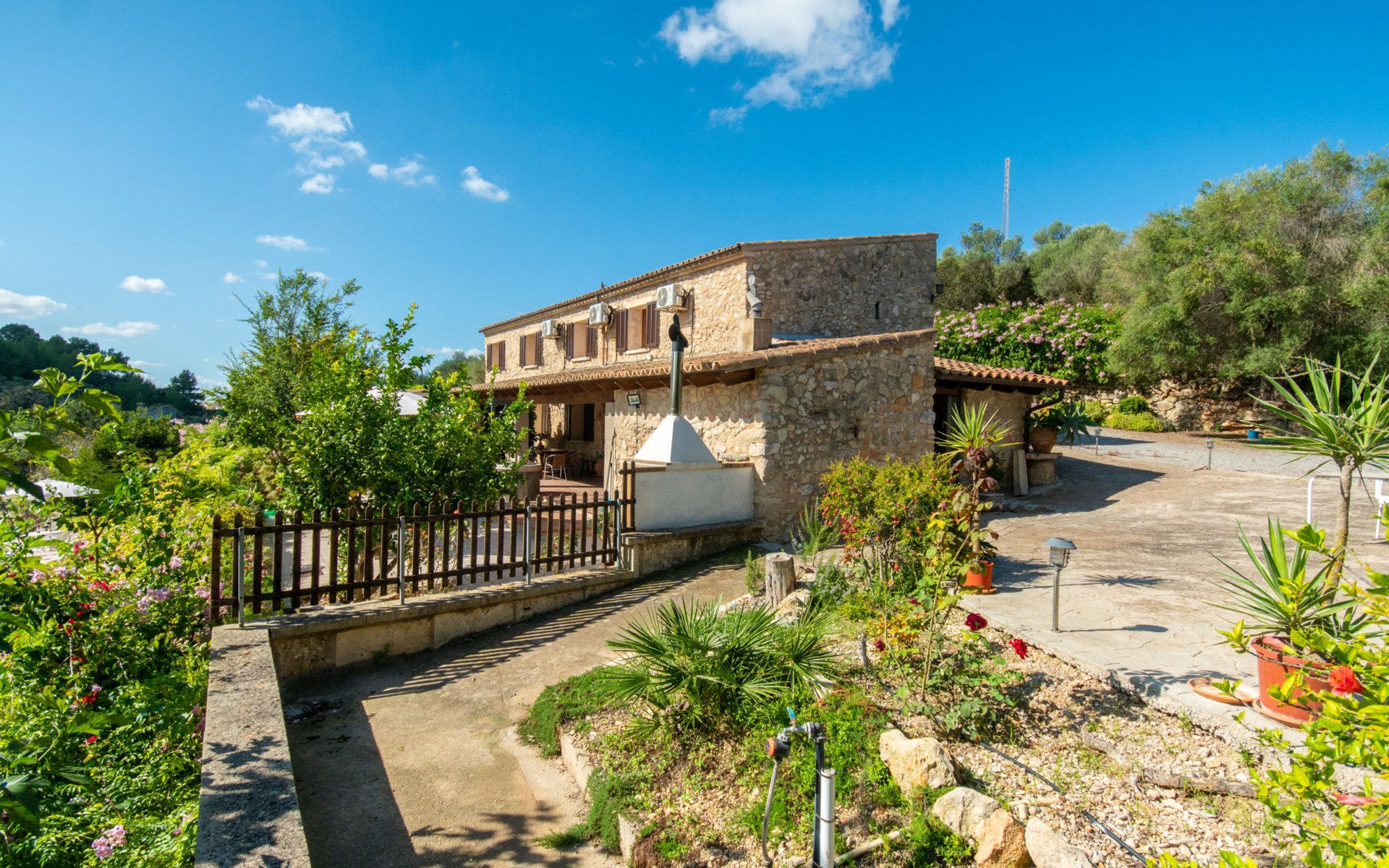 Schöne Finca "Son Femenia", auf 2 Stockwerken, umgeben von Wiesen und Feldern. 1.5 km vom Zentrum von Santa Margalida, 8 km vom Zentrum von Ca'n Picafort, 19 km vom Zentrum von Alcudia, alleinstehende Lage auf einem Hügel, 9 km vom Meer. Zur Alleinbenutzung: naturbelassenes Grundstück 15'000 m2 (eingezäunt), Garten 1'500 m2 mit Rasen und Bäumen, Wiese, Schwimmbad nierenförmig (13 x 5 m, saisonale Verfügbarkeit: 01.Jan. - 31.Dez.). Aussendusche. Im Hause: Alarmanlage. Parkplatz (für 2 Autos, überdacht) auf dem Grundstück. Einkaufsgeschäft 1.5 km, Bushaltestelle 800 m, Sandstrand "Ca'n Picafort" 9 km. Bitte beachten: Fahrzeug empfohlen. Der Besitzer wohnt auf dem gleichen Grundstück. Eigentümer hat einen Hund. Tiere in der Umgebung.