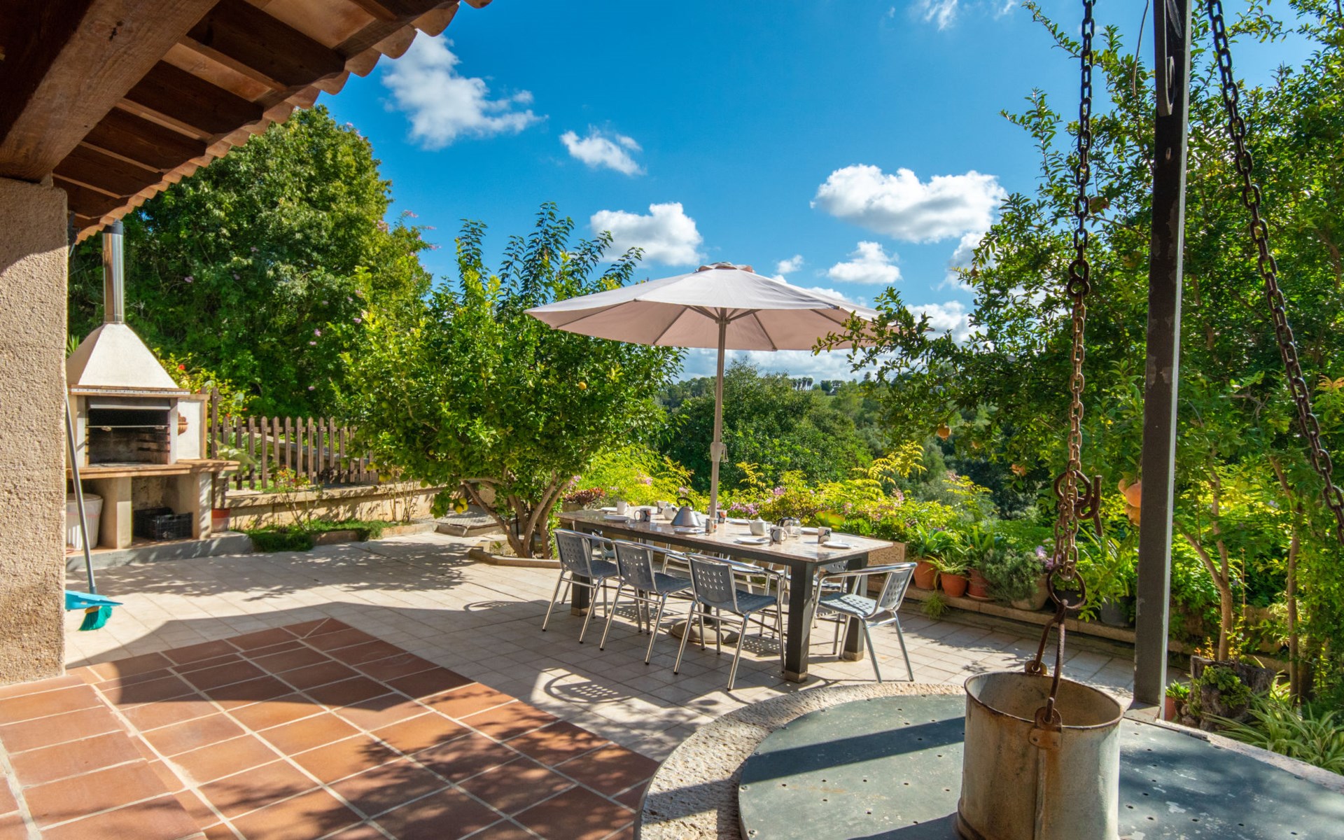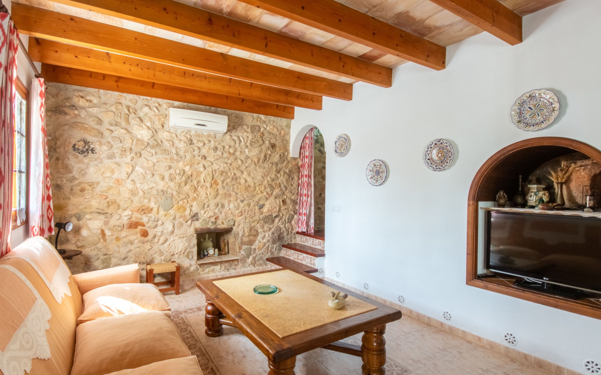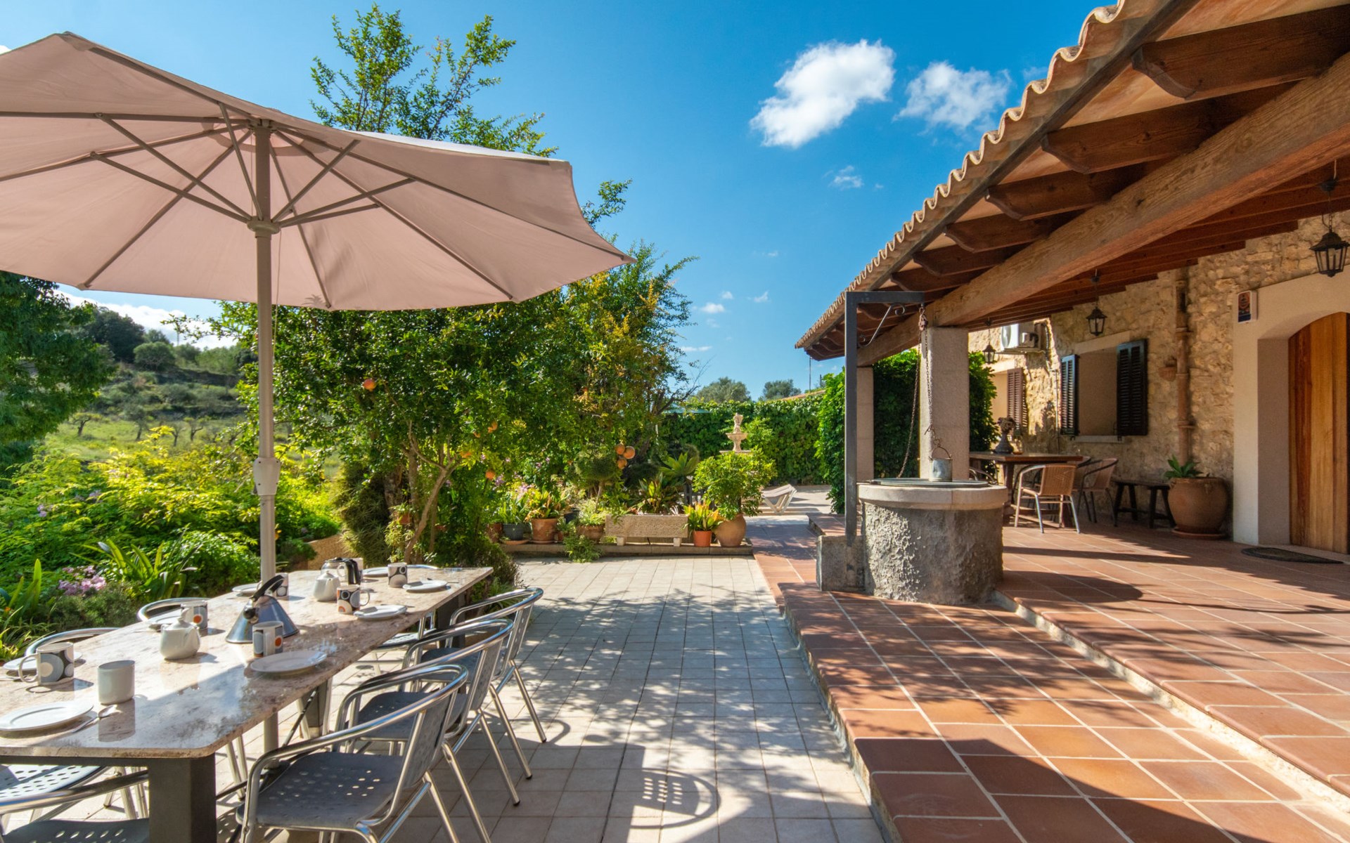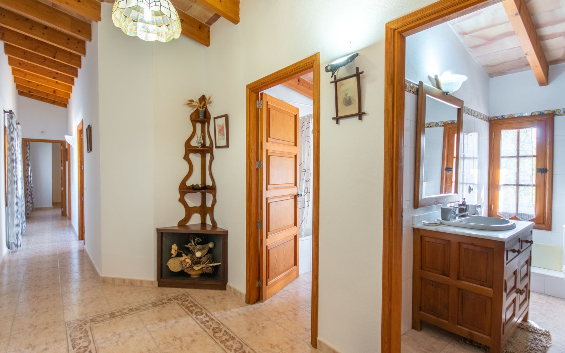 Schöne Finca "Son Femenia", auf 2 Stockwerken, umgeben von Wiesen und Feldern. 1.5 km vom Zentrum von Santa Margalida, 8 km vom Zentrum von Ca'n Picafort, 19 km vom Zentrum von Alcudia, alleinstehende Lage auf einem Hügel, 9 km vom Meer. Zur Alleinbenutzung: naturbelassenes Grundstück 15'000 m2 (eingezäunt), Garten 1'500 m2 mit Rasen und Bäumen, Wiese, Schwimmbad nierenförmig (13 x 5 m, saisonale Verfügbarkeit: 01.Jan. - 31.Dez.). Aussendusche. Im Hause: Alarmanlage. Parkplatz (für 2 Autos, überdacht) auf dem Grundstück. Einkaufsgeschäft 1.5 km, Bushaltestelle 800 m, Sandstrand "Ca'n Picafort" 9 km. Bitte beachten: Fahrzeug empfohlen. Der Besitzer wohnt auf dem gleichen Grundstück. Eigentümer hat einen Hund. Tiere in der Umgebung.