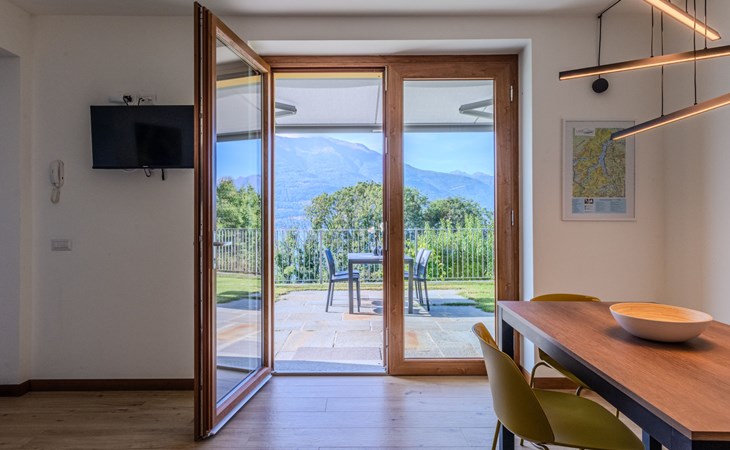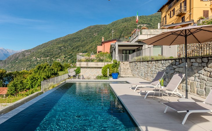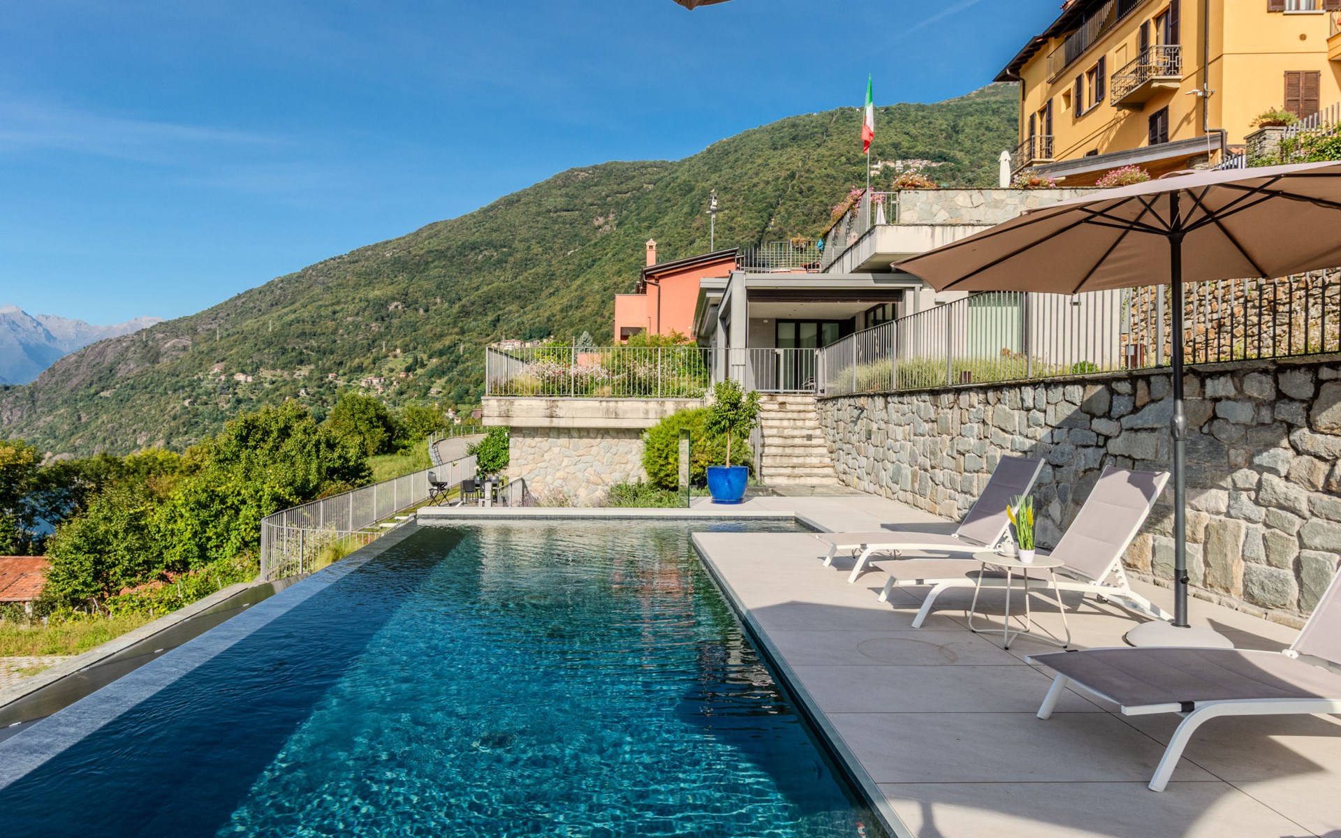 Komfortables Terrassenhaus "La Terrazza sul Lago". 2 Häuser in der Residenz. Im Weiler Lezzeno, 3 km vom Zentrum von Bellano, 7 km vom Zentrum von Varenna, 84 km vom Zentrum von Milano, sonnige, erhöhte Lage am Hang, 3 km vom See. Zur Mitbenutzung: Schwimmbad (8 x 3 m, 140 cm tief, saisonale Verfügbarkeit: 15.Mai. - 30.Sep.). Aussendusche. Zur Alleinbenutzung: Grundstück 80 m2, Wiese. Im Hause: Einstellraum für Fahrräder. Wohnungsreinigung möglich (extra). Treppenweg (6 Stufen) bis zum Haus. Parkplatz. Einkaufsgeschäft 3 km, Supermarkt 3 km, Restaurant 2 km, Bushaltestelle 50 m, Bahnstation "Bellano" 3 km, Fähre "Bellano" 3 km, Kieselstrand "Lido di Bellano" 3 km. Surfschule 3 km, Segelschule 3 km. Nahe gelegene Sehenswürdigkeiten: Santuario Madonna delle Lacrime, Orrido di Bellano, Castello di Vezio Varenna, Cascata dell Acquafraggia Chiavenna. Bekannte Seen in der Umgebung sind gut erreichbar: Lago di Mezzola. Wandergebiete: Sentiero del Viandante, Monte Muggio, Monte Legnone.