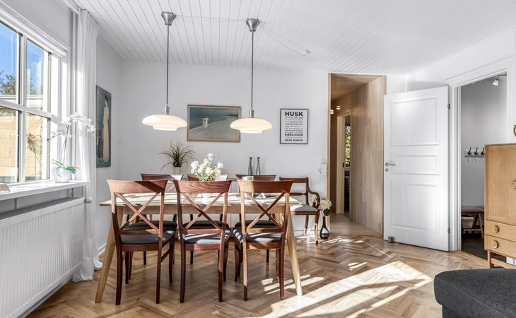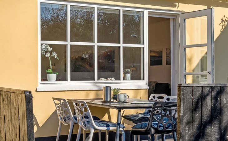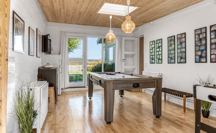 Einfamilienhaus, Baujahr 1959. 700 m vom Meer. Zur Mitbenutzung: Garten. Zur Alleinbenutzung: naturbelassenes Grundstück 500 m2, Garten (eingezäunt). Grill, Kinderspielplatz (Schaukel). Im Hause: Tischfussball, Waschmaschine. Parkplatz beim Haus. Lebensmittelgeschäft 700 m. Der Besitzer akzeptiert keine Jugendgruppen.