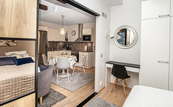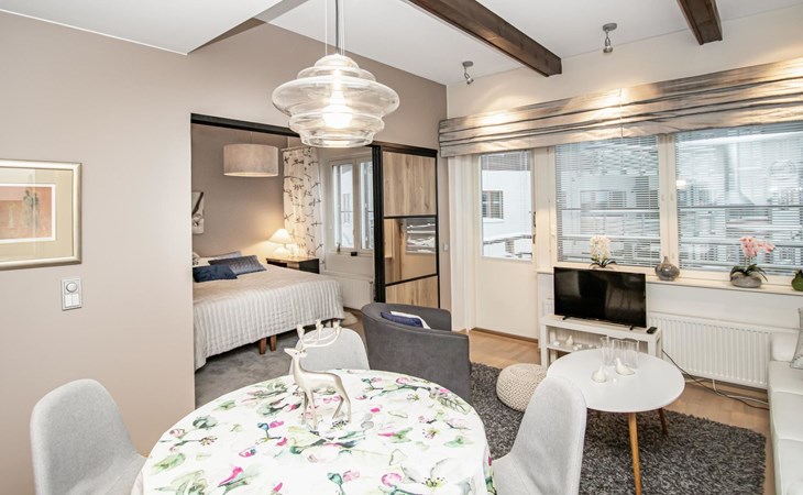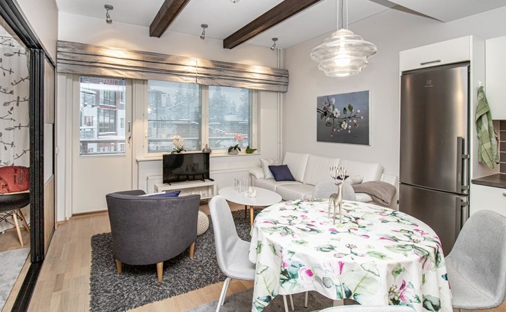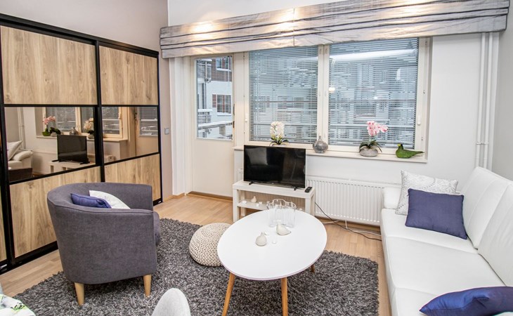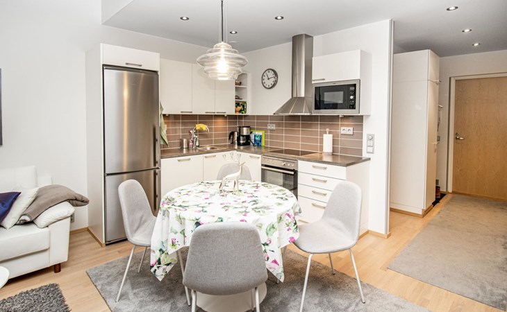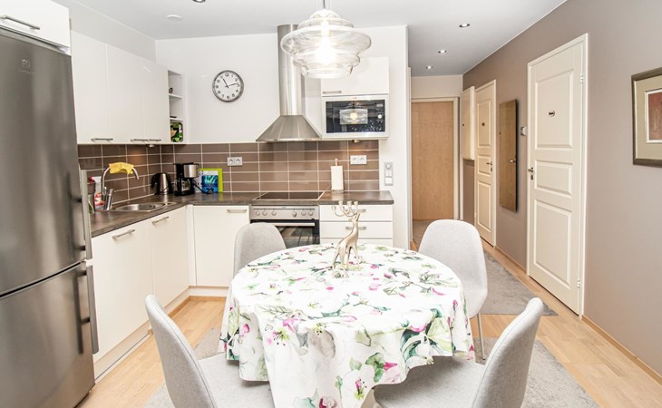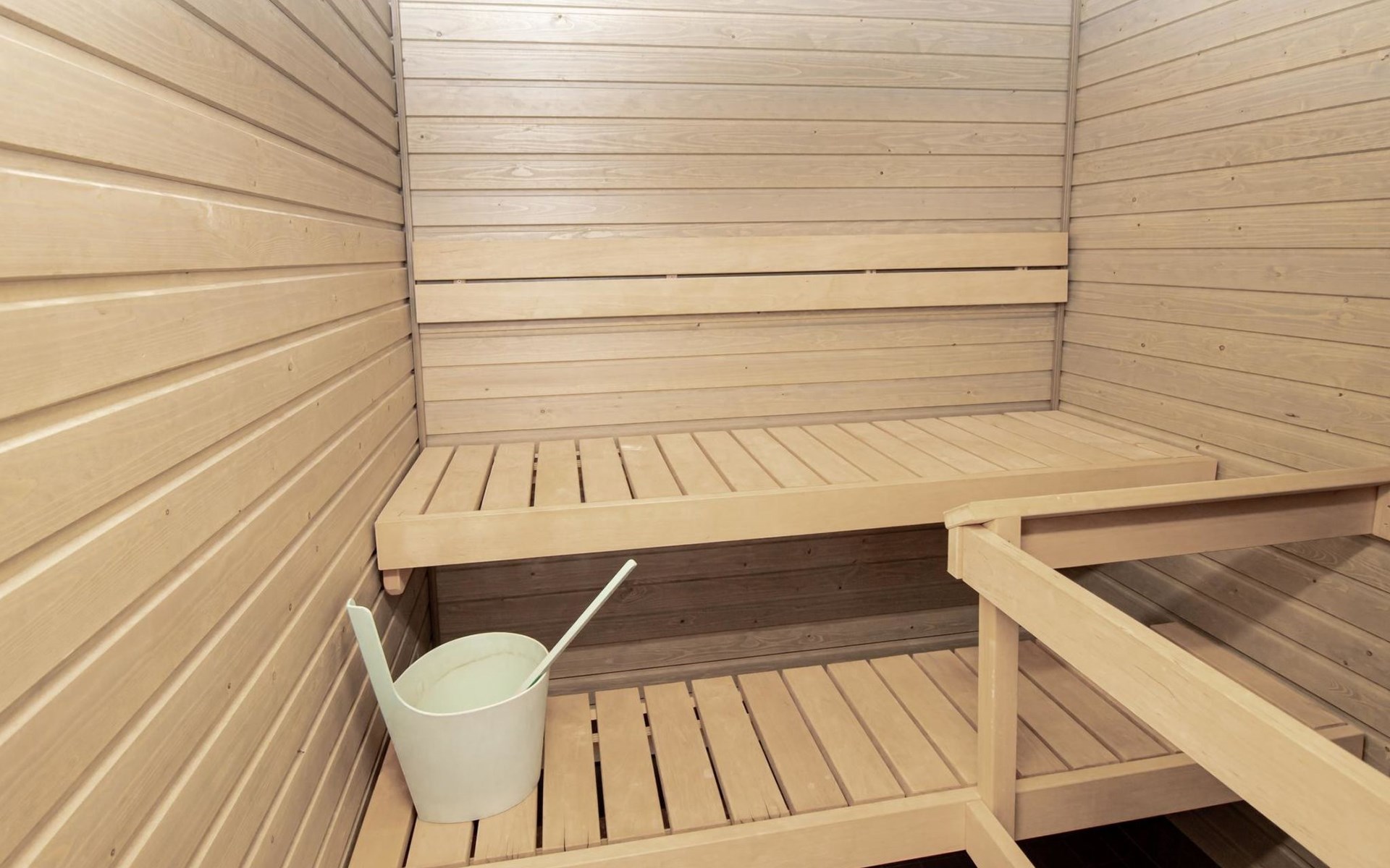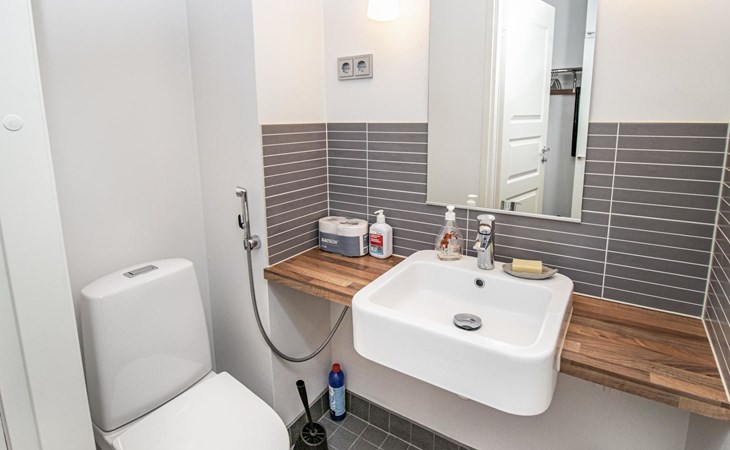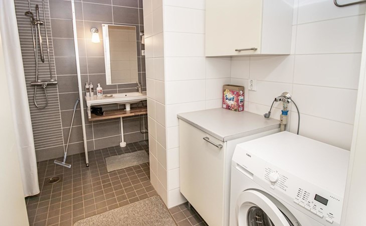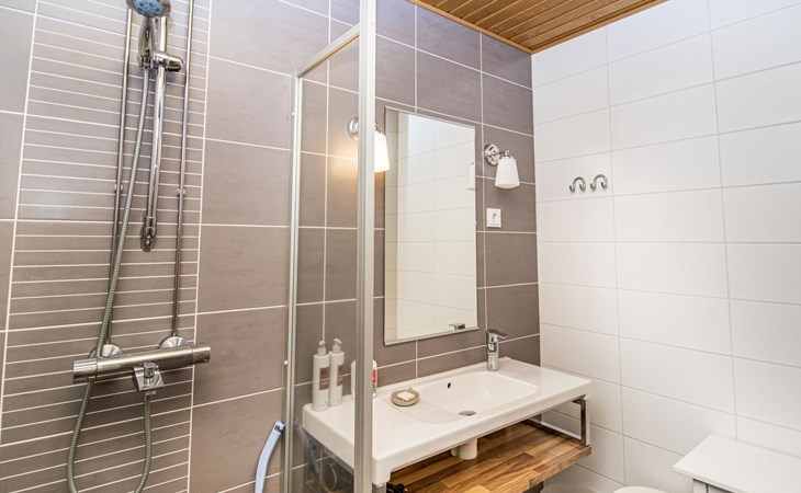 At the end of the day, the sauna provides an excellent space to relax and rejuvenate. In addition to the sauna and bathroom, the apartment includes a separate WC for added convenience.