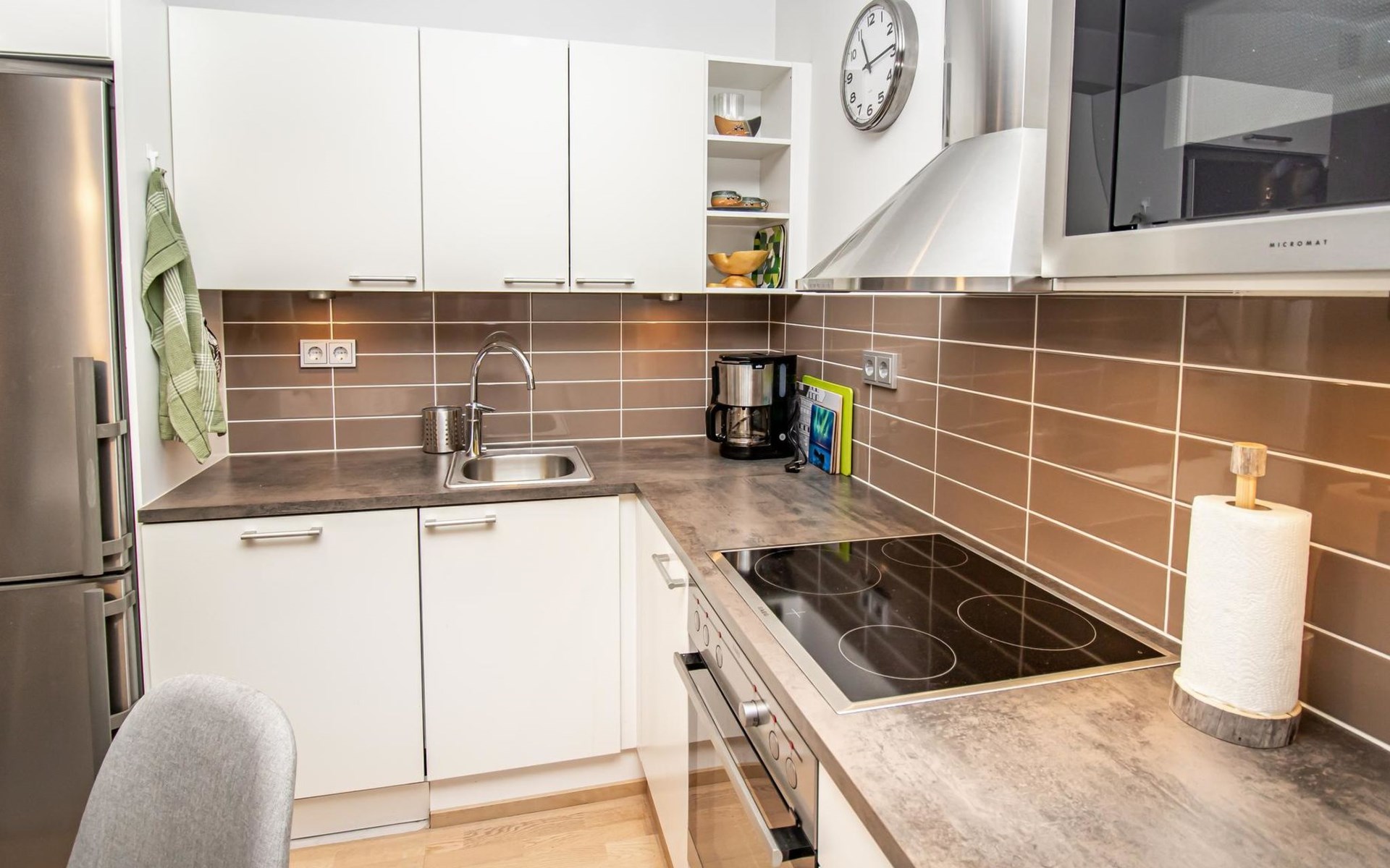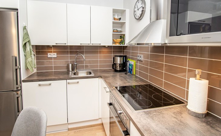 The open-plan kitchen offers convenient facilities for preparing delicious meals, and the living room is ideal for spending quality time together.