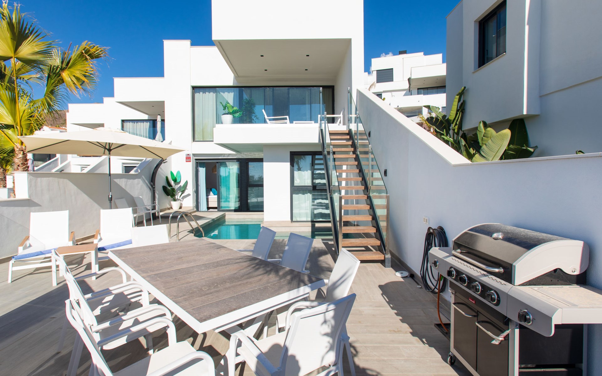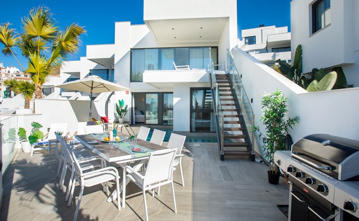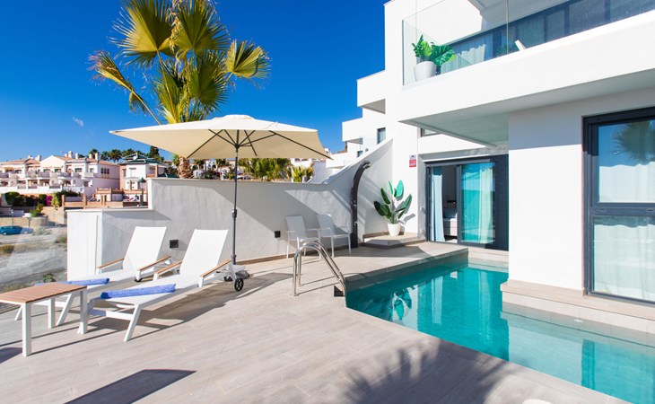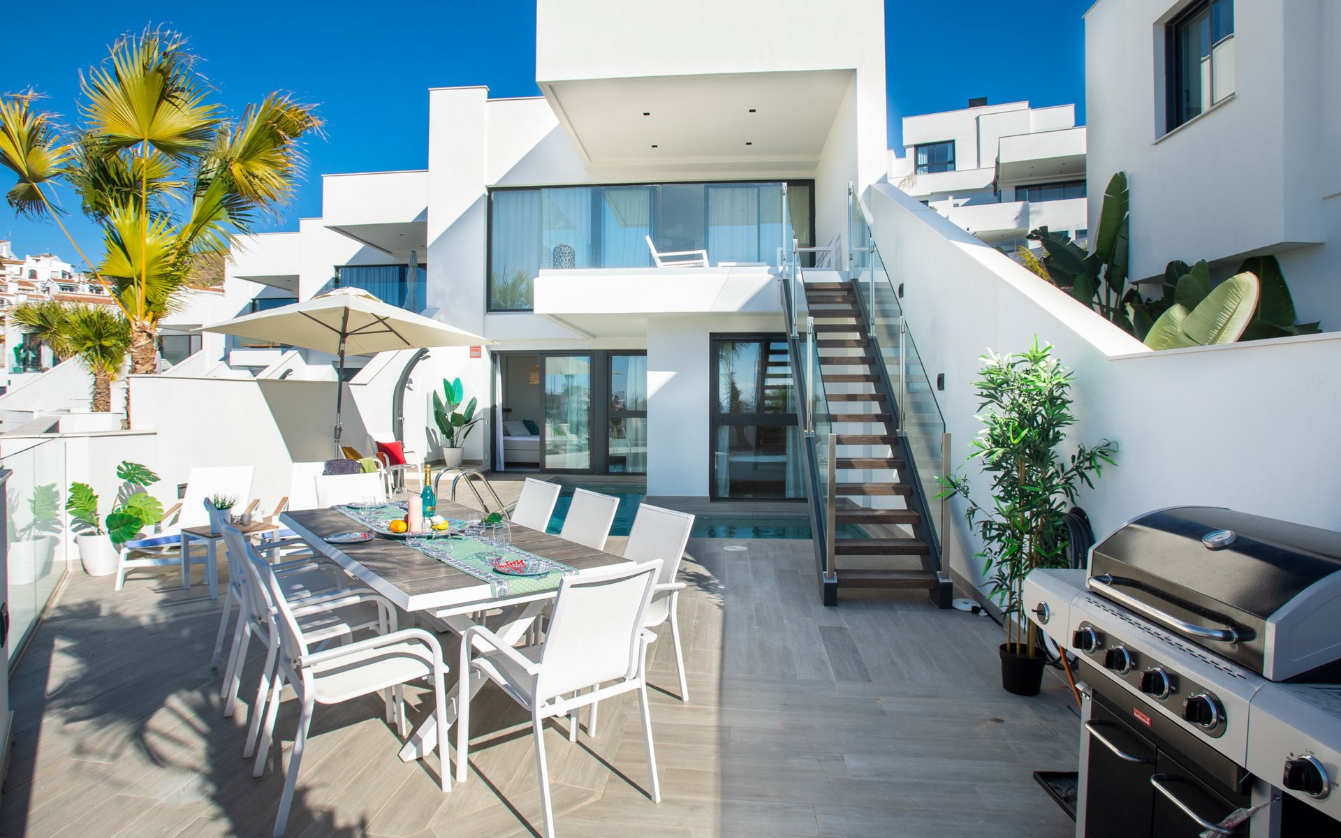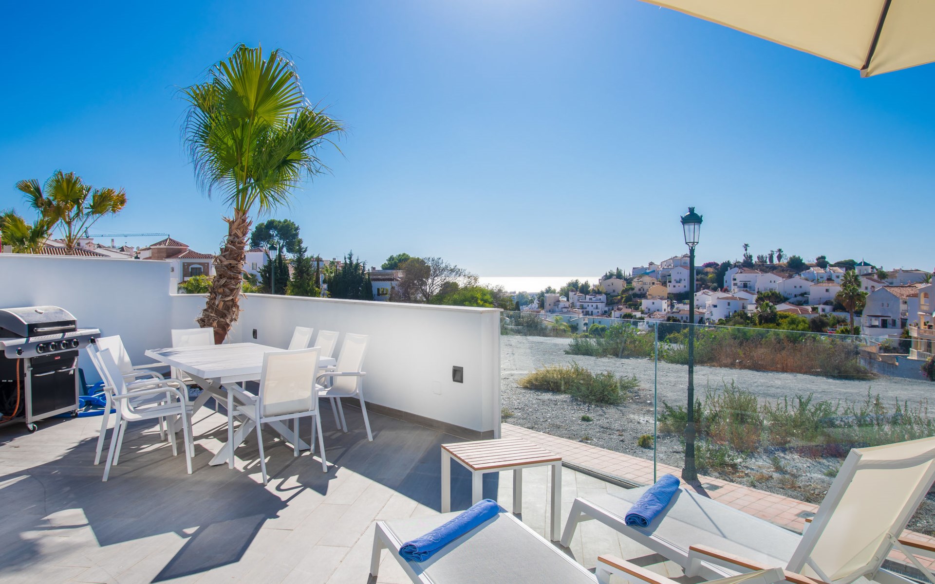 Nerja: Grosses, modernes, schönes Haus "Royal Palm", auf 3 Stockwerken. Im Ort, 1.6 km vom Zentrum von Nerja, sonnige Lage im Villenviertel, 500 m vom Meer, 500 m vom Strand, Richtung Süden. Zur Mitbenutzung: Schwimmbad eckig (5 x 10 m, 97 - 162 cm tief, saisonale Verfügbarkeit: 01.Jan. - 31.Dez.). Zur Alleinbenutzung: Schwimmbad beheizt (2 x 3 m, saisonale Verfügbarkeit: 01.Jan. - 31.Dez.). Im Hause: Waschmaschine. Parkplatz, Einzelgarage. Einkaufsgeschäft, Lebensmittelgeschäft, Supermarkt 300 m, Einkaufszentrum 20 km, Restaurant, Bar, Bäckerei, Café, Internet-Café 300 m, Fahrradverleih 500 m, Biergarten 300 m, Bushaltestelle 150 m, Sandstrand "Burriana" 500 m. Der Besitzer akzeptiert keine Jugendgruppen. Bitte beachten: Be- und Entladen am Ferienhaus möglich.