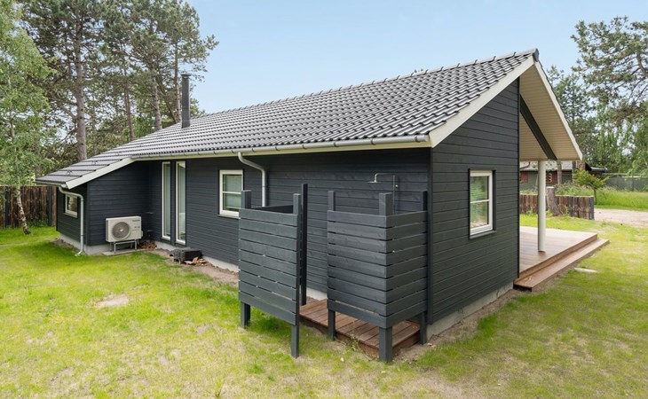 Einfamilienhaus, Baujahr 2021. 125 m vom Meer. Zur Alleinbenutzung: Grundstück 593 m2, gepflegter Garten. Aussendusche, Grill. Im Hause: Waschmaschine. Parkplatz beim Haus. Lebensmittelgeschäft 2 km. Golfplatz 4 km. Der Besitzer akzeptiert keine Jugendgruppen.
