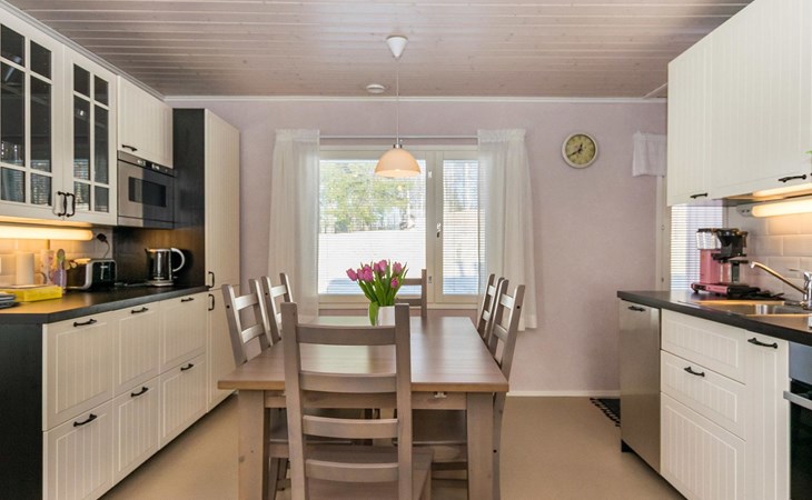 55 km nordwestlich von Heinola, See Suojärvi 800 m entfernt (Länge 3 km, Breite 0.8 km), harter und tiefer Strand mit einigen Nachbarn geteilt, eigenes Boot. Holz-Ferienhaus, Baujahr 1965, renoviert 2014, Wohnküche mit Schlafsofa für 1 Person, Schlafzimmer mit 2 Betten, Sauna (elektrisch), Wasch-/Hauswirtschaftsraum mit begehbarer Dusche, Waschmaschine und Trockner, Veranda, Terrasse. Sommerküche, "DROP-Pool" und Terrasse 30 m². Holzschuppen. Internetzugang (Wi-Fi). Klimaanlage. Satellitenantenne. Villa Ebba ist ein nettes, rosa gefärbtes Omas Ferienhäuschen, mitten auf dem Land. Auf der überdachten Terrasse befindet sich "DROP-Pool" und holzbefeurter Sprudelbad. Während des Zeitraums 1.5.-30.10. kann der Pool frei genutzt werden. Im Winter heizt der Eigentümer den Pool auf, die Gebühr beträgt € 100/Zeit (Barzahlung direkt beim Eigentümer). Die Heizung muss rechtszeitig gebucht werden. Der Pool hat eine Grenze von -15 Grad (kann nicht verwendet werden, wenn es -15 Grad oder kälter ist). Der Strand ist 0.8 km entfernt und kann über einen Pfad erreicht werden. Der Strand ist hart und tief. Der Eigentümer vermietet eine Sauna am See (3 km entfernt), wo sich auch ein Strand für Kinder befindet. Die Miete für die Sauna am See beträgt € 100/Nutzung. Die Sauna wird beheizt, Zahlung vor Ort. Neben der Villa Ebba leben im Sommer ein paar Dutzend Schafe. Die Gäste können die Schafe füttern, wenn sie wollen. Ein professionell ausgebildeter Schäferhund (Hütehund Vilja) ist als Assistent dabei. Die Eigentümer können gerne über die Schafe und ihre Behandlung berichten. Tervalepikko's Schafe leben unter konventionellen Bedingungen inmitten von Wiese und Wald. Geben Sie bitte bei der Buchung des Ferienhauses an, ob Sie Reisebett für Babys und Hochstuhl benötigen. Der Eigentümer bringt diese beim Bedarf ins Haus. Der Eigentümer kann Aussenbordmotor, Freizeitausrüstung (z.B. Kanus, Fahrräder, Elektrofahrräder und Angelausrüstung) sowie Seesauna vermieten. Der Eigentümer hat zwei weitere Ferienhäuser (12927 und 12928), 2 km entfernt. Im Winter (wenn genügend Schnee liegt) beginnen sowohl die Freestyle- als auch die klassische Piste beim Hof des Ferienhauses, 11 km lang. Sysmä 7 km, Tennisplatz, Joggingstrecke, Eisbahn (Kunsteis), Akkordeon Museum, Schwimmhalle, Kino 7 km, Pulkkilanharju 40 km, Vääksy Kanal 60 km. Nationalpark Päijätsalo (Päijänne-Nationalpark) 15 km, Kammiovuori 24 km / Südfinnlands zweithöchster Punkt (221 m), "Yhden lehmän Navetan Pub" (Scheunenkneipe) 22 km, Innenpool und Fitnesscenter des Sysmä Diensthauses 7 km, Golfplatz Hartola Golf 28 km. Reitmöglichkeiten im Sommer - Pferdestall "Starhill" 15 km, ganzjährig Unettu Pferdefarm Hartola 29 km, Reitstall Vahto in Asikkala 30 km, Purnuvuori Ski 46 km, Lahti, Messilä 80 km, Himos 102 km, Nokia Eden 183 km, Spa Serena Espoo 199 km.