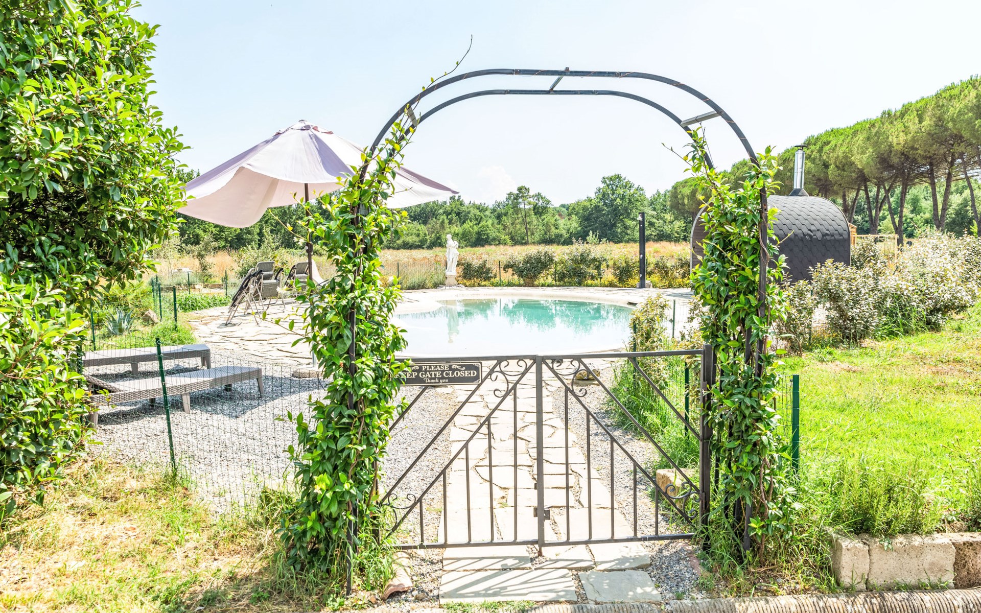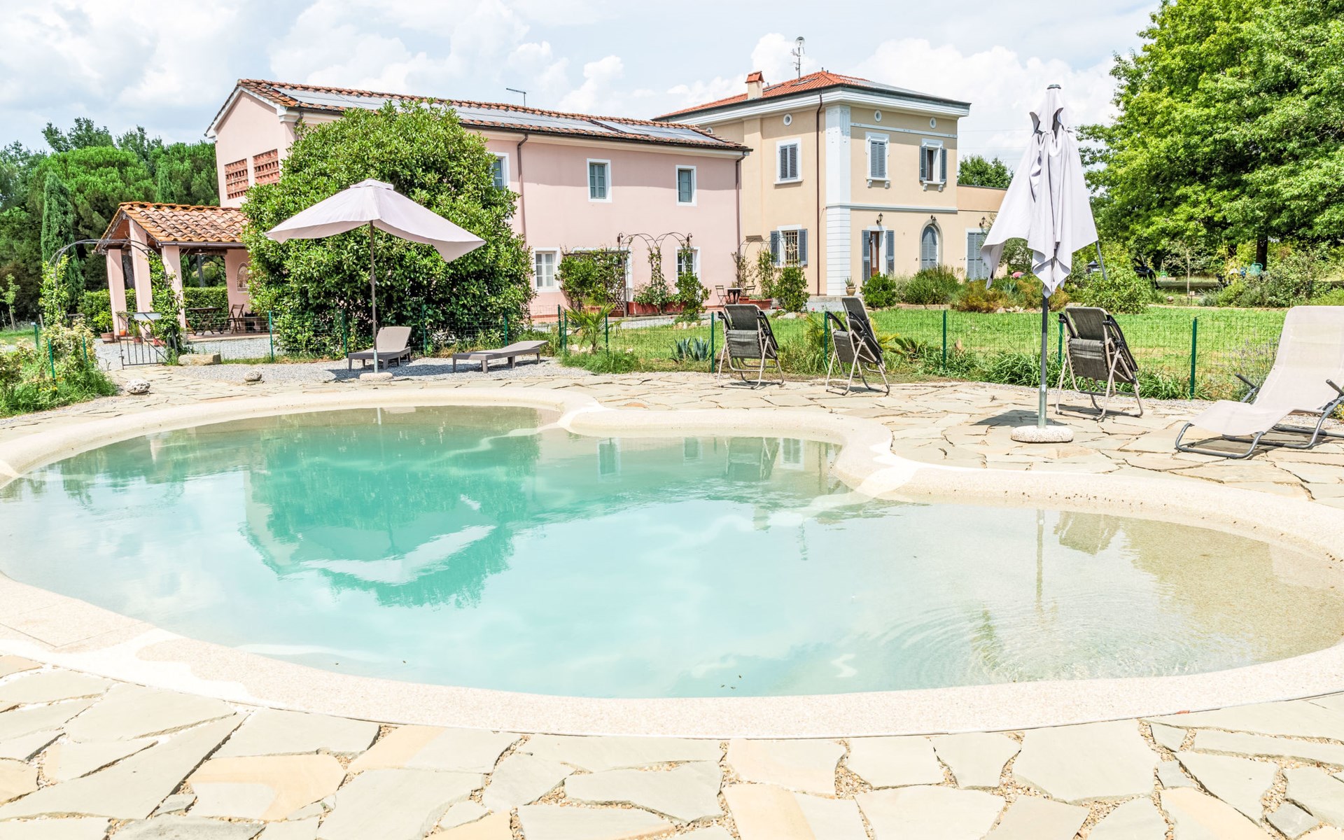 Gemütliches, freistehendes, komfortables Haus "Agave", renoviert im Jahre 2022, umgeben von Bäumen und Wiesen. Querce, 13 km vom Zentrum von Fucecchio, ruhige, sonnige Lage, im Grünen. Zur Mitbenutzung: Grundstück 1 ha (eingezäunt), Schwimmbad eingezäunt (50 m2, 100 - 130 cm tief, saisonale Verfügbarkeit: 15.Mai. - 30.Okt.). Aussendusche, Grillhaus, Kinderspielplatz, Poolpflege durch den Besitzer/Gärtner. Zur Alleinbenutzung: Garten 20 m2. Im Hause: Klimaanlage, Waschmaschine. Parkplatz (für 2 Autos) auf dem Grundstück. Lebensmittelgeschäft 2 km, Supermarkt 2 km, Restaurant, Bushaltestelle 700 m. Nahe gelegene Sehenswürdigkeiten: Marina di Vecchian 35 km, Pisa 40 km, Lucca 30 km, Firenze 45 km. Bitte beachten: Babyausstattung auf Anfrage (inkl.).