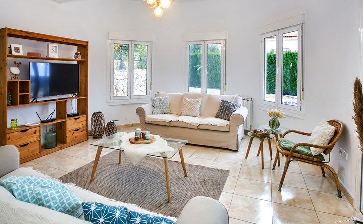 Gata Residencial: Sehr schönes, gemütliches Haus "El Descanso", auf 2 Stockwerken. 2 km vom Zentrum von Gata de Gorgos, 11 km vom Zentrum von Jávea, 15 km vom Zentrum von Dénia, im Bezirk Gata Residencial, ruhige, sonnige, erhöhte Lage im Villenviertel, 400 m vom Waldrand, 13 km vom Meer, 13 km vom Strand. Pflanzen und Bäumen. Zur Alleinbenutzung: Schwimmbad (9 x 4 m, 110 - 210 cm tief, saisonale Verfügbarkeit: 01.Jan. - 31.Dez.). Aussendusche, Pergola, Terrasse, Gartenmöbel, Grill, Parkplatz (überdacht) auf dem Grundstück. Supermarkt 3 km, Einkaufszentrum 8 km, Restaurant 1.3 km, Bushaltestelle 5 km, Bahnstation 17 km, Fähre 1.9 km, Sandstrand "El Arenal de Jávea" 16 km, Kieselstrand "El Montanyar de Jávea" 13 km, Steinstrand "Les Rotes de Dénia" 18 km. Sporthafen 15 km, Golfplatz (18 Loch) 8 km, Surfschule 15 km, Segelschule 15 km. Bitte beachten: Fahrzeug empfohlen. Der Besitzer akzeptiert keine Jugendgruppen.