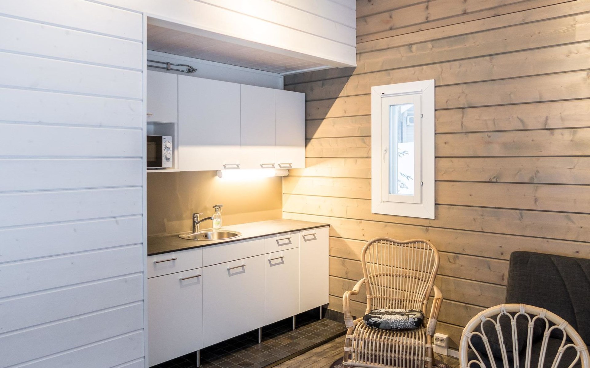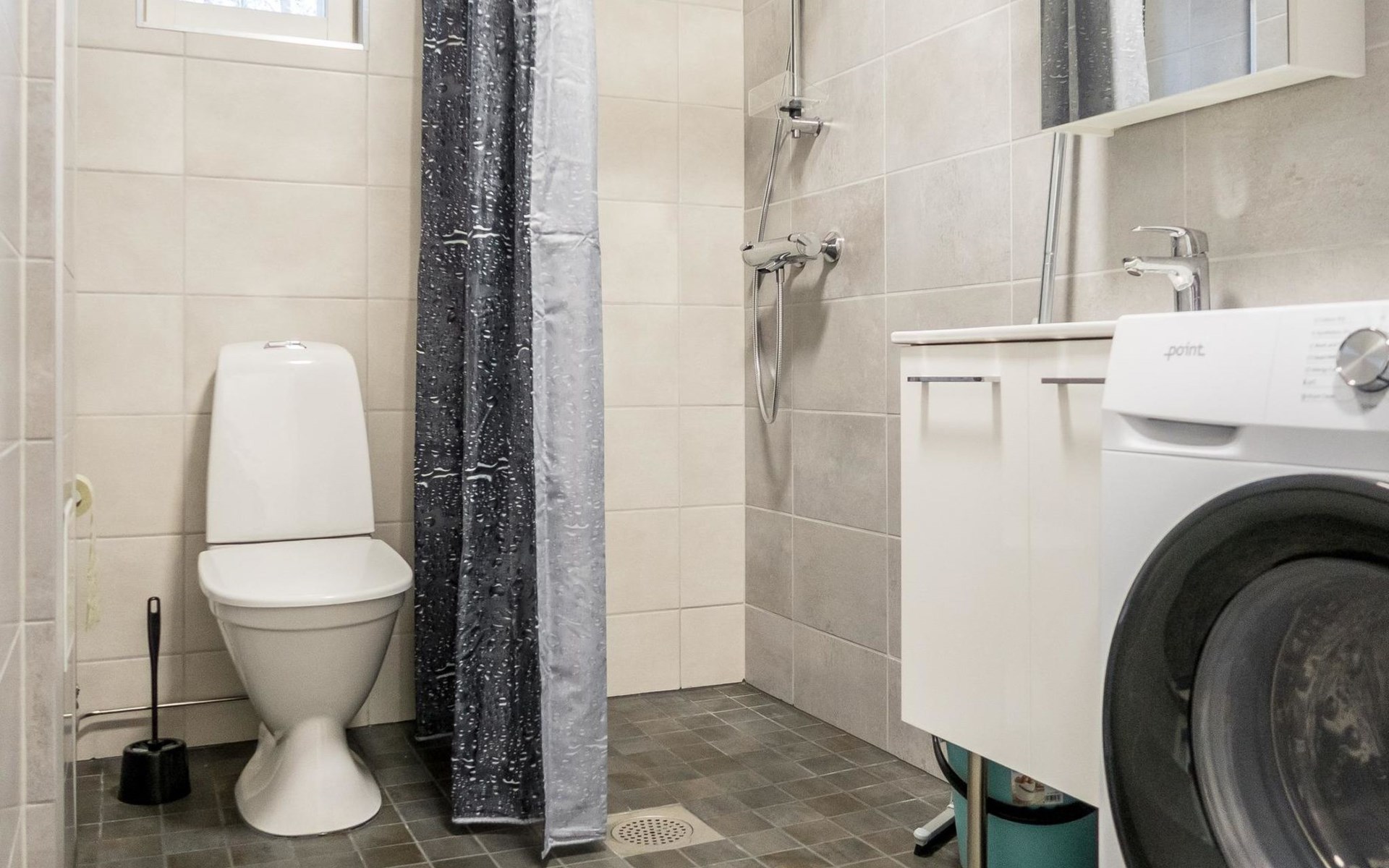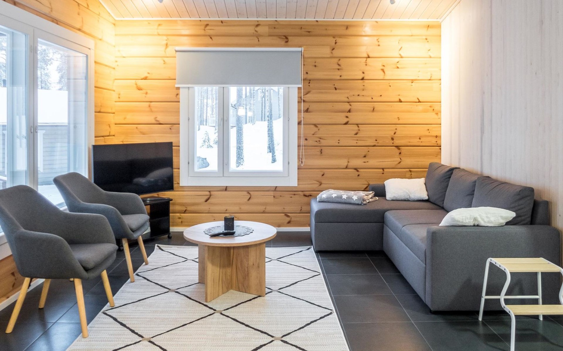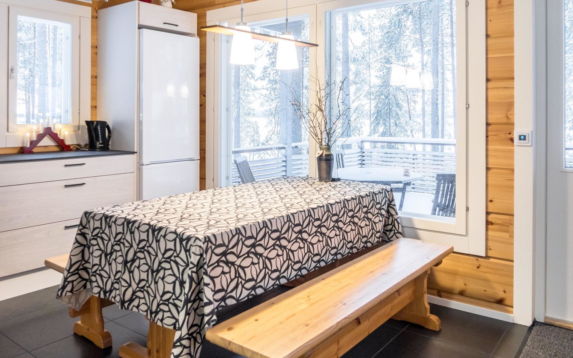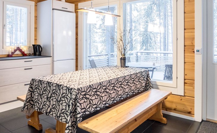The area of the main house is 62 m², with a spacious kitchen/living room with large windows overlooking the lake and the forest landscape. Dining set for 6 in the kitchen. Two separate bedrooms, one with a double bed and wardrobes. In the second bedroom, separate beds for 2. The living room has a sofa bed for 1-2 guests. Shower/toilet, washing machine and drying rack in the washroom. Entrance hall with wardrobes, access from the back to a large terrace with garden furniture and a grill available in the summer. In the main cabin, underfloor heating, air-to-air heat pump and ventilation unit.