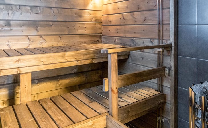 The sauna is located in a separate building, surface area 30 m², where in the same connection there is also a sauna room with a kitchenette (fridge, microwave, sink), a sofa bed for 1-2 guests in the sauna room. Sauna with Harvia tower electric stove, shower. Sauna building available all year round - running hot and cold water and heating with floorheating and electric radiators.