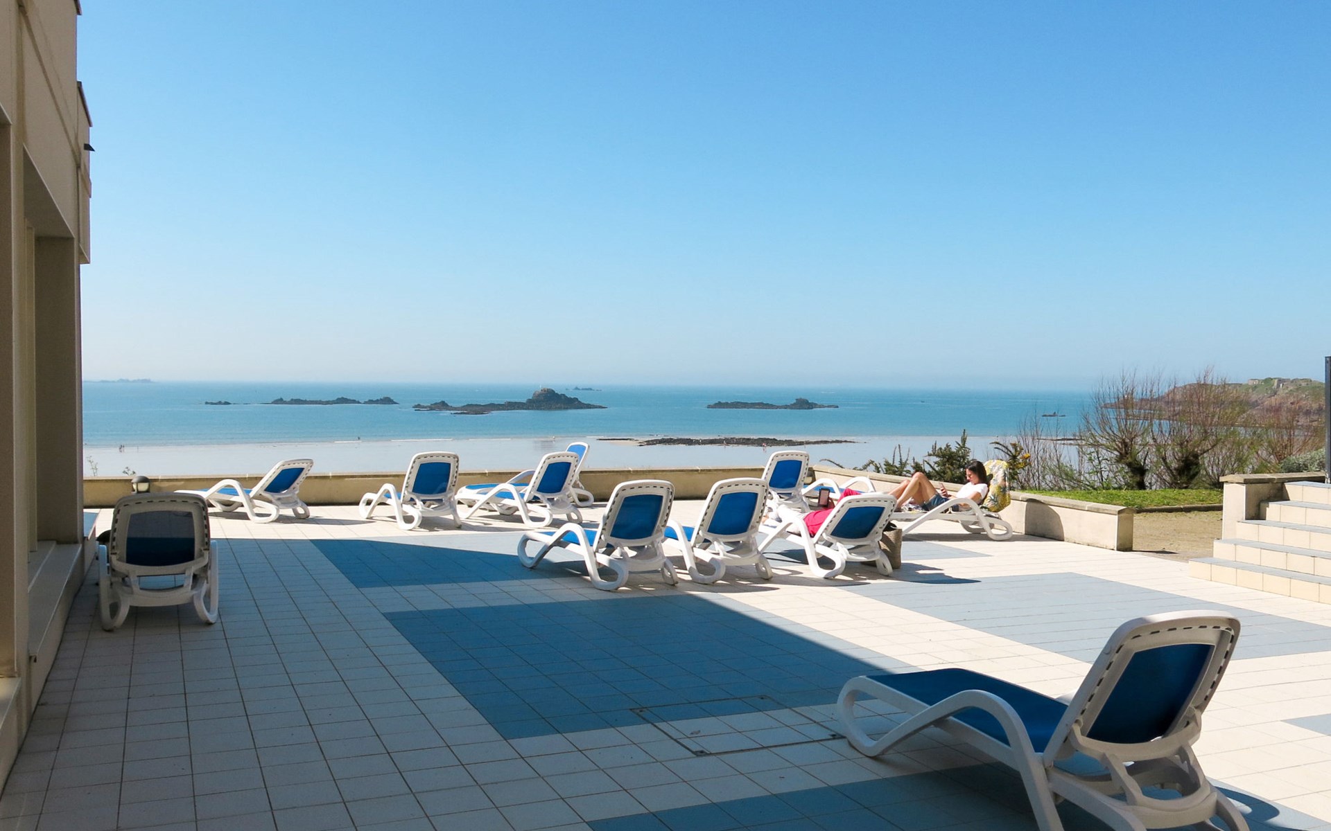 Sehr schönes Apart-Hotel "Reine Marine", auf 4 Stockwerken. 67 Wohnungen in der Residenz. 3 km vom Zentrum von Saint Malo, 30 m vom Meer, direkter Zugang zum Strand. Zur Mitbenutzung: Hallenbad beheizt (13 x 8 m, saisonale Verfügbarkeit: 01.Jan. - 31.Dez.). Terrasse. In der Anlage: Empfang, Bar, Dampfbad, Fahrstuhl, Einstellraum für Fahrräder, Waschmaschine, Wäschetrockner (zur Mitbenutzung, extra), Fahrradverleih. Brötchenservice. Parkplatz. E-Ladestation. Einkaufsgeschäft 400 m, Bushaltestelle 250 m, Sandstrand "Plage de Minihic" 30 m. Segelschule 1 km, Tennis 2 km. Nahe gelegene Sehenswürdigkeiten: Cancale 12 km, Dinard 13 km, Dinan 36 km, Mont Saint Michel 58 km, Rennes 70 km. Wandergebiete: GR34. Bitte beachten: Das Foto ist nur ein Hausbeispiel.