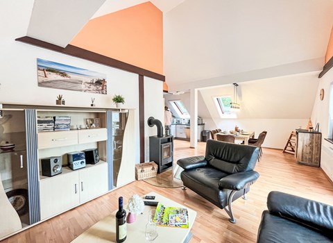 Mehrfamilienhaus auf 2 Stockwerken. Im Ort, 350 m vom Meer, 300 m vom Strand. Im Hause: Einstellraum für Fahrräder, Zentralheizung. Parkplatz beim Haus. Supermarkt 1.6 km, Restaurant 200 m, Bäckerei 400 m, Café 300 m, Bushaltestelle 300 m, Bahnstation "Norddeich" 2 km, Fähre 2 km, Sandstrand 300 m, Freibad 14 km, Hallenbad 600 m. Golfplatz (18 Loch) 8 km, Surfschule 1 km, Tennis 2 km, Minigolf 600 m.