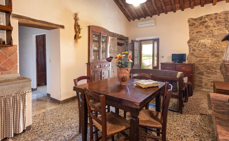 Schöner, gemütlicher, rustikaler Bauernhof "Le Calle", umgeben von Feldern und Weinbergen. 3 Wohnungen in der Residenz. 10 km vom Zentrum von Cinigiano, sonnige, erhöhte Lage, 50 km vom Meer, im Grünen. Zur Mitbenutzung: wunderschöner Garten zum Entspannen, Schwimmbad (6 x 12 m, 120 - 170 cm tief, saisonale Verfügbarkeit: 01.Mai. - 30.Okt.) mit Meerwasser. Dusche/WC im Poolbereich, Sprudelbad, Volleyball, Grill, Kinderspielplatz, Poolpflege durch den Besitzer/Gärtner. Im Hause: Empfang, Waschmaschine (zur Mitbenutzung). Parkplatz auf dem Grundstück. Lebensmittelgeschäft 1 km, Supermarkt 10 km, Restaurant 3 km. Reitstall 10 km, Wanderwege ab Haus 20 m. Nahe gelegene Sehenswürdigkeiten: Montalcino 35 km, Val d´Orcia, Monte Amiata, Castiglione della Pescaia 50 km. Wandergebiete: Parco dell´Uccellina 50 km. Bitte beachten: Fahrzeug empfohlen. Ab Hof Verkauf von bäuerlichen Produkten.