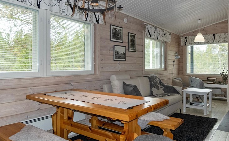 The location provides easy access to ski trails and hiking routes. At the same time, you are close to the services of Saariselkä resort, such as restaurants, a spa, shops, and other amenities.