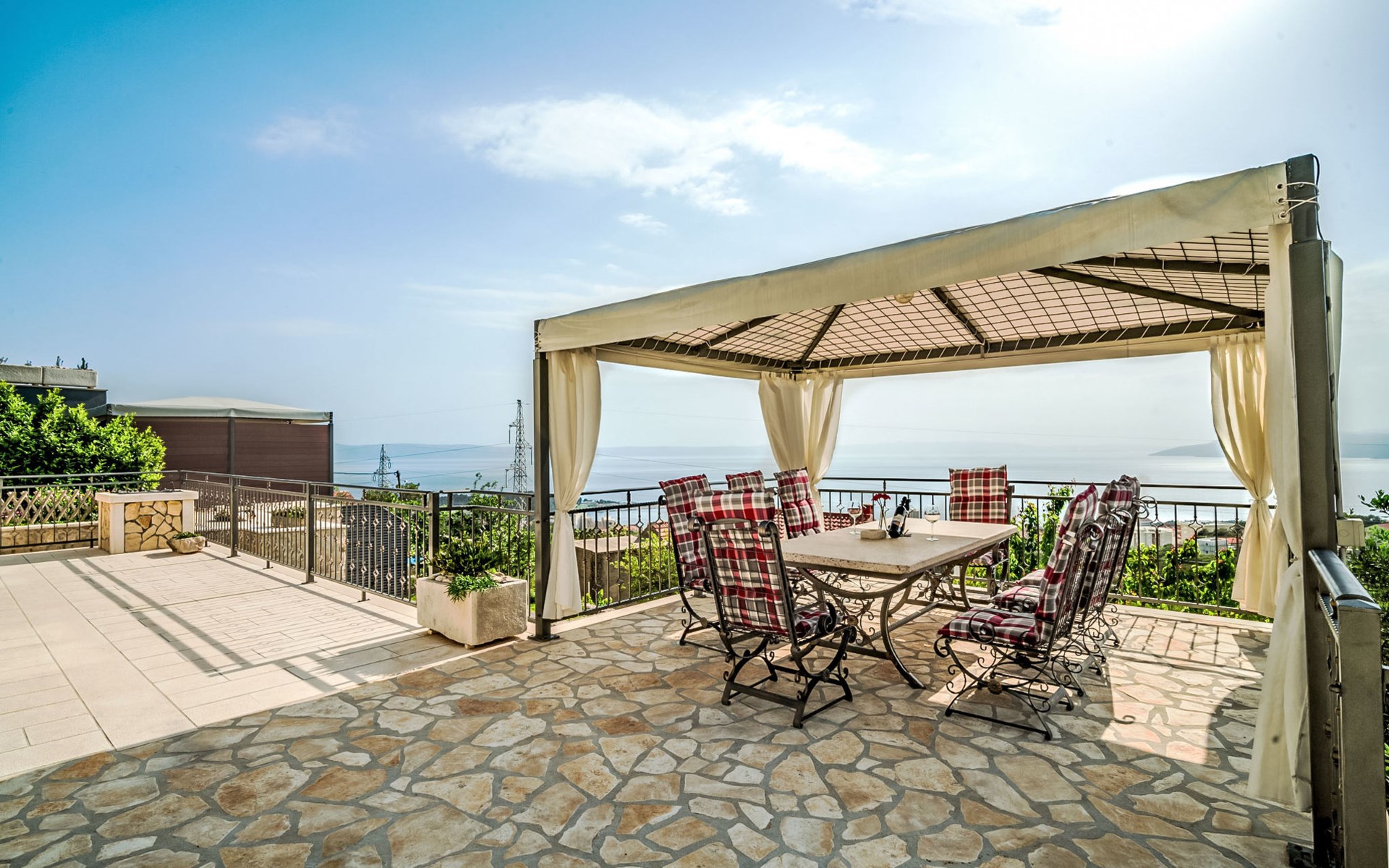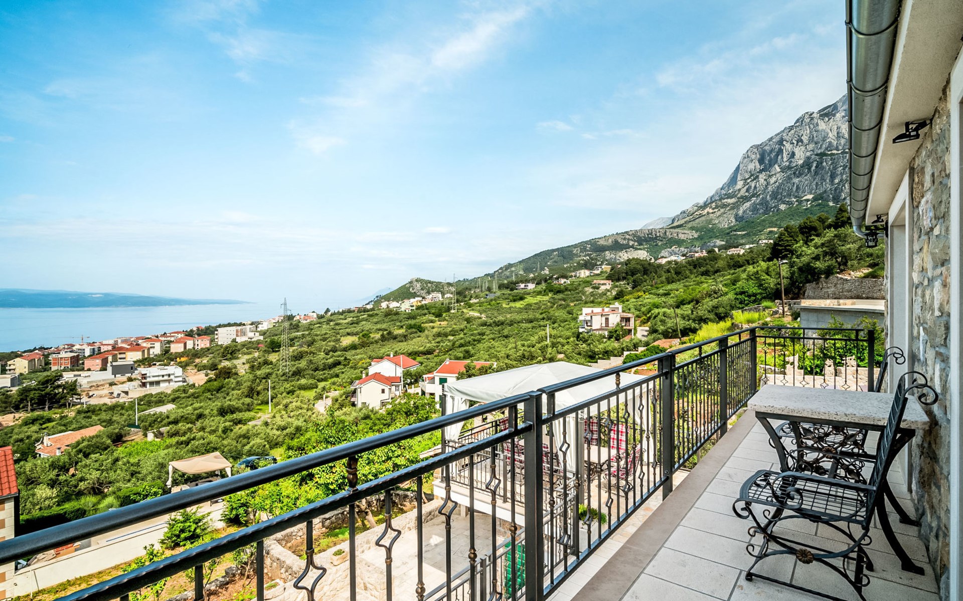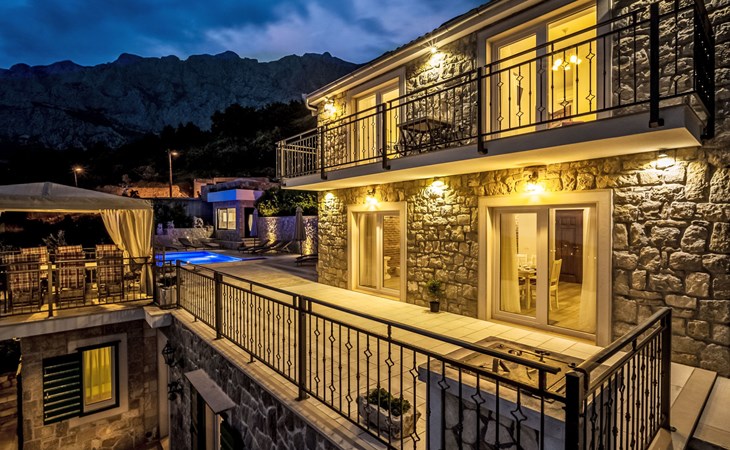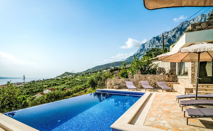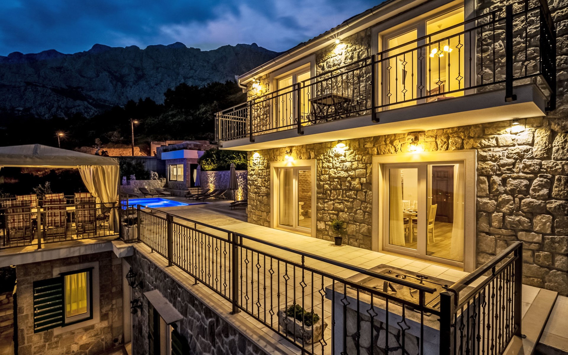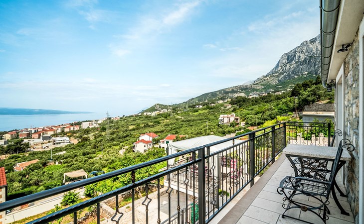 Einfamilienhaus "Bellavista", auf 2 Stockwerken. Oberhalb von Makarska, im Weiler Puharići, 1.5 km vom Zentrum von Makarska, ruhige, sonnige Lage am Hang, 1.5 km vom Meer, 1.5 km vom Strand. Zur Alleinbenutzung: Grundstück 500 m2 (eingezäunt), Schwimmbad eckig, beheizt (8 x 3 m, 150 cm tief, saisonale Verfügbarkeit: 01.Apr. - 31.Okt.) mit Innentreppe. Aussendusche, Terrasse (140 m2), Gartenmöbel, Grill, Poolpflege durch den Besitzer/Gärtner. Im Hause: Internetzugang, Sauna (extra). Waschmaschine. Parkplatz (für 2 Autos) auf dem Grundstück. Einkaufsgeschäft, Restaurant 800 m, Bushaltestelle 3.6 km, Kieselstrand 1.5 km. Die Nachbarschaft ist sehr lärmempfindlich. Ruhe und gutes Benehmen wird erwartet. Erwärmung des Wassers im Schwimmbad (extra). Es ist notwendig, 7 Tage im Voraus anzukündigen, wenn die Poolheizung benötigt wird. Sauna im kleinen Haus neben dem Pool.