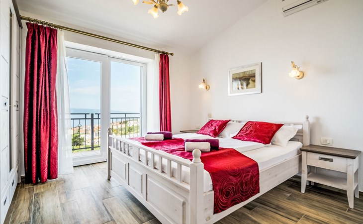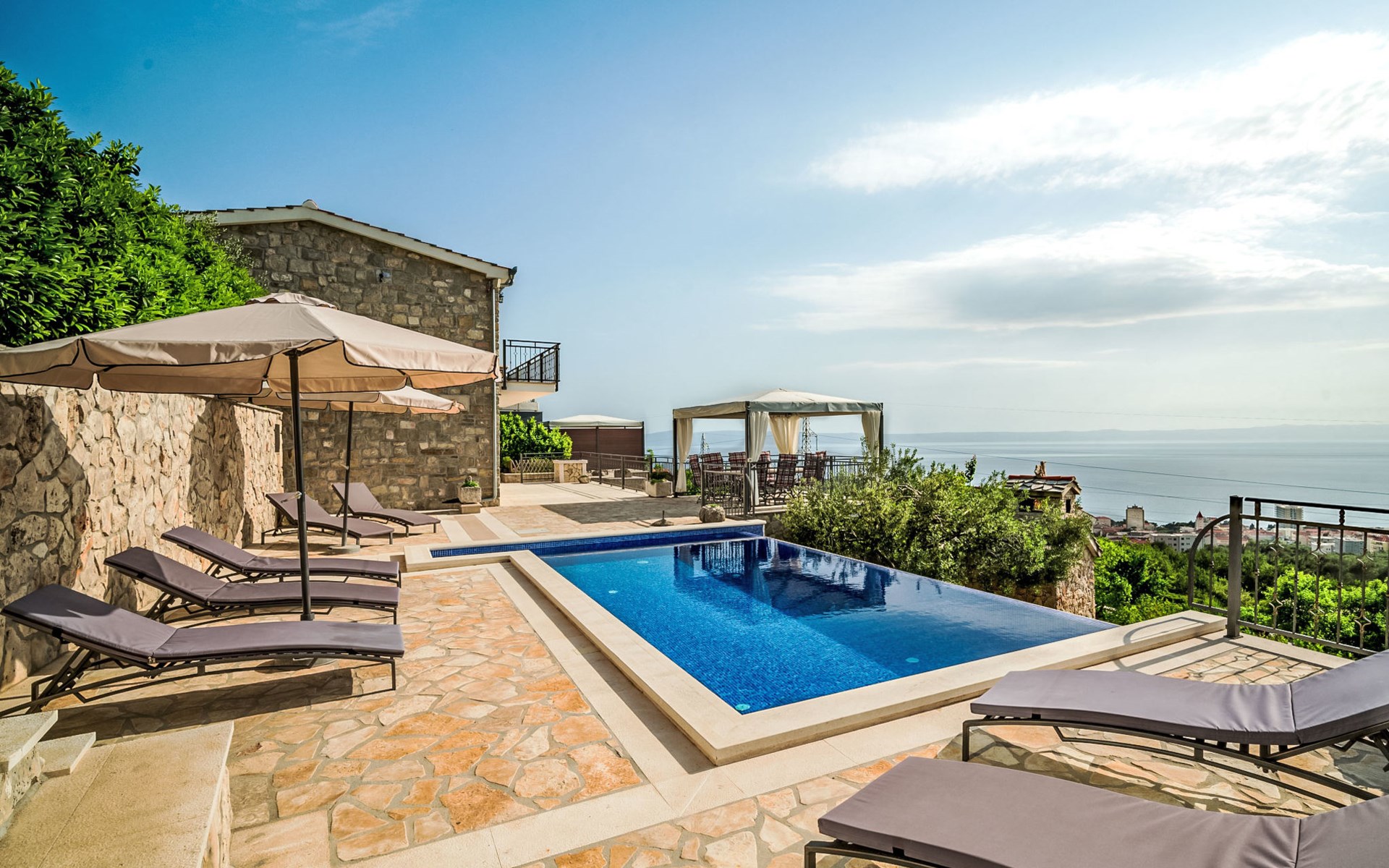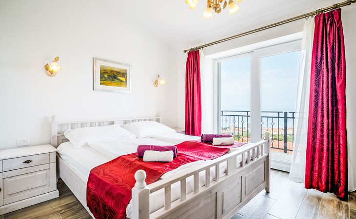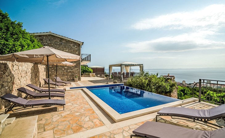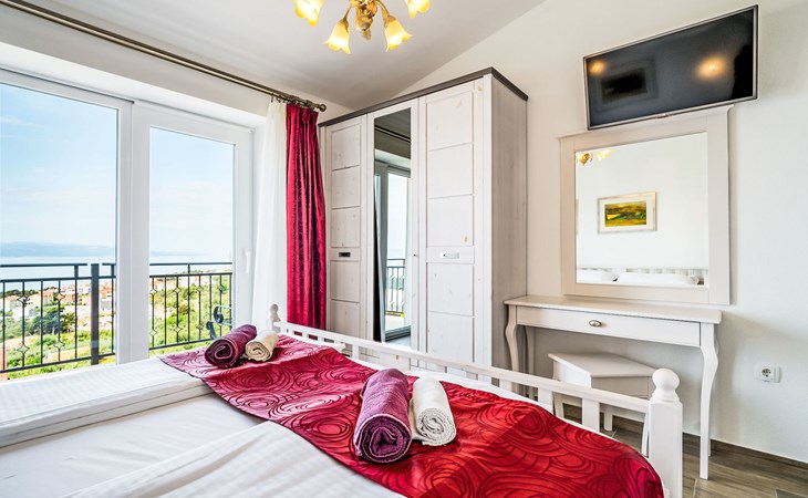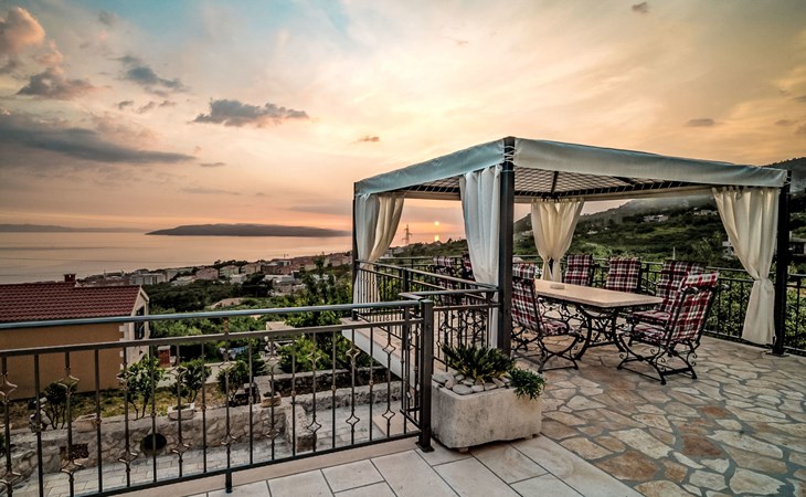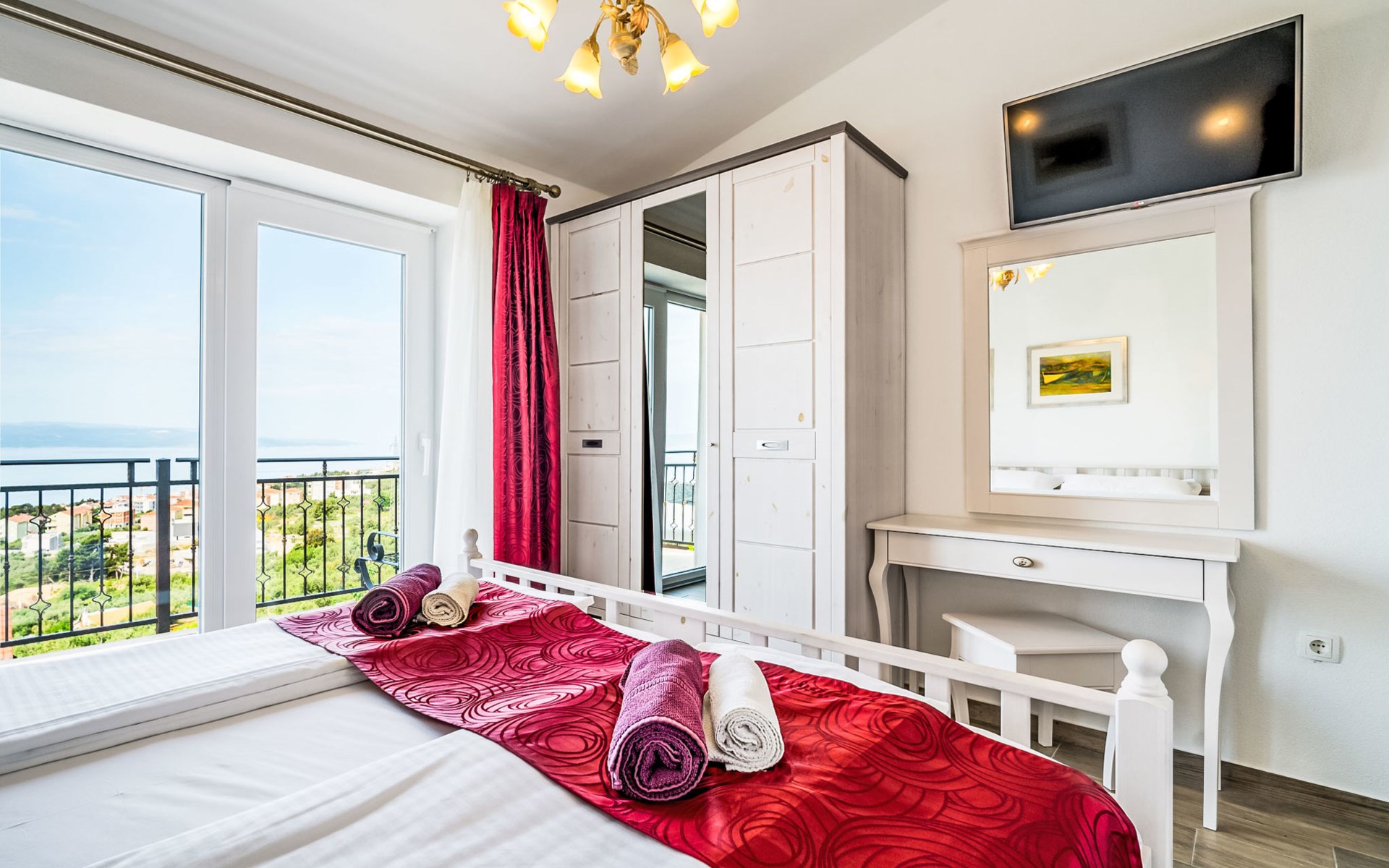 Einfamilienhaus "Bellavista", auf 2 Stockwerken. Oberhalb von Makarska, im Weiler Puharići, 1.5 km vom Zentrum von Makarska, ruhige, sonnige Lage am Hang, 1.5 km vom Meer, 1.5 km vom Strand. Zur Alleinbenutzung: Grundstück 500 m2 (eingezäunt), Schwimmbad eckig, beheizt (8 x 3 m, 150 cm tief, saisonale Verfügbarkeit: 01.Apr. - 31.Okt.) mit Innentreppe. Aussendusche, Terrasse (140 m2), Gartenmöbel, Grill, Poolpflege durch den Besitzer/Gärtner. Im Hause: Internetzugang, Sauna (extra). Waschmaschine. Parkplatz (für 2 Autos) auf dem Grundstück. Einkaufsgeschäft, Restaurant 800 m, Bushaltestelle 3.6 km, Kieselstrand 1.5 km. Die Nachbarschaft ist sehr lärmempfindlich. Ruhe und gutes Benehmen wird erwartet. Erwärmung des Wassers im Schwimmbad (extra). Es ist notwendig, 7 Tage im Voraus anzukündigen, wenn die Poolheizung benötigt wird. Sauna im kleinen Haus neben dem Pool.