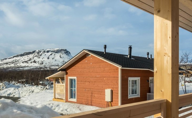 Wooden villa, built in 2022. Living room/kitchen, two bedrooms, both with two beds, sauna, washroom/WC, utility room, separate WC and covered terrace.