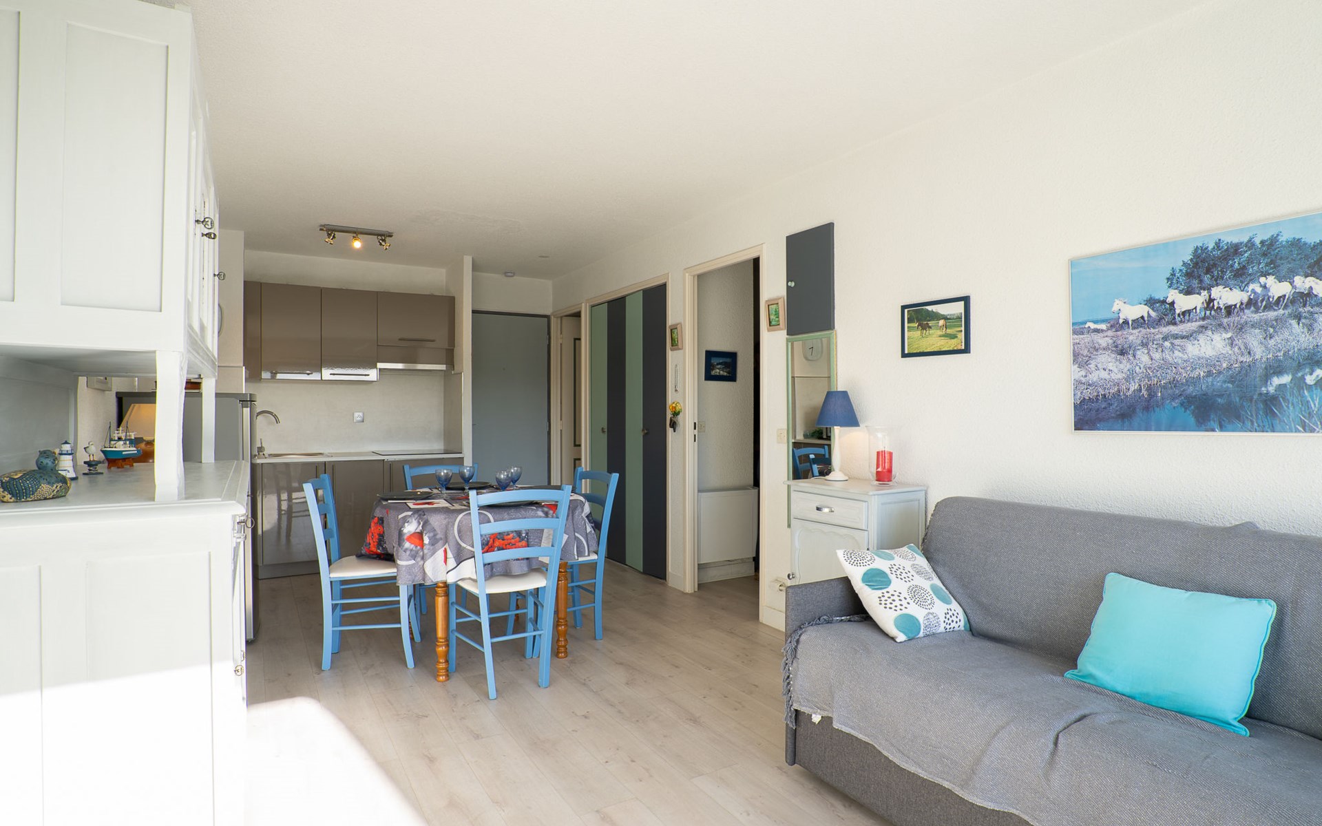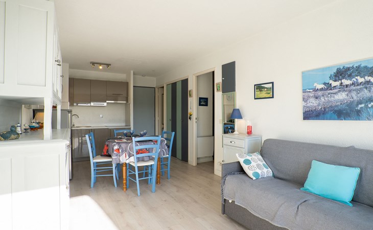 Residenz "La Frégate", auf 3 Stockwerken. Im Ortsteil la Plage Sud, 250 m vom Meer, 200 m vom Strand. Öffentliche Parkplätze 50 m auf der Strasse. Einkaufsgeschäft, Lebensmittelgeschäft, Einkaufszentrum 400 m, Restaurant, Sandstrand "Plage Sud" 200 m, Hallenbad 4.4 km. Sporthafen 20 m, Segelschule 3 km, Tennis 2 km, Reitstall 4 km. Nahe gelegene Sehenswürdigkeiten: Casino Flamingo 2.5 km, Seaquarium 2.5 km, Arènes du Grau du Roi 3.5 km, Aigues Mortes 10 km, La Grande-Motte 15 km, Nîmes 54 km. Wandergebiete: Réserve Naturelle de Camargue. Bitte beachten: Die Schlüsselübergabe findet bei der Agentur Interhome in Port Camargue statt, 2 km. Flugplatz 25 km vom Haus.
