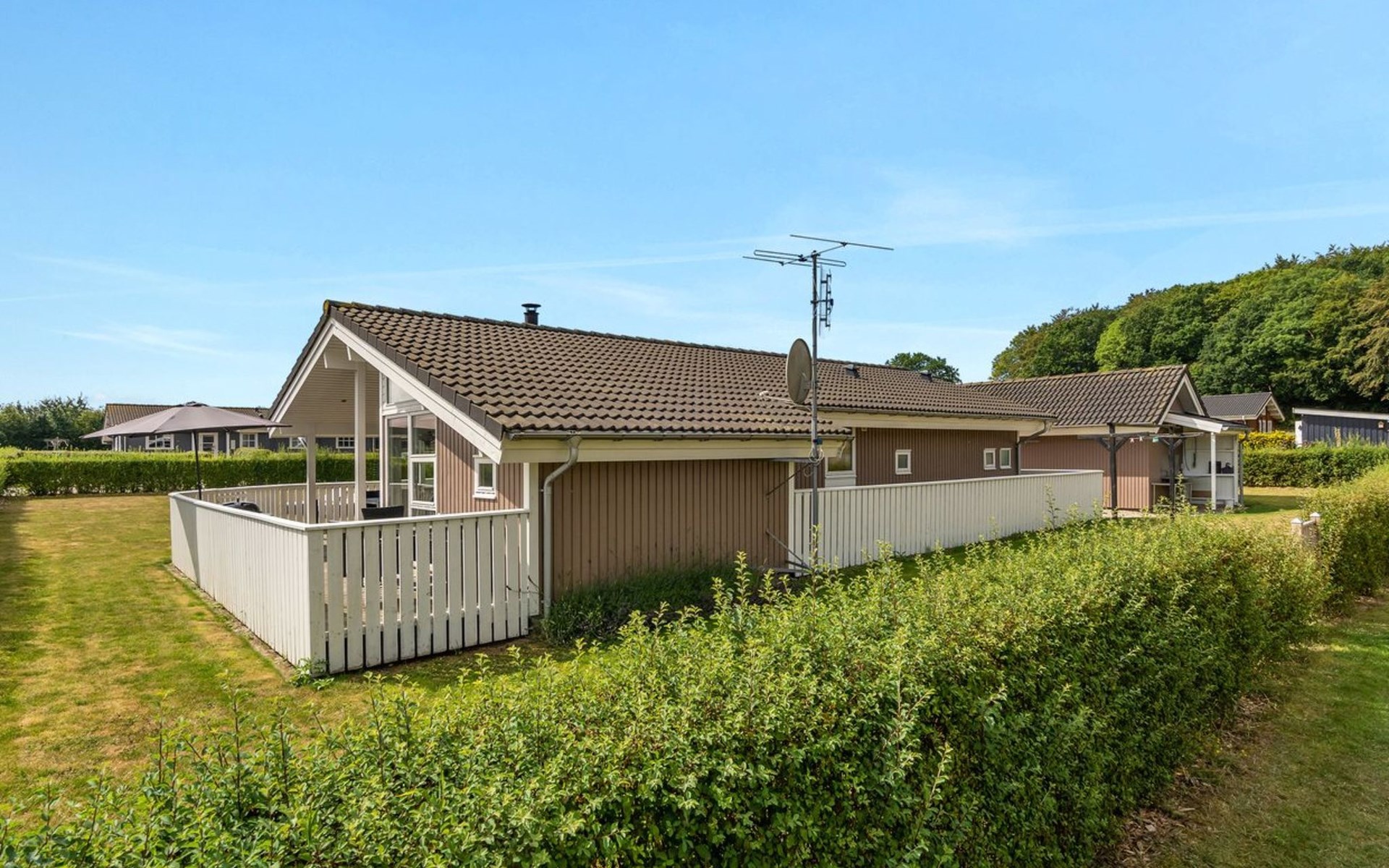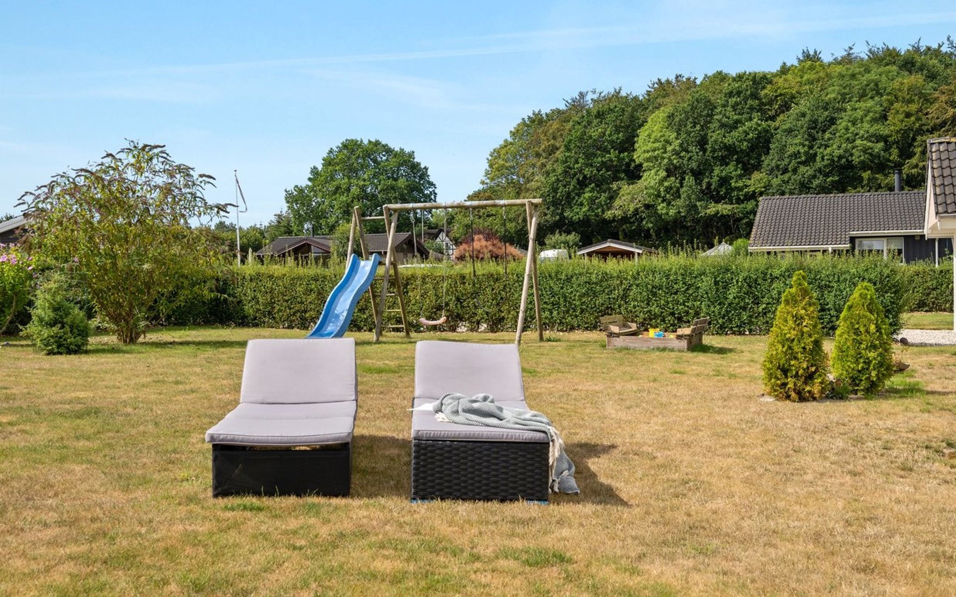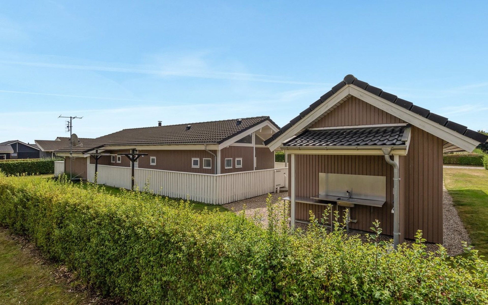 Einfamilienhaus, Baujahr 2008. 600 m vom Meer. Zur Alleinbenutzung: Grundstück 999 m2, gepflegter Garten. Terrasse (25 m2), Kinderspielplatz (Rutschbahn, Schaukel). Im Hause: Sauna, Waschmaschine, Wäschetrockner. Parkplatz beim Haus. Carport. Lebensmittelgeschäft 800 m. Der Besitzer akzeptiert keine Jugendgruppen.