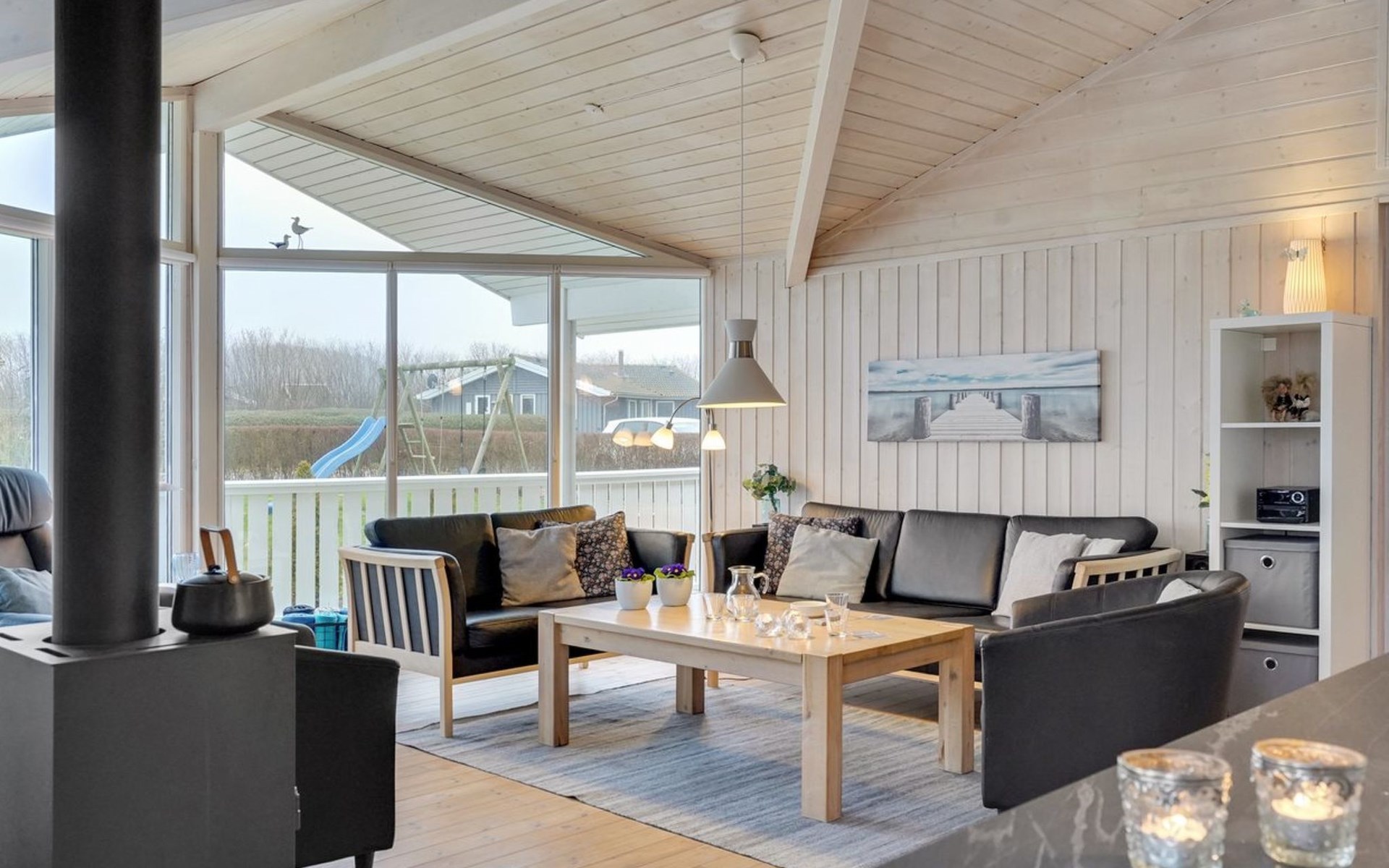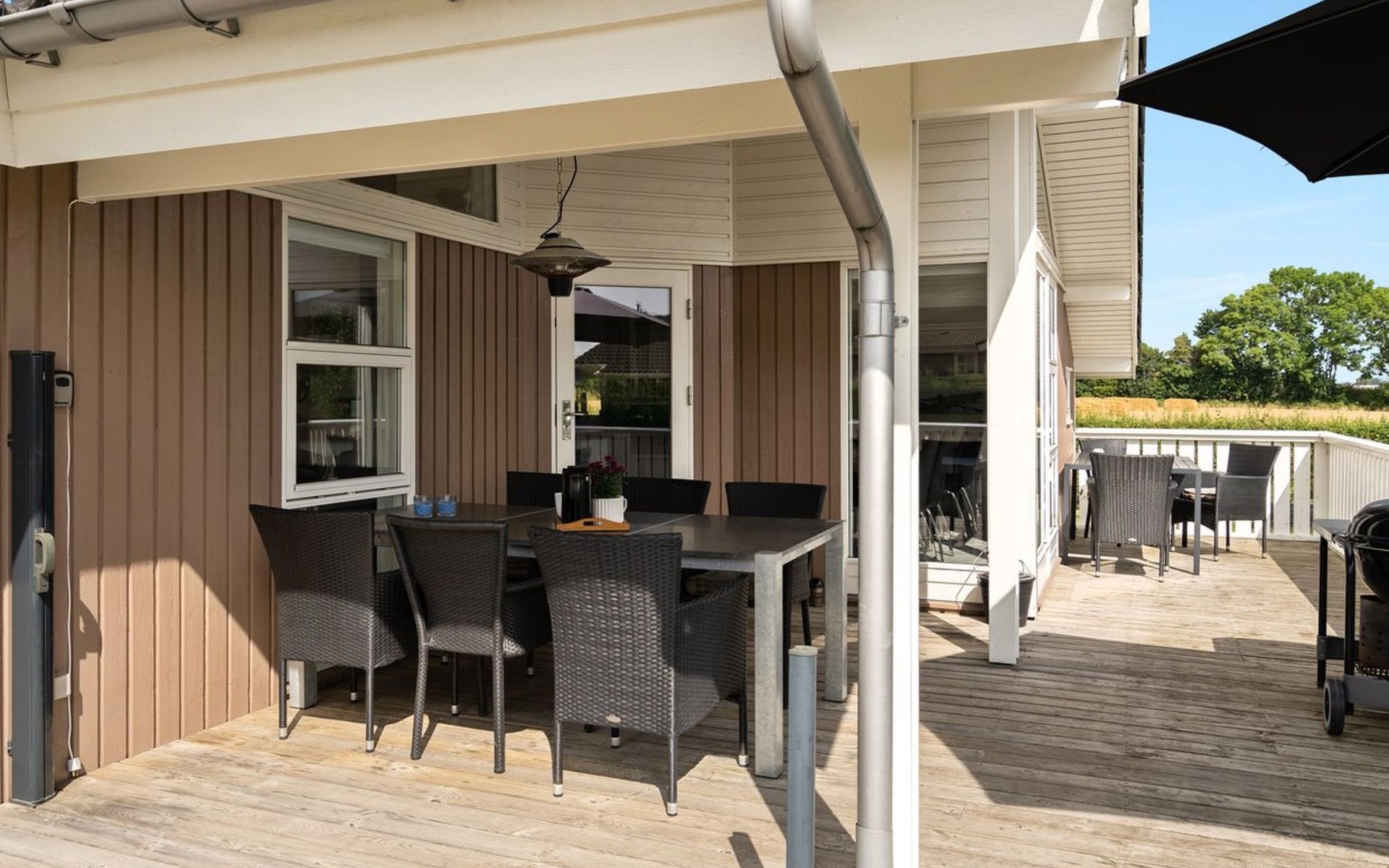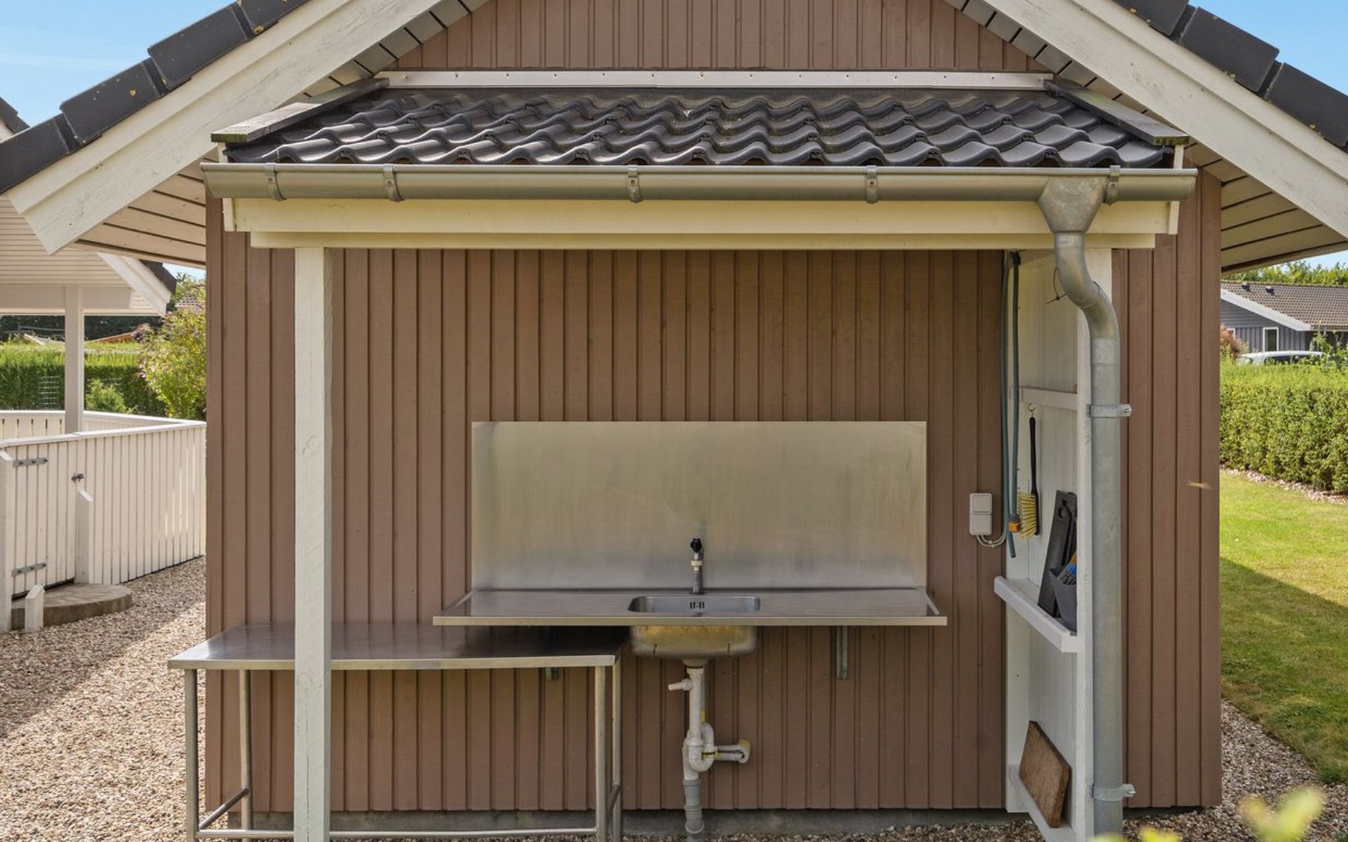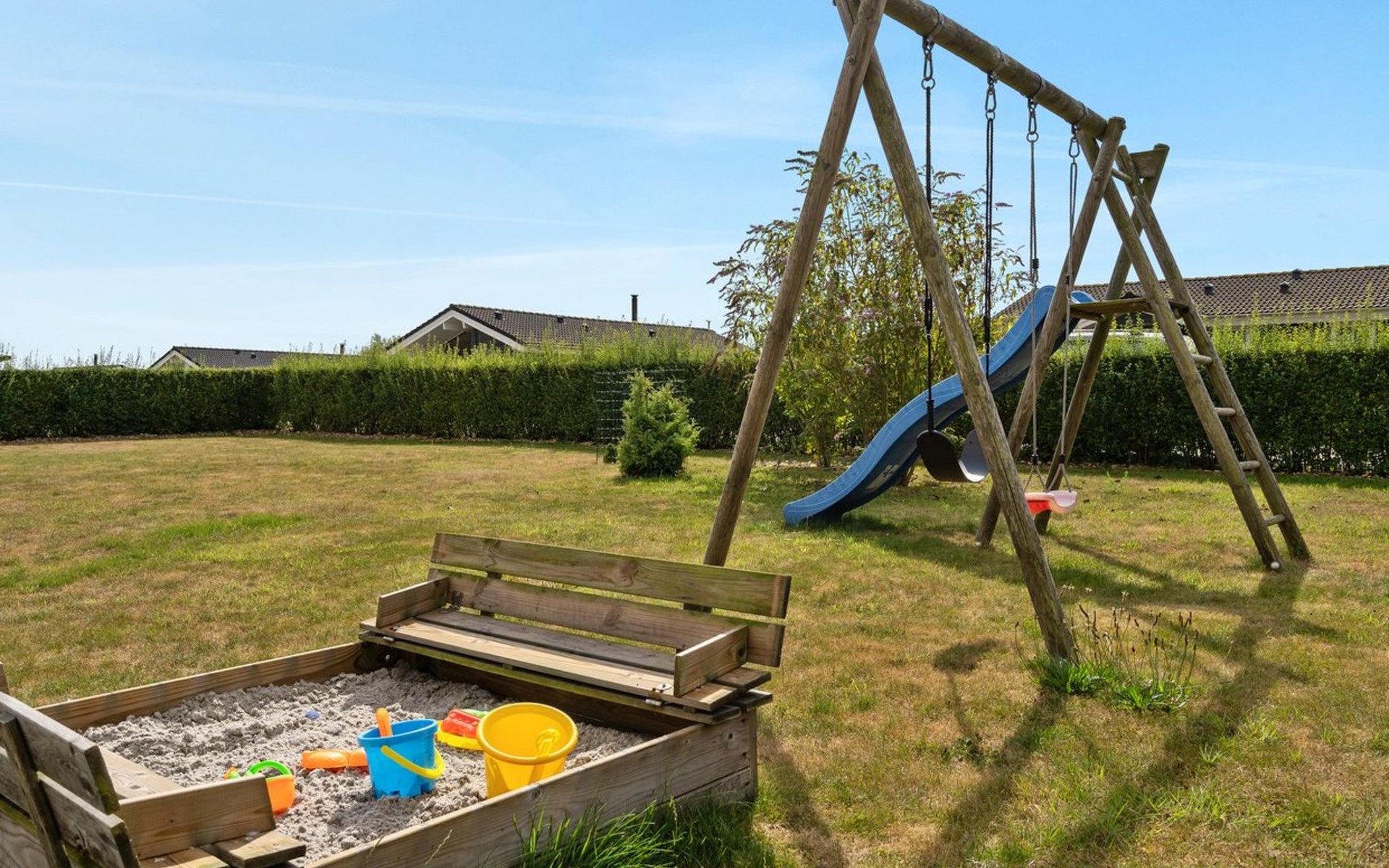 Einfamilienhaus, Baujahr 2008. 600 m vom Meer. Zur Alleinbenutzung: Grundstück 999 m2, gepflegter Garten. Terrasse (25 m2), Kinderspielplatz (Rutschbahn, Schaukel). Im Hause: Sauna, Waschmaschine, Wäschetrockner. Parkplatz beim Haus. Carport. Lebensmittelgeschäft 800 m. Der Besitzer akzeptiert keine Jugendgruppen.