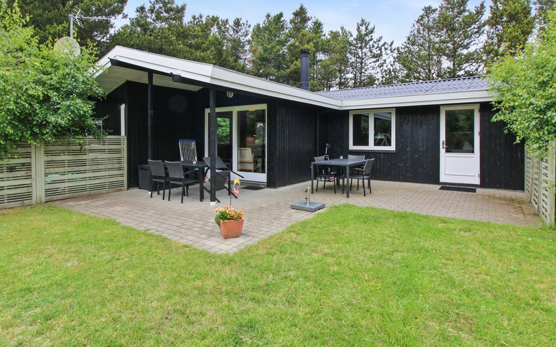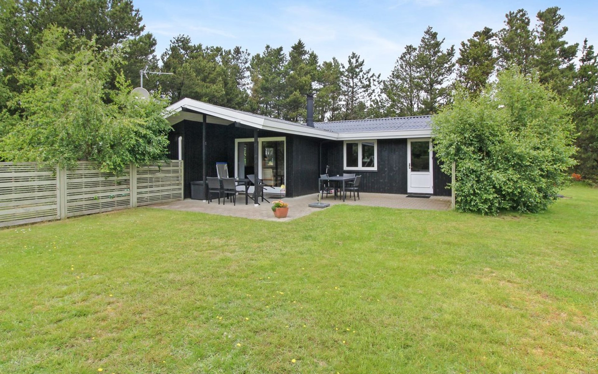 Einfamilienhaus, Baujahr 1979. 1.4 km vom Meer. Zur Alleinbenutzung: naturbelassenes Grundstück 2'400 m2. Terrasse (15 m2), Kinderspielplatz (Schaukel). Im Hause: Waschmaschine. Parkplatz beim Haus. Lebensmittelgeschäft 500 m. Der Besitzer akzeptiert keine Jugendgruppen.