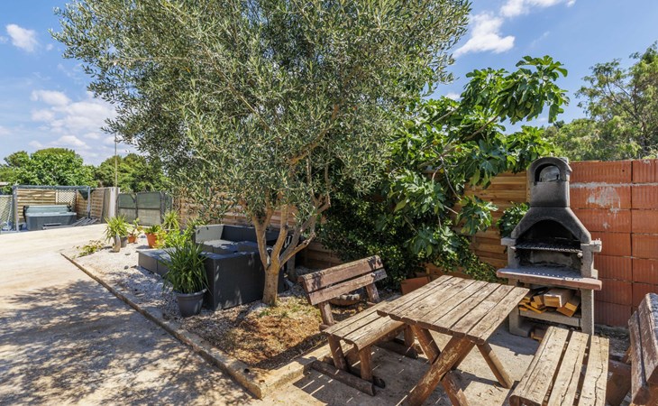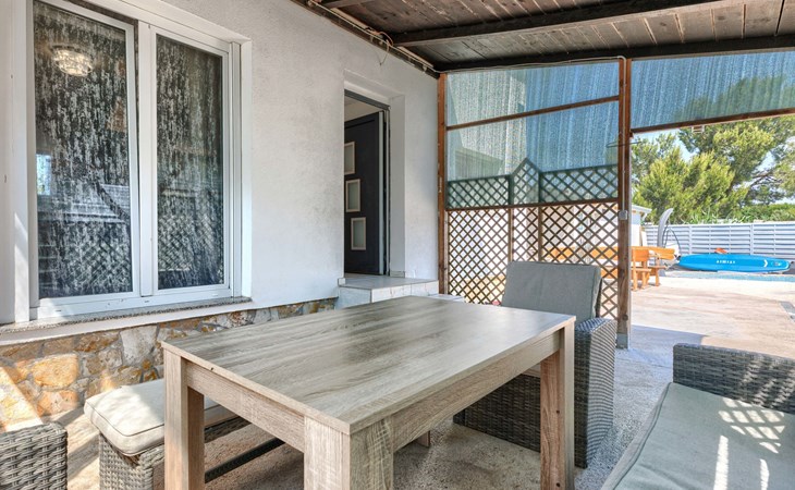 Zweifamilienhaus "Sabo". 1.7 km vom Zentrum von Peroj, 3 km vom Zentrum von Fažana, 8 km vom Zentrum von Vodnjan, sonnige Lage, 300 m vom Meer, 300 m vom Strand. Zur Mitbenutzung: Grundstück 150 m2 (eingezäunt), Schwimmbad eckig (5 x 3 m, 140 cm tief, saisonale Verfügbarkeit: 01.Apr. - 01.Nov.) mit Innentreppe. Aussendusche. Im Hause: Internetzugang. Zufahrt (500 m Naturweg). Parkplatz beim Haus auf dem Grundstück. Einkaufsgeschäft 1 km, Supermarkt 3 km, Restaurant 1.5 km, Bushaltestelle 900 m, Kieselstrand 1 km, Felsstrand 300 m. Bitte beachten: Der Besitzer wohnt auf dem gleichen Grundstück. Eigentümer hat einen Hund.