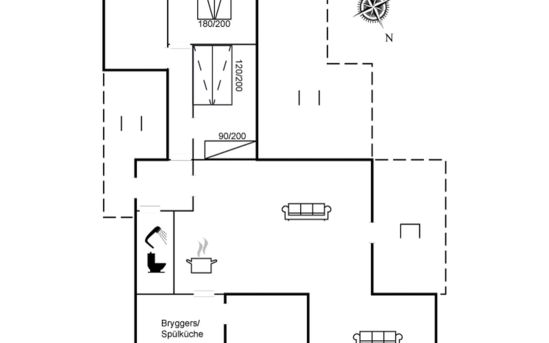 Einfamilienhaus, Baujahr 1973. 200 m vom Meer. Zur Alleinbenutzung: naturbelassenes Grundstück 2'600 m2. Terrasse (38 m2). Im Hause: Waschmaschine. Parkplatz beim Haus. Lebensmittelgeschäft 400 m.