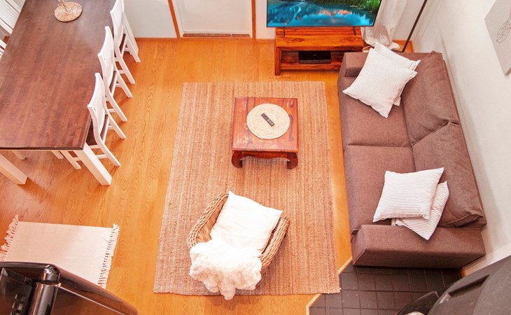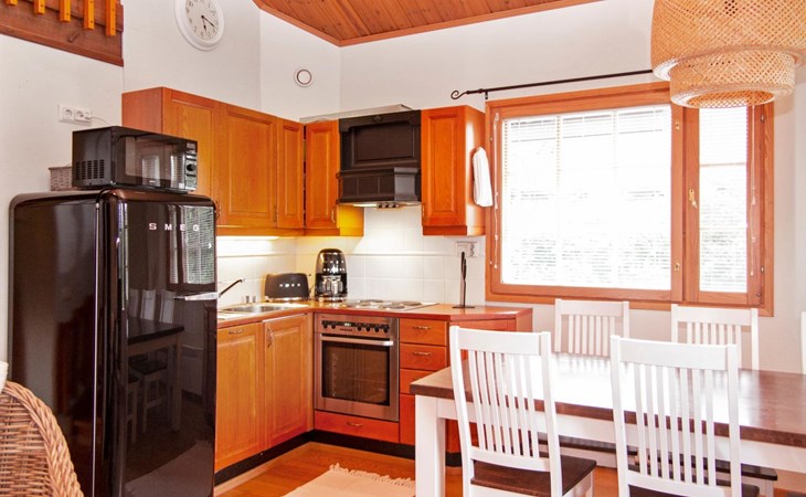This apartment is suitable for everyone; families, groups, active holidaymakers. In this semi-detached apartment you have downstairs a living room/kitchen, some kitchen appliances renovated on 2022, a bedroom with bouble bed, a washroom, a separate toilet, sauna (electric stove), a hall and a glazed terrace.