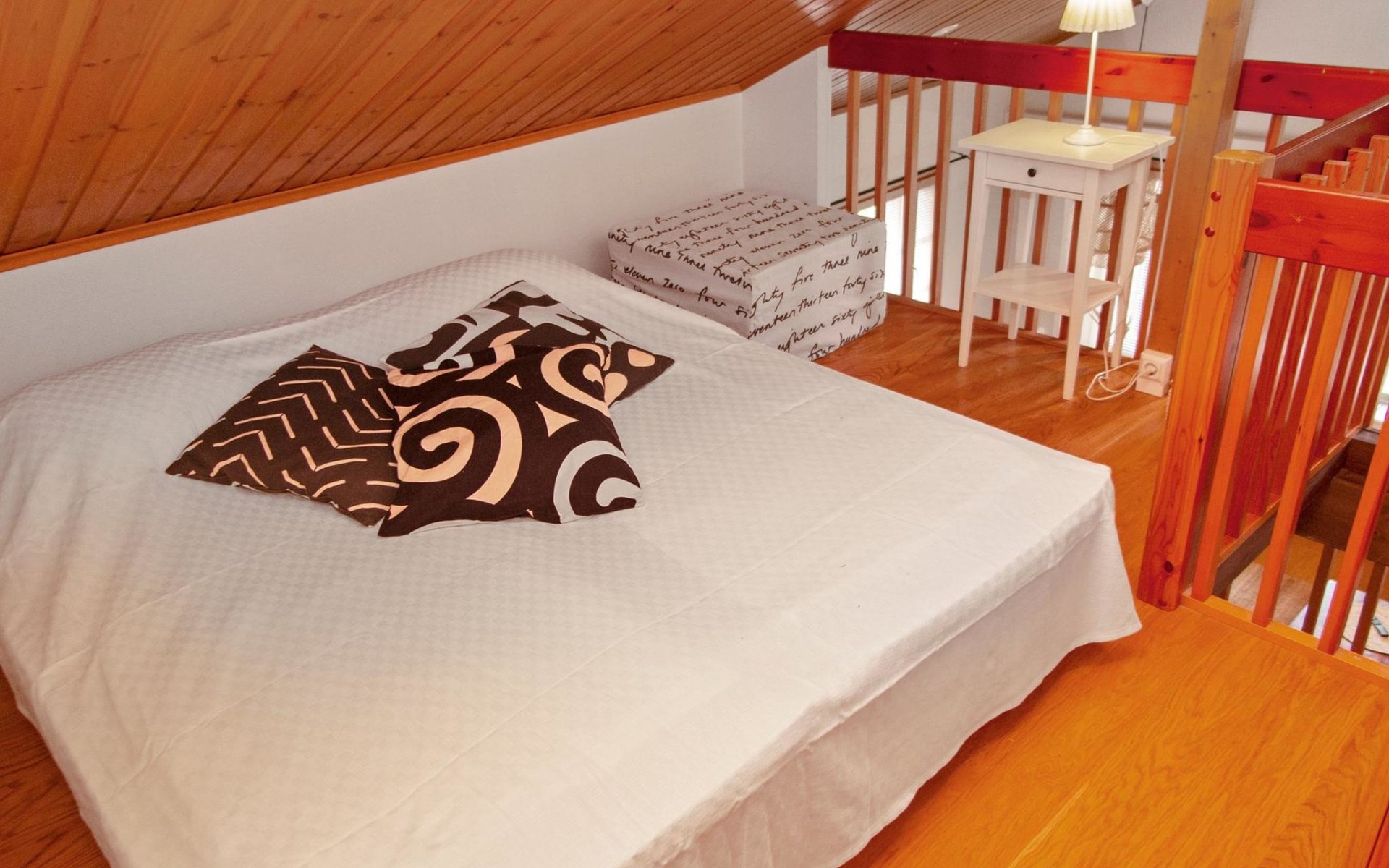 The loft has a bedroom with 2 beds and 2 beds in the lobby lof the loft. Safety gates on top and down stairs. There is an air source heat pump with cooling and warming functionality on the cabin.