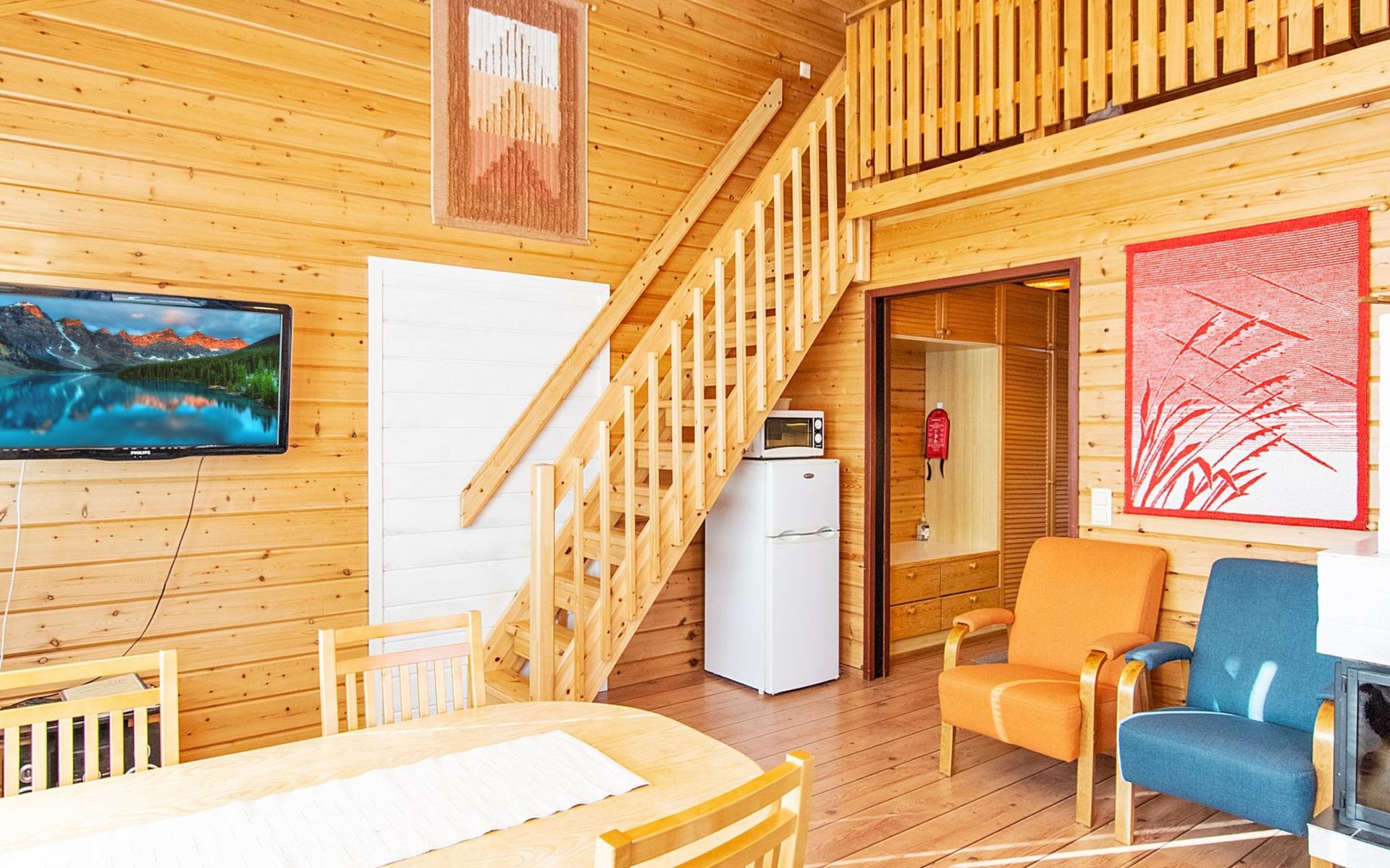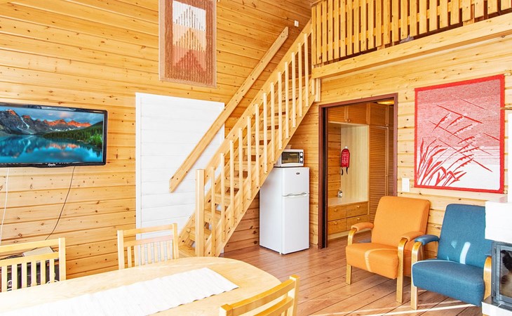 From the living room there is access to the loft with two sleeping lofts and a total of 4 beds.