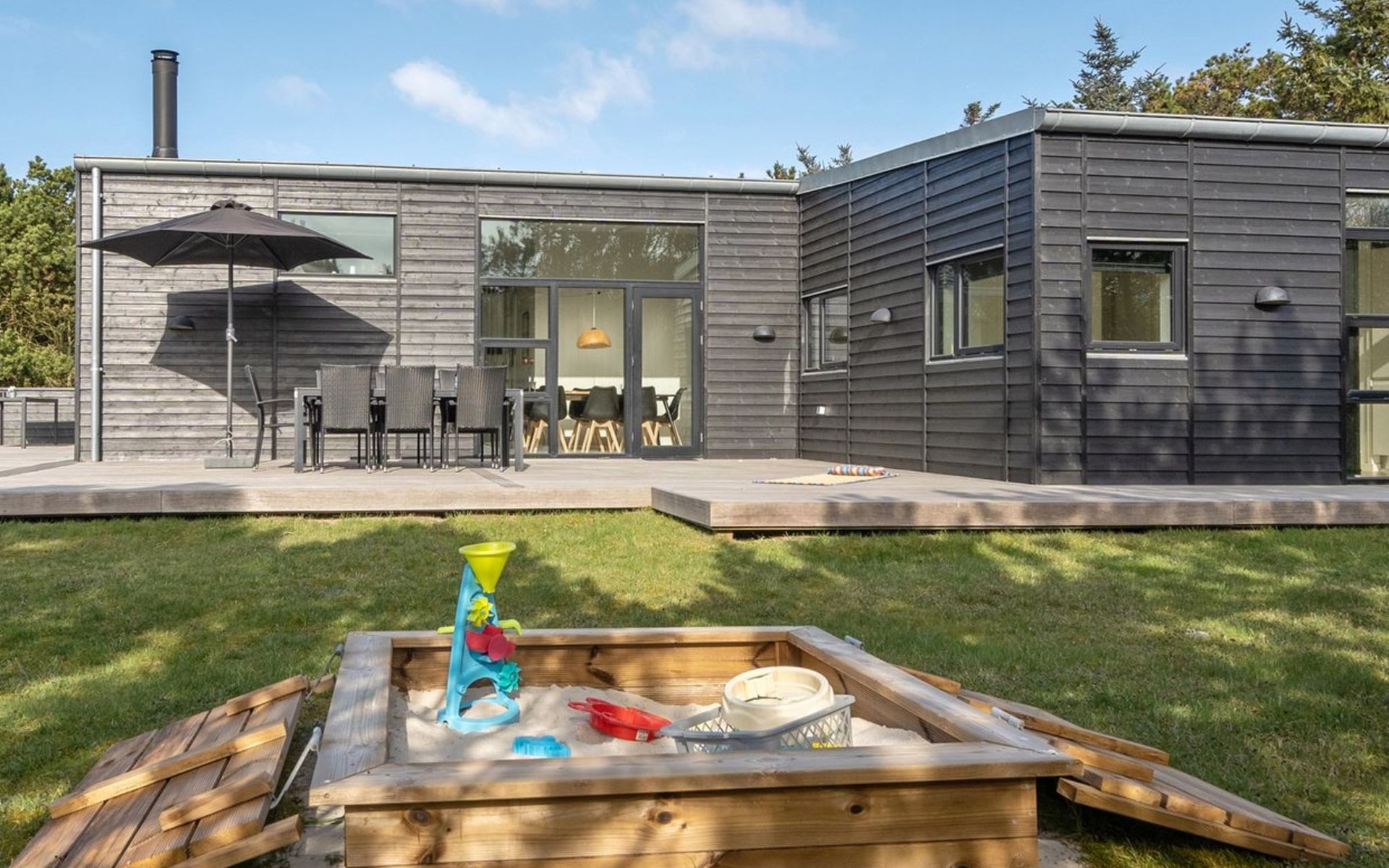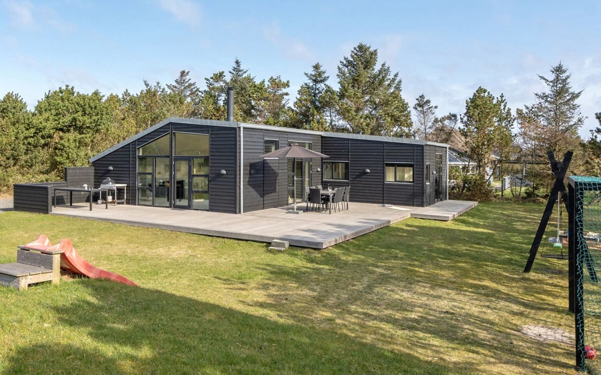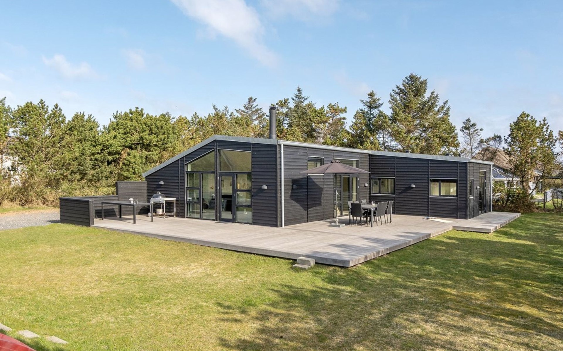 Einfamilienhaus, Baujahr 2014. 200 m vom Meer. Zur Alleinbenutzung: naturbelassenes Grundstück 2'100 m2. Aussendusche, Terrasse (100 m2), Kinderspielplatz (Schaukel). Im Hause: Waschmaschine, Wäschetrockner. Parkplatz beim Haus. Lebensmittelgeschäft 300 m. Der Besitzer akzeptiert keine Jugendgruppen.