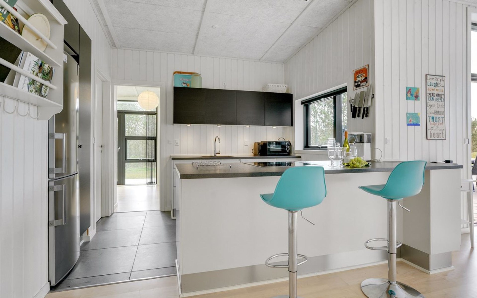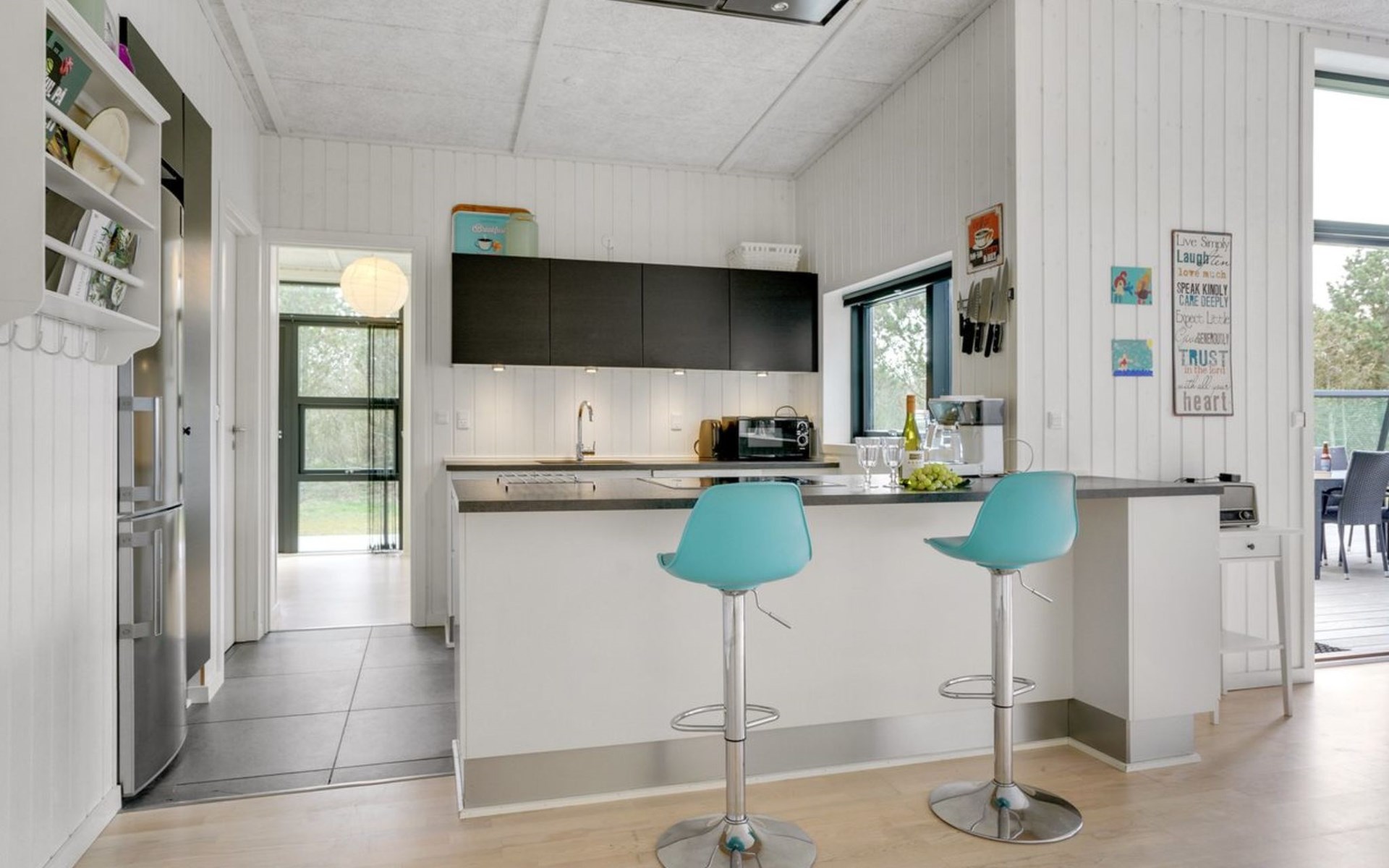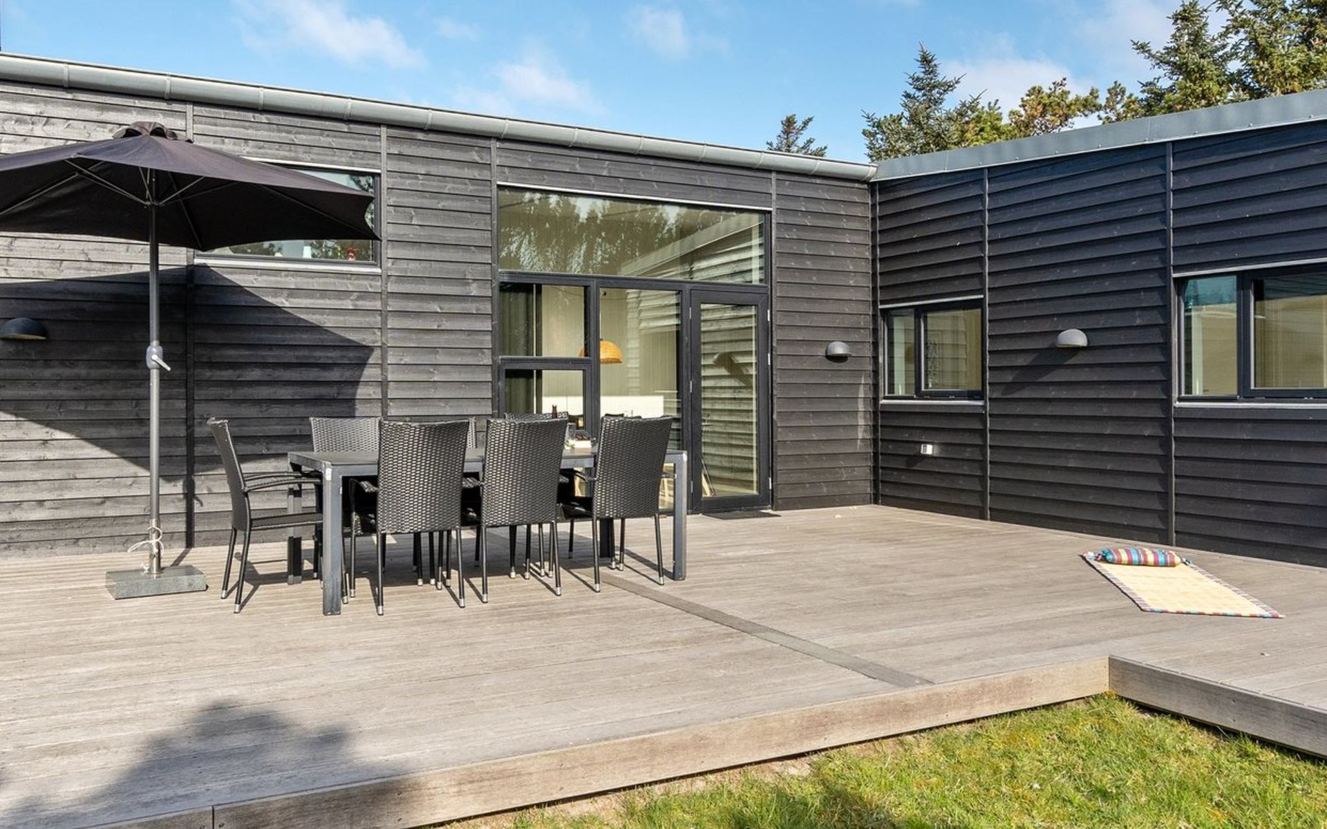 Einfamilienhaus, Baujahr 2014. 200 m vom Meer. Zur Alleinbenutzung: naturbelassenes Grundstück 2'100 m2. Aussendusche, Terrasse (100 m2), Kinderspielplatz (Schaukel). Im Hause: Waschmaschine, Wäschetrockner. Parkplatz beim Haus. Lebensmittelgeschäft 300 m. Der Besitzer akzeptiert keine Jugendgruppen.