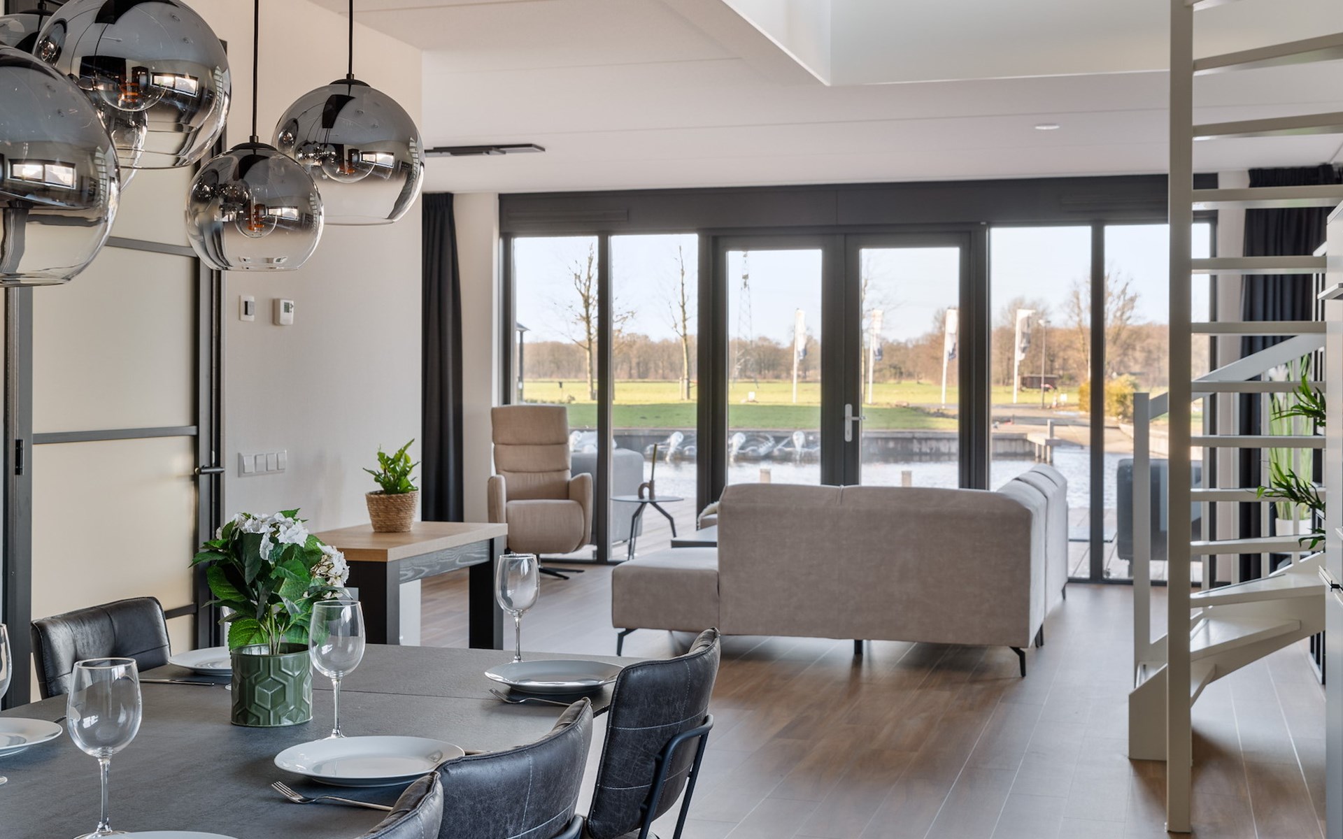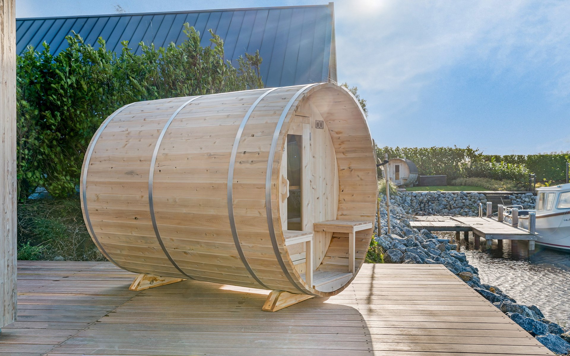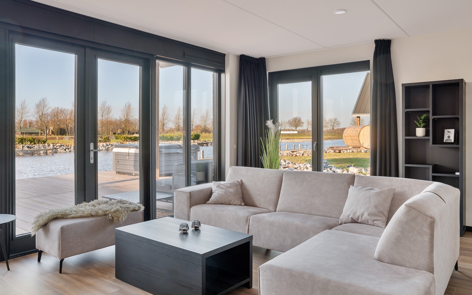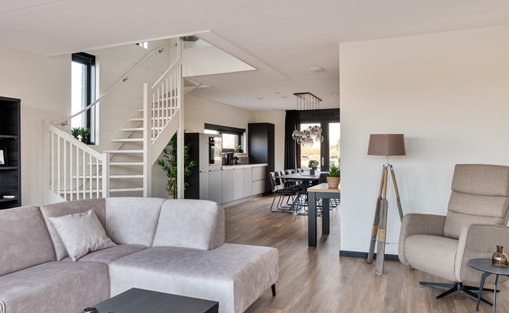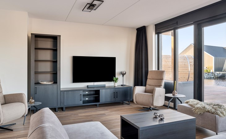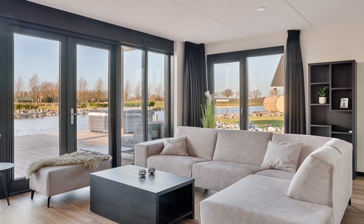 Die Watervilla Patrijs Wellness Plus 8 verfügt über eine möblierte Terrasse mit einer Essecke und einem Loungesofa auf der Vorder- und Rückseite. Auf der Terrasse befindet sich ein Whirlpool im Freien und eine traditionelle Sauna. Im Sommer stehen 2 Sonnenliegen zur Verfügung. Die Villa grenzt auf der Rückseite an den Innenhafen. Hier finden Sie auch einen eigenen Anlegesteg, an dem Sie Ihr (gemietetes) Boot festmachen oder angeln können.