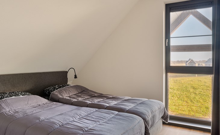 Im Erdgeschoss finden befindet sich 1 Schlafzimmer mit 2 Einzel-Boxspringbetten und ein En-Suite-Badezimmer mit einer begehbaren Dusche, Waschbecken und Toilette. Außerdem gibt es eine separate Toilette im Erdgeschoss.