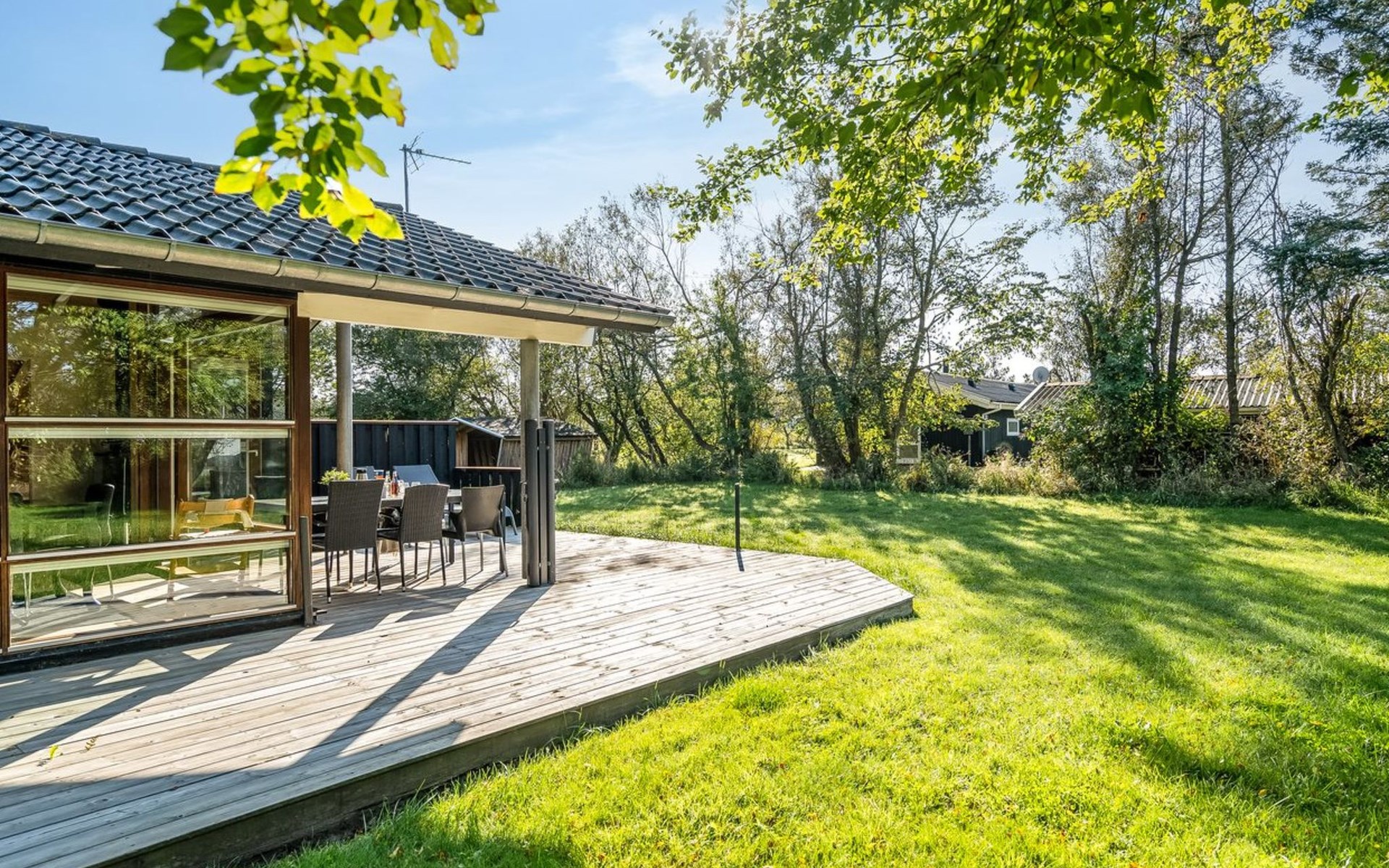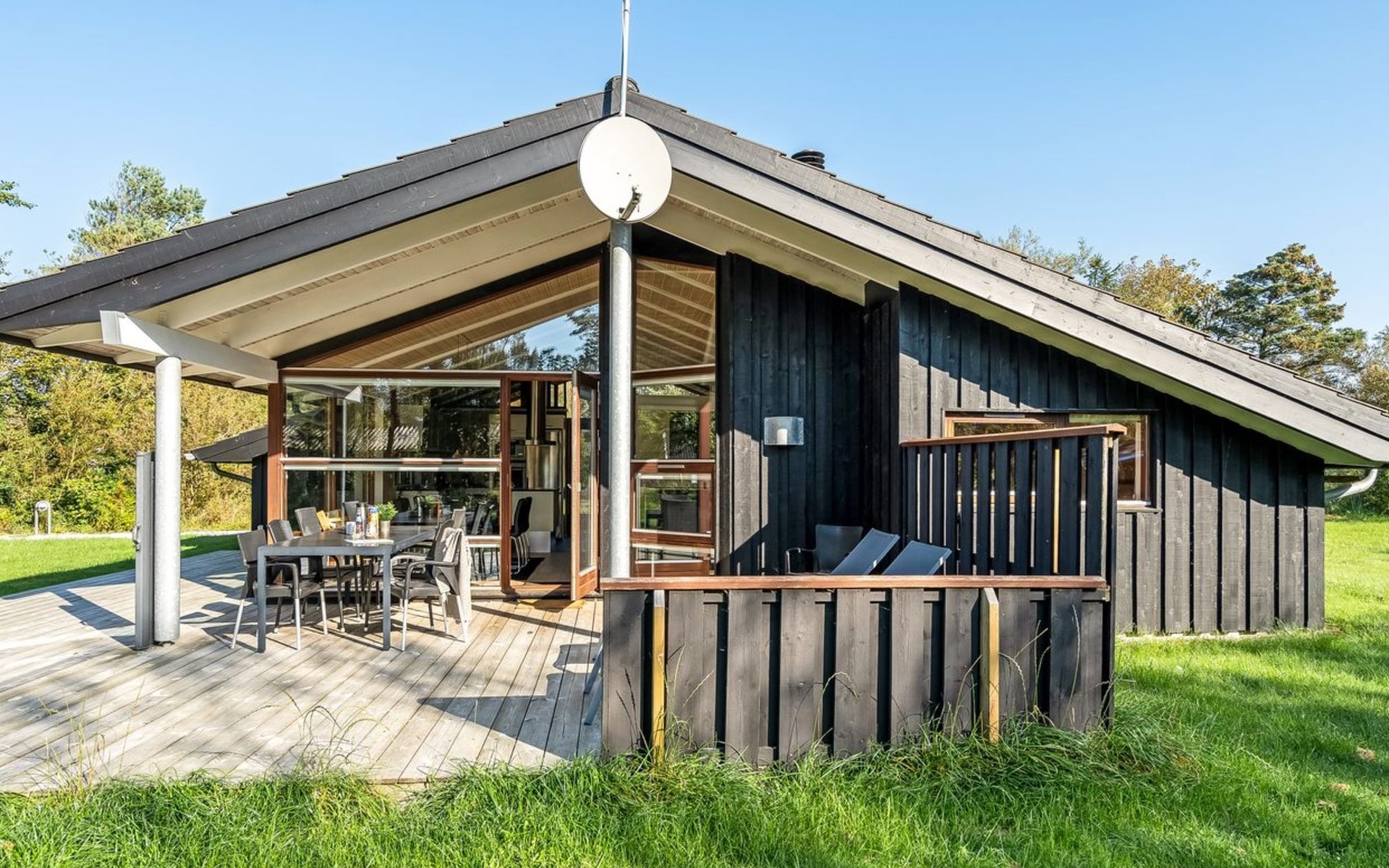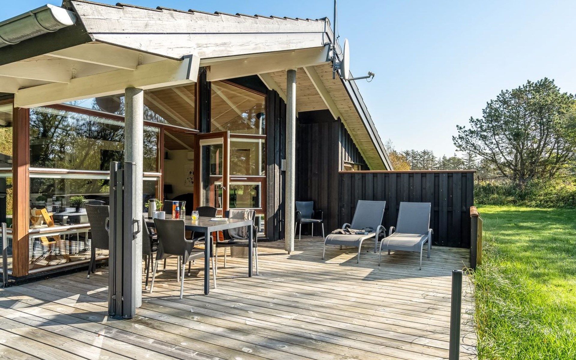 Einfamilienhaus, Baujahr 2007. 1.5 km vom Meer. Zur Alleinbenutzung: naturbelassenes Grundstück 1'383 m2. Grill. Im Hause: Sauna, Waschmaschine, Wäschetrockner. Parkplatz beim Haus. E-Ladestation. Lebensmittelgeschäft 500 m. Der Besitzer akzeptiert keine Jugendgruppen.