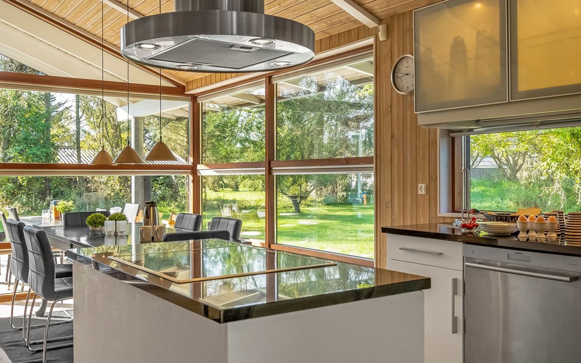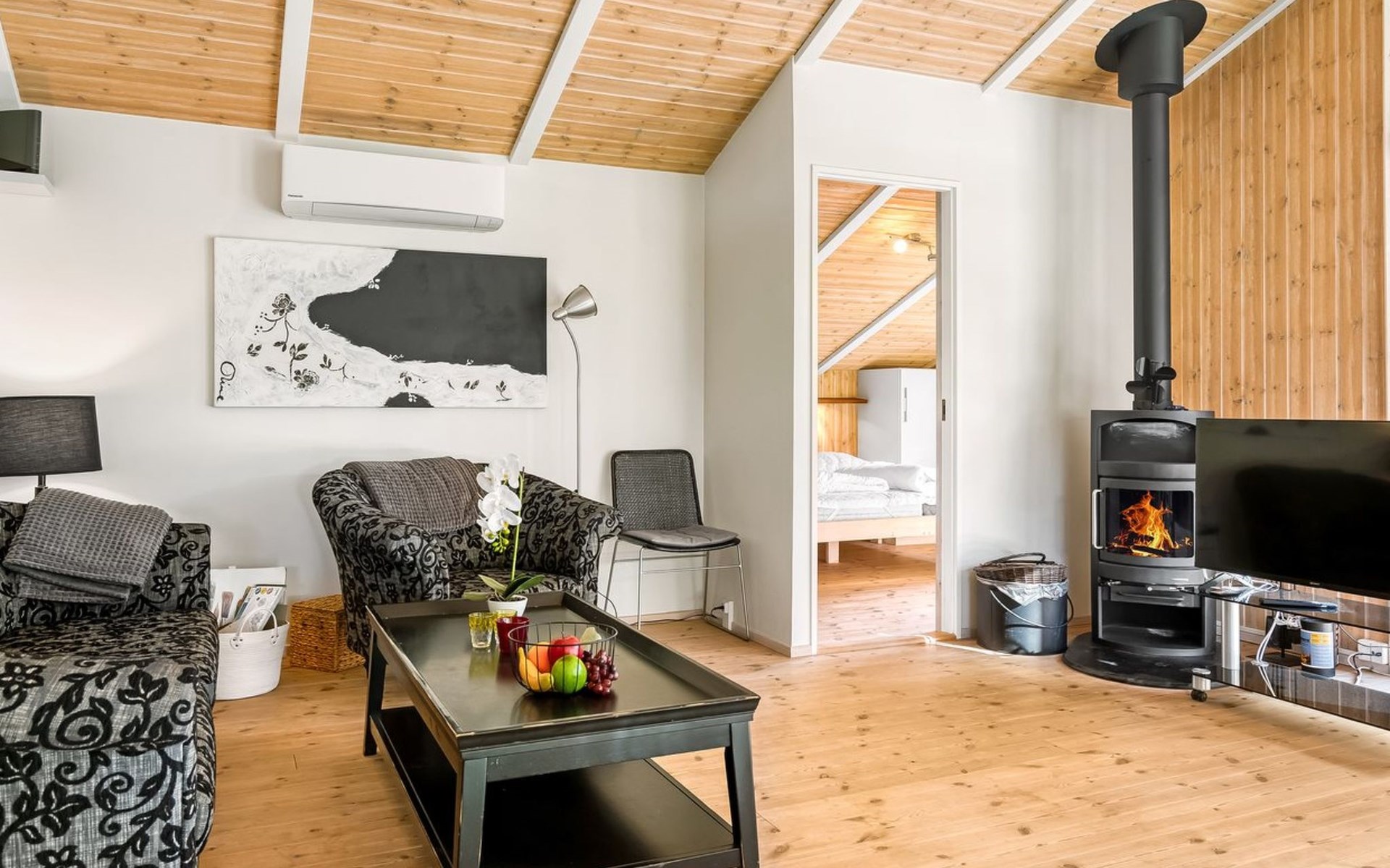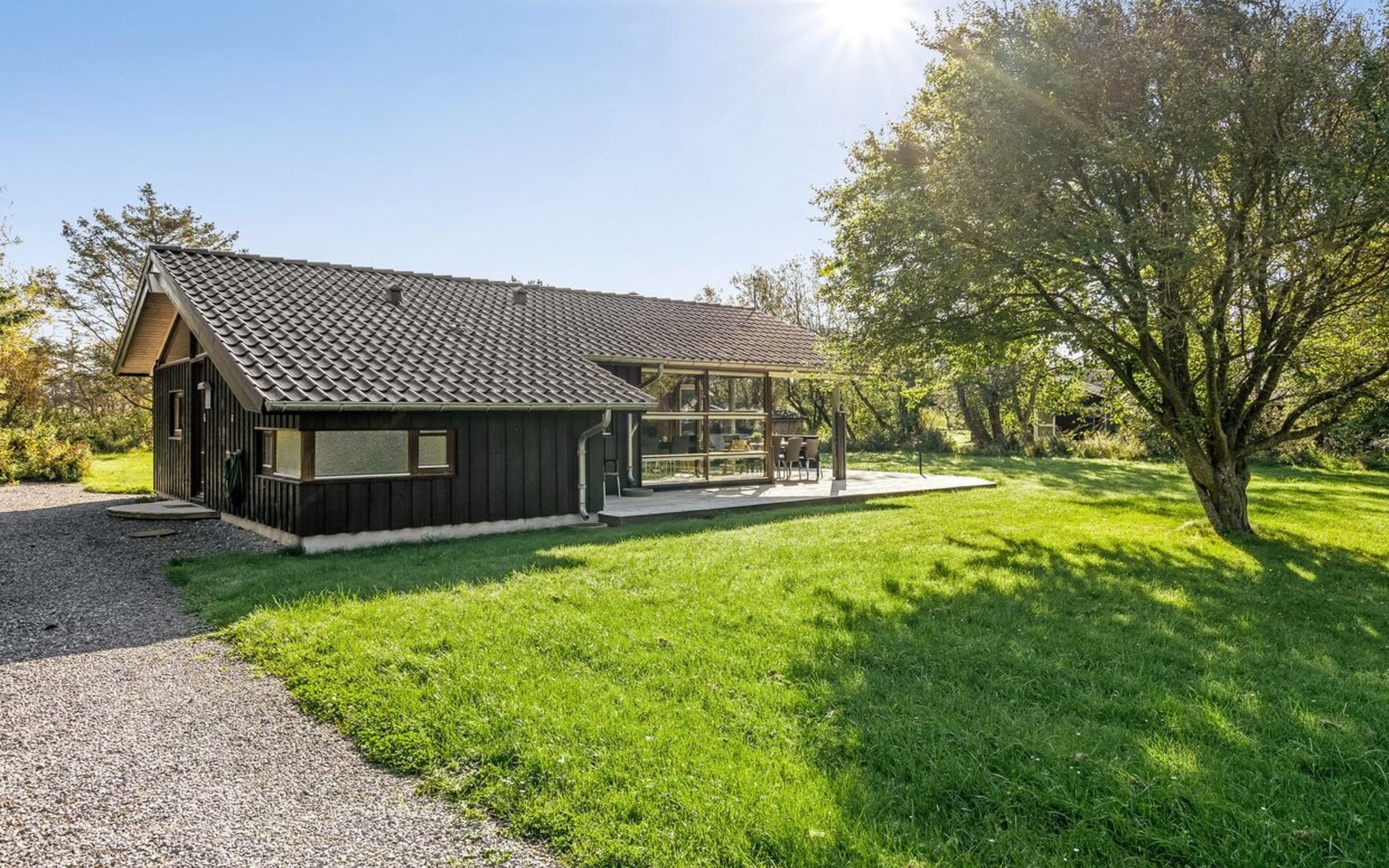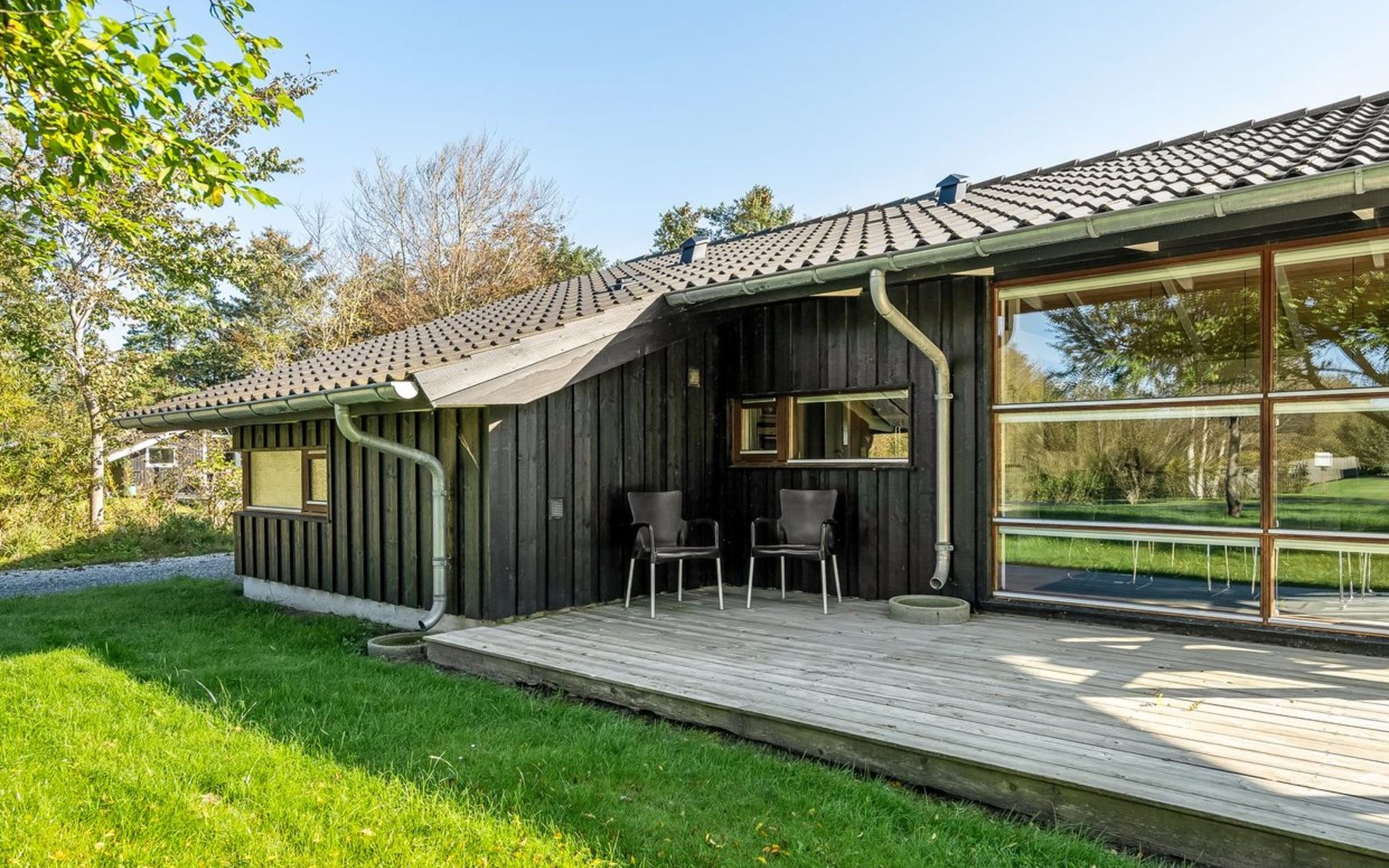 Einfamilienhaus, Baujahr 2007. 1.5 km vom Meer. Zur Alleinbenutzung: naturbelassenes Grundstück 1'383 m2. Grill. Im Hause: Sauna, Waschmaschine, Wäschetrockner. Parkplatz beim Haus. E-Ladestation. Lebensmittelgeschäft 500 m. Der Besitzer akzeptiert keine Jugendgruppen.