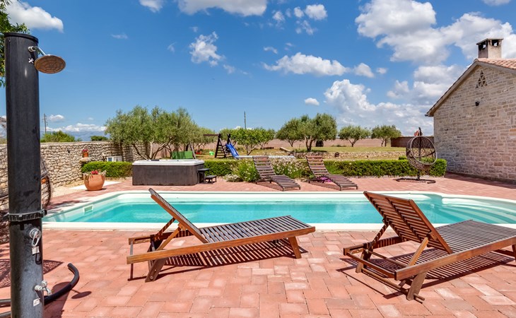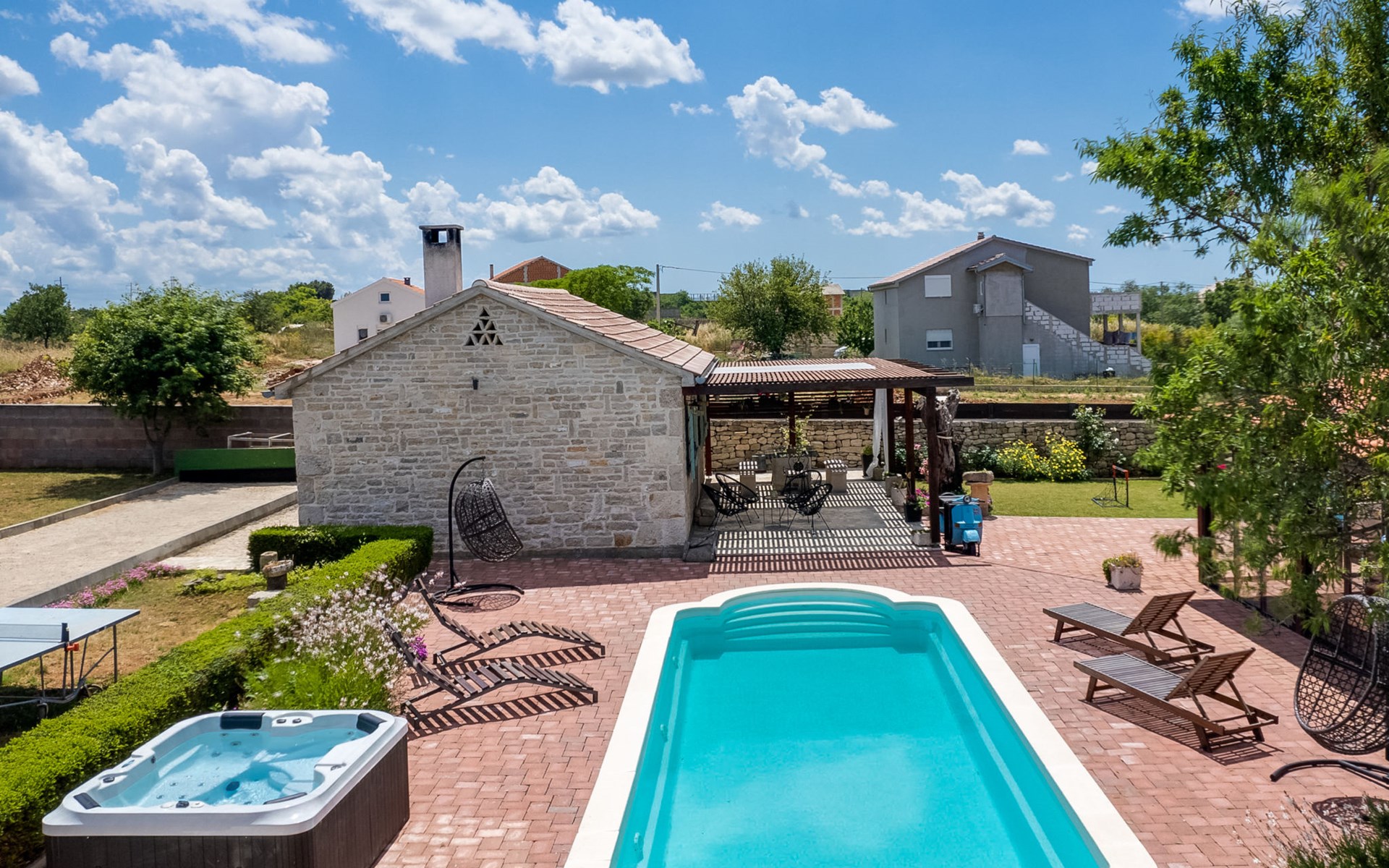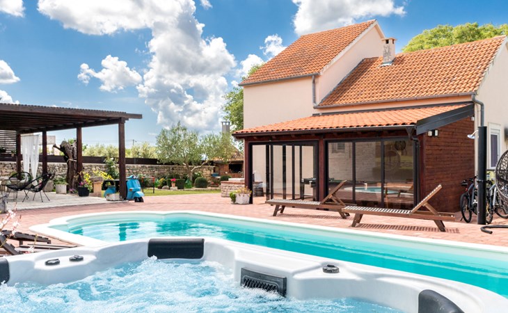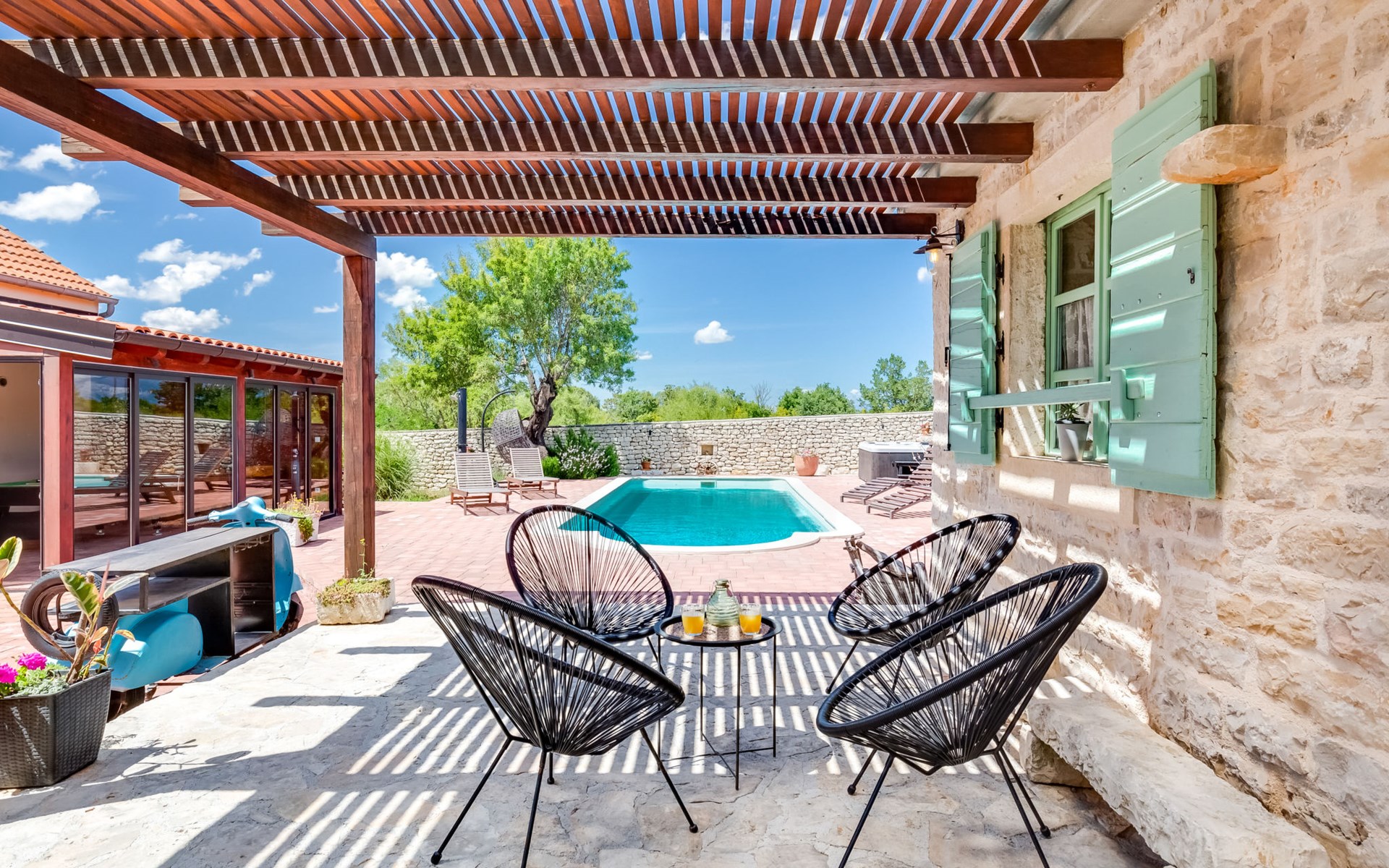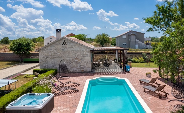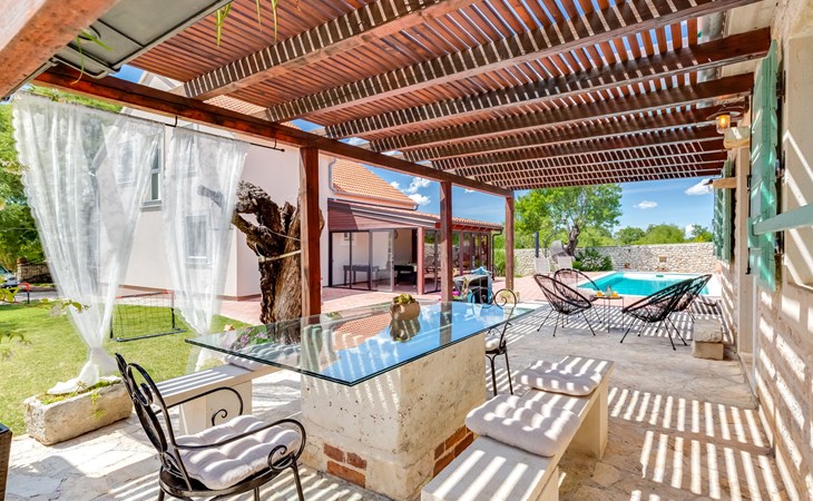 Zemunik Gornji 15 km von Sukošan: Schöne Villa "Josip & Mia", auf 2 Stockwerken. 4 km vom Zentrum von Zemunik Donji, ruhige, sonnige Lage, 15 km vom Meer, 15 km vom Strand. Zur Alleinbenutzung: Grundstück 1'000 m2 (eingezäunt), Schwimmbad eckig (8 x 4 m, 150 cm tief, saisonale Verfügbarkeit: 01.Mai. - 30.Sep.) mit Innentreppe. Aussendusche, Sprudelbad, Pergola, Terrasse (40 m2), Gartenmöbel, Grill. Im Hause: Internetzugang, Waschmaschine. Parkplatz (für 3 Autos) beim Haus auf dem Grundstück. Einkaufsgeschäft 1.5 km, Restaurant 15 km, Bushaltestelle 8.4 km, Kieselstrand 15 km. Nahe gelegene Sehenswürdigkeiten: NP Krka 45 km. Bitte beachten: geeignet für Familien. Der Besitzer akzeptiert keine Jugendgruppen.