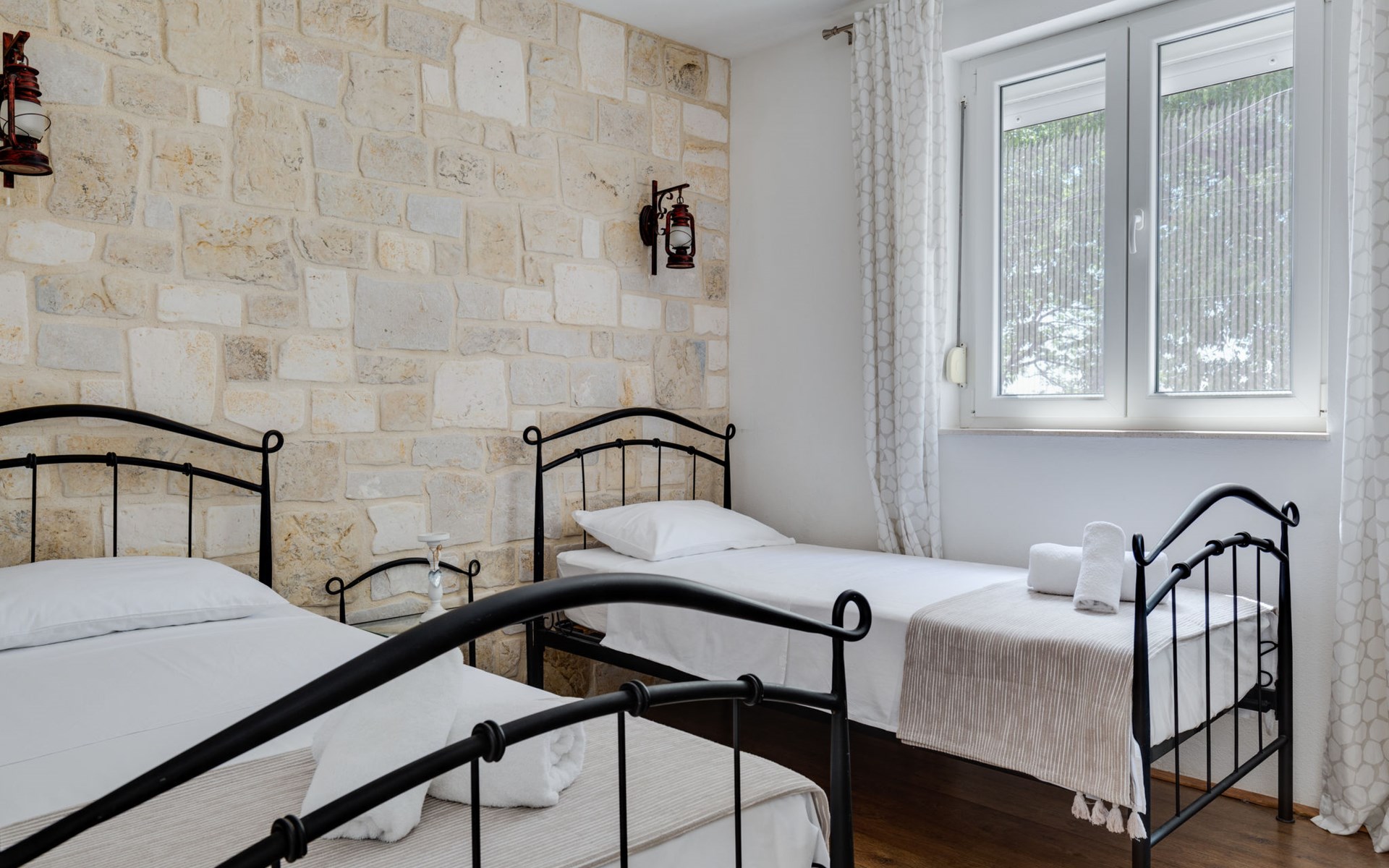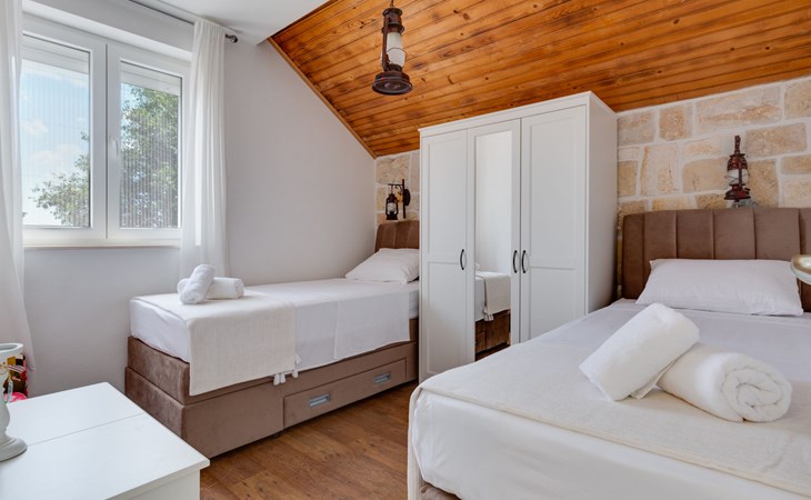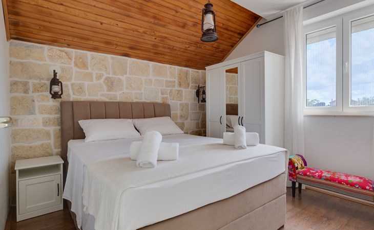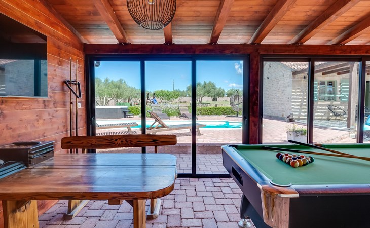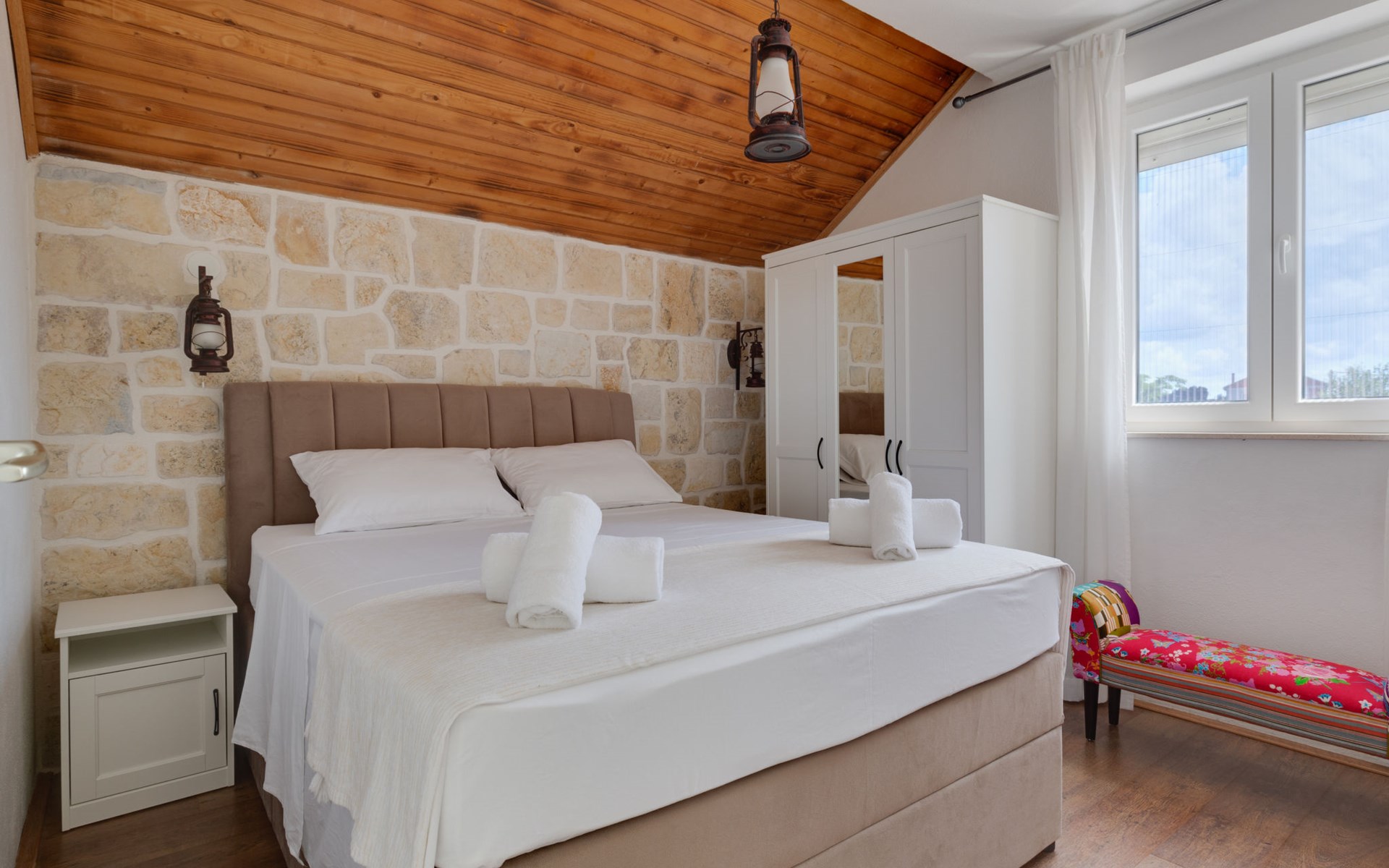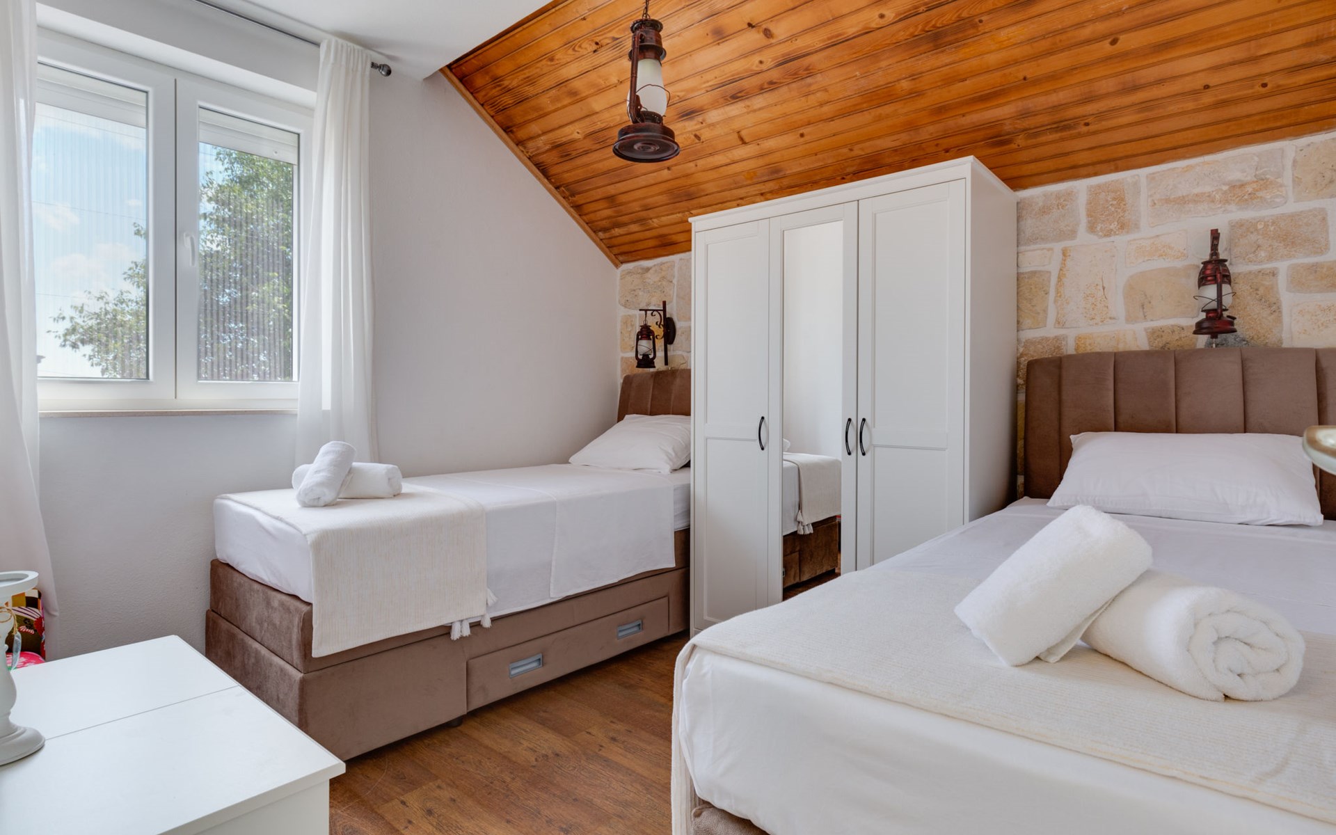 Zemunik Gornji 15 km von Sukošan: Schöne Villa "Josip & Mia", auf 2 Stockwerken. 4 km vom Zentrum von Zemunik Donji, ruhige, sonnige Lage, 15 km vom Meer, 15 km vom Strand. Zur Alleinbenutzung: Grundstück 1'000 m2 (eingezäunt), Schwimmbad eckig (8 x 4 m, 150 cm tief, saisonale Verfügbarkeit: 01.Mai. - 30.Sep.) mit Innentreppe. Aussendusche, Sprudelbad, Pergola, Terrasse (40 m2), Gartenmöbel, Grill. Im Hause: Internetzugang, Waschmaschine. Parkplatz (für 3 Autos) beim Haus auf dem Grundstück. Einkaufsgeschäft 1.5 km, Restaurant 15 km, Bushaltestelle 8.4 km, Kieselstrand 15 km. Nahe gelegene Sehenswürdigkeiten: NP Krka 45 km. Bitte beachten: geeignet für Familien. Der Besitzer akzeptiert keine Jugendgruppen.