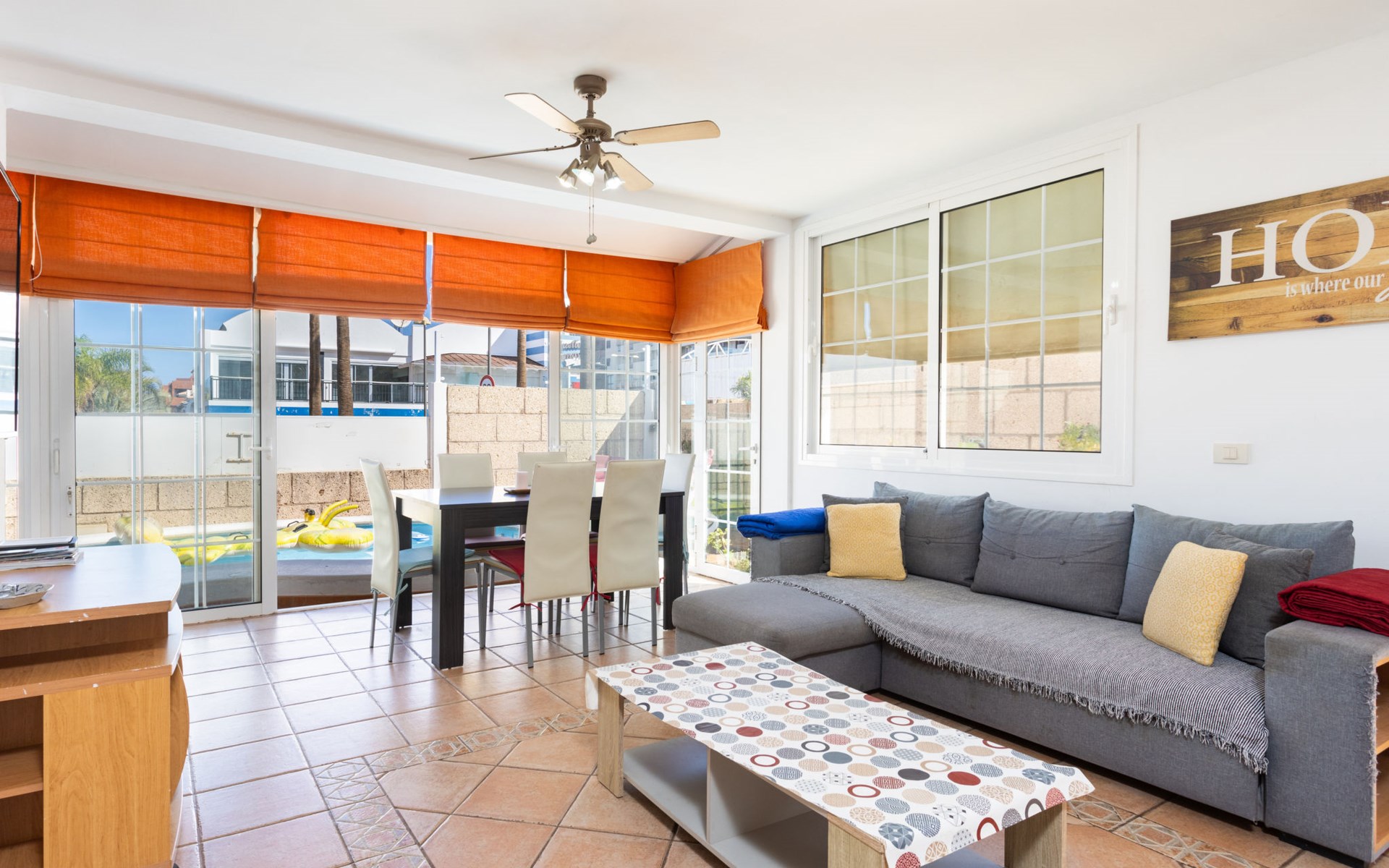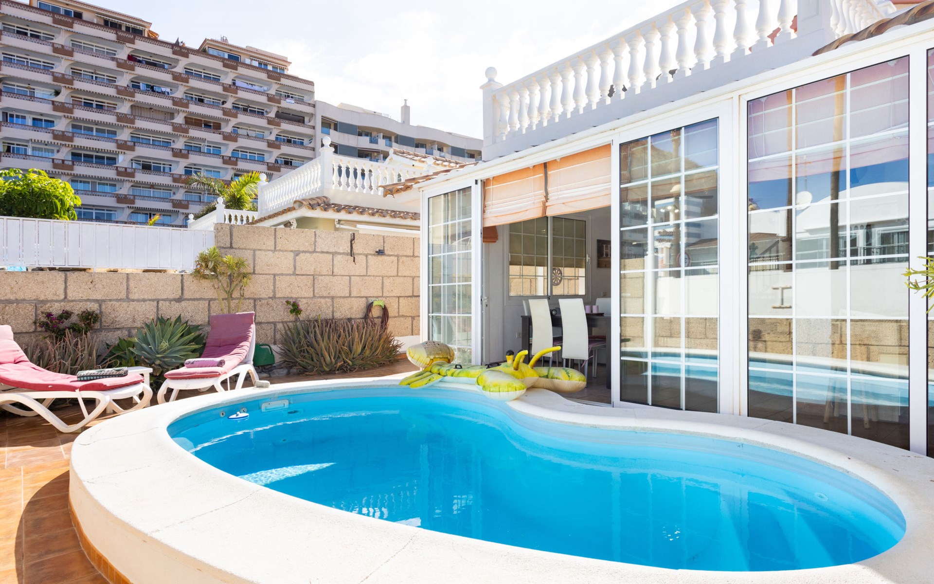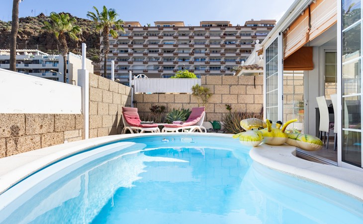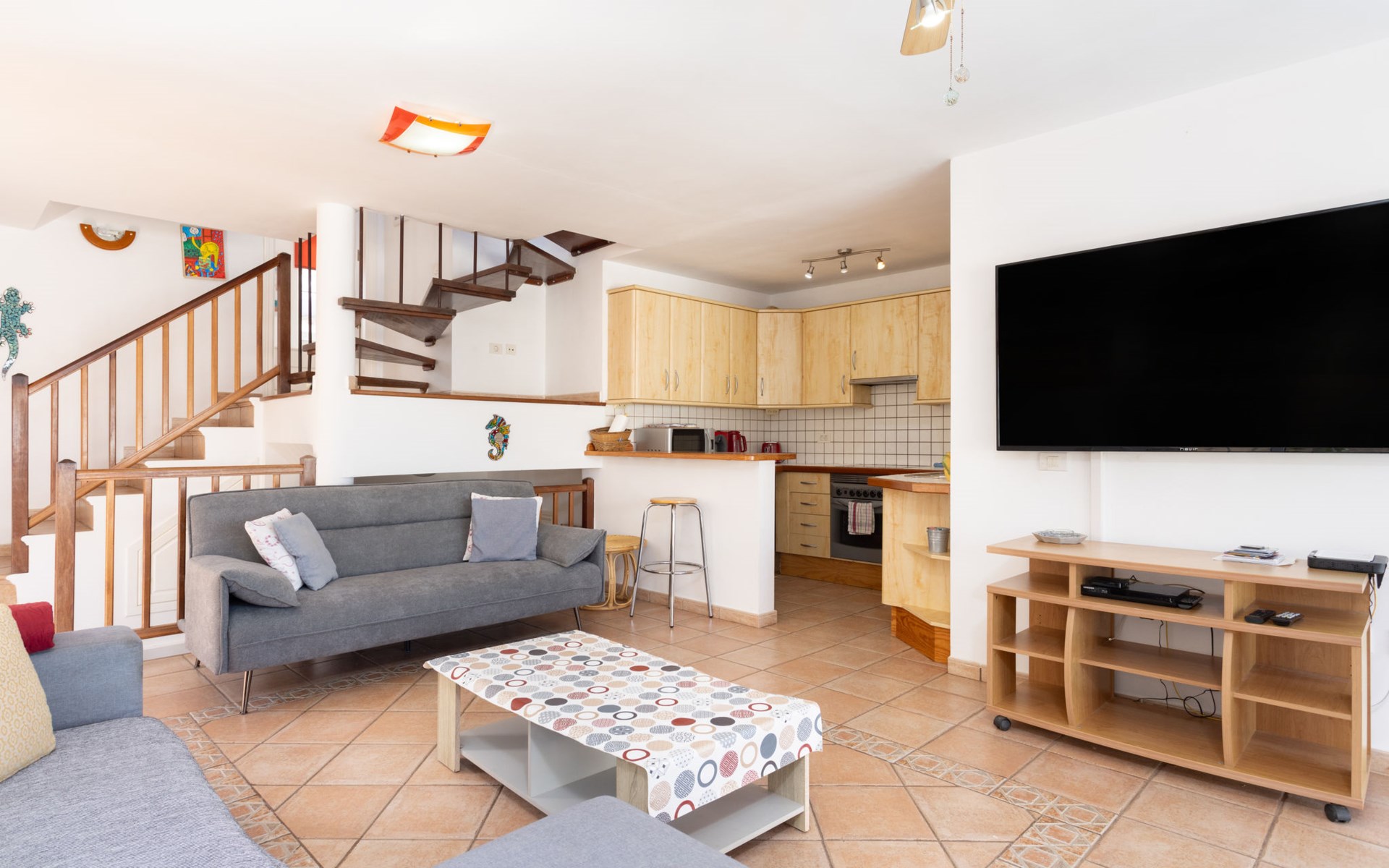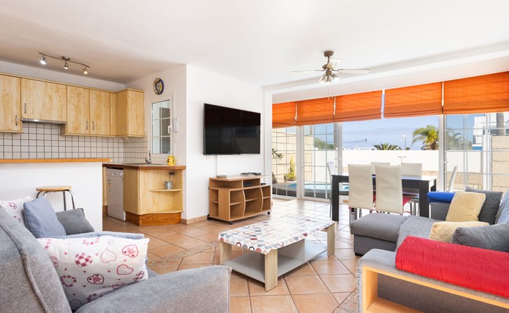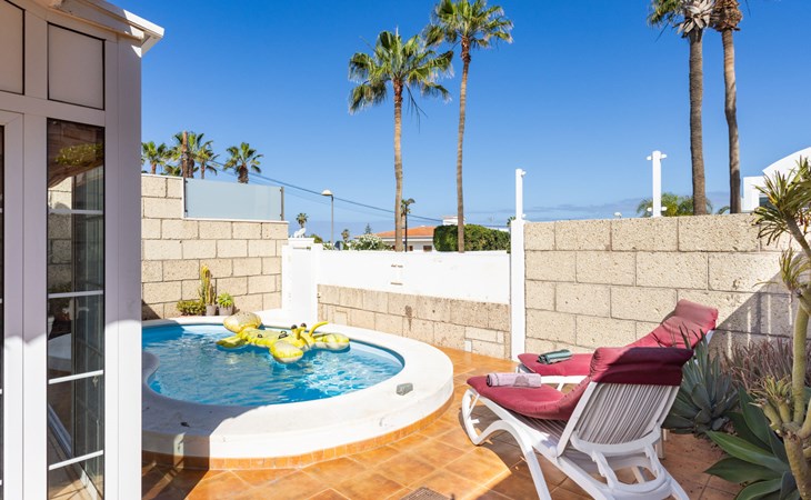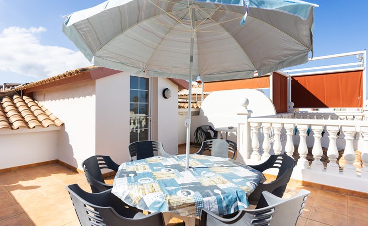 Gemütliches Reihenhaus "Carolina". 300 m vom Meer, an einer Hauptstrasse. Zur Alleinbenutzung: Grundstück 150 m2, Schwimmbad nierenförmig (4 x 3 m, saisonale Verfügbarkeit: 01.Jan. - 31.Dez.). Öffentliche Parkplätze. Einkaufsgeschäft, Supermarkt, Restaurant 50 m, Bushaltestelle 50 m, Steinstrand 300 m. Golfplatz (9 Loch) 3.8 km, Tennis 3 km.