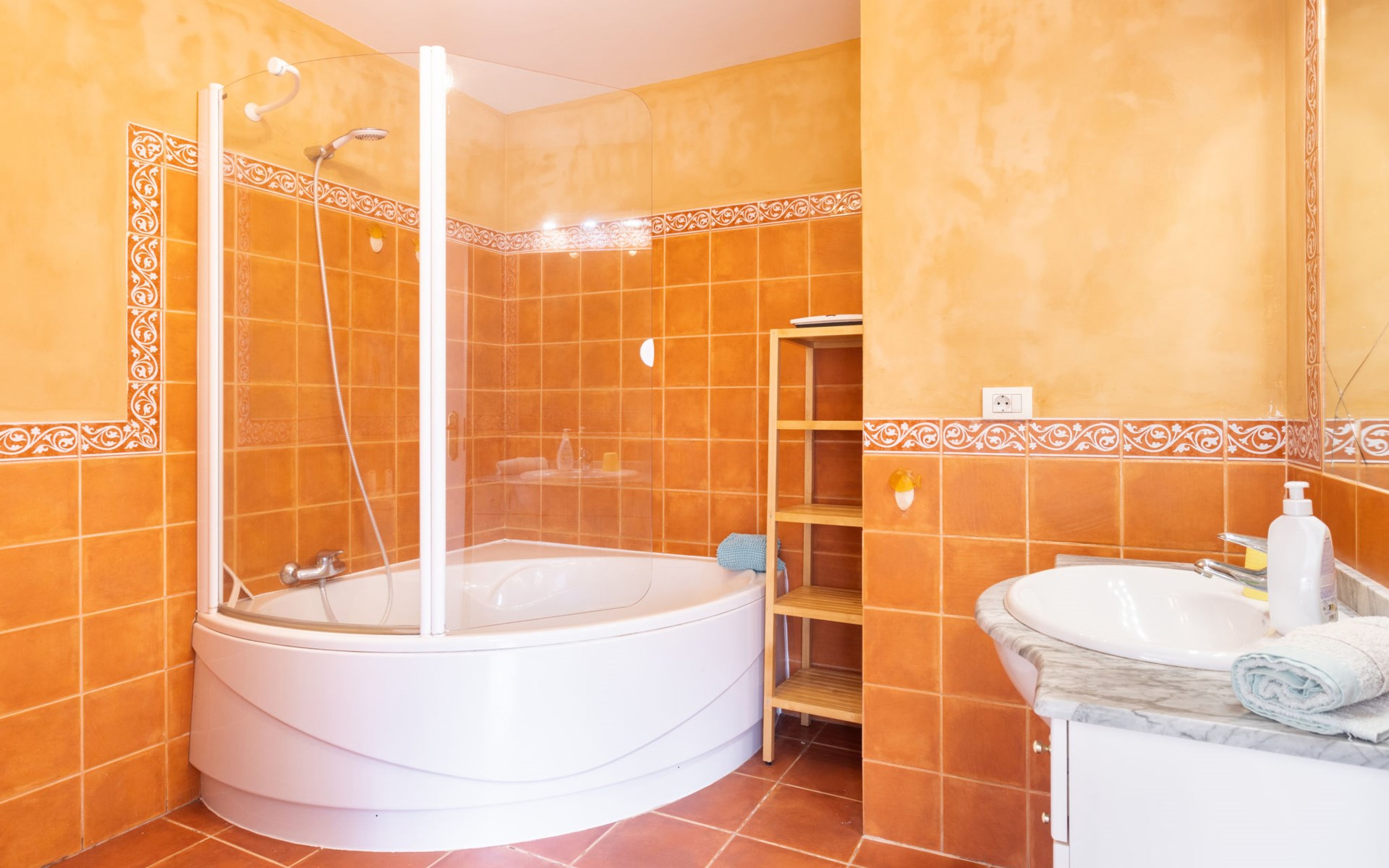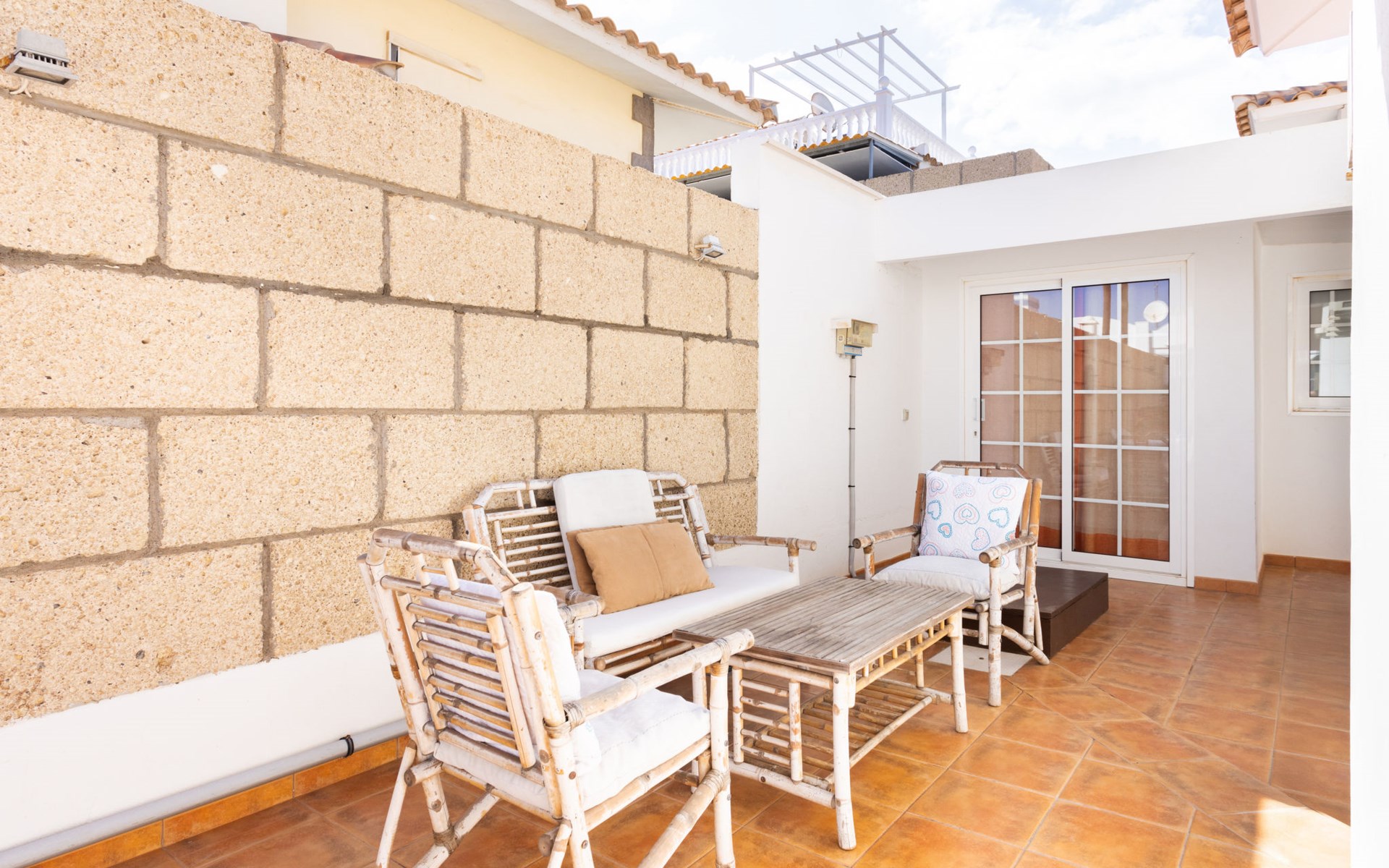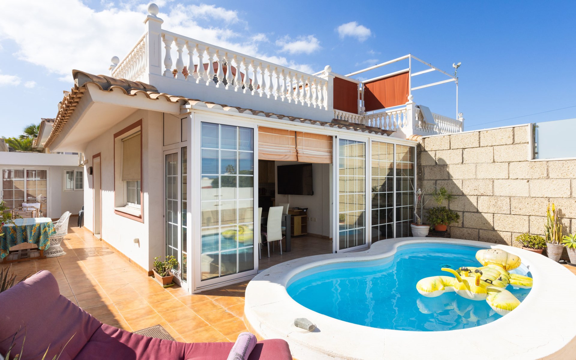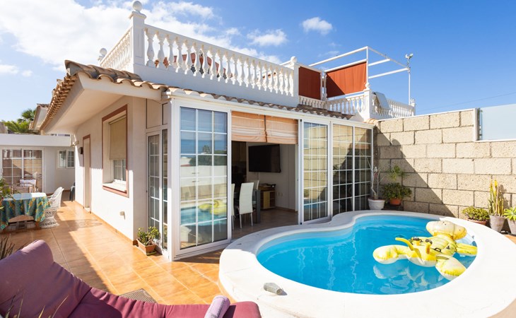Gemütliches Reihenhaus "Carolina". 300 m vom Meer, an einer Hauptstrasse. Zur Alleinbenutzung: Grundstück 150 m2, Schwimmbad nierenförmig (4 x 3 m, saisonale Verfügbarkeit: 01.Jan. - 31.Dez.). Öffentliche Parkplätze. Einkaufsgeschäft, Supermarkt, Restaurant 50 m, Bushaltestelle 50 m, Steinstrand 300 m. Golfplatz (9 Loch) 3.8 km, Tennis 3 km.