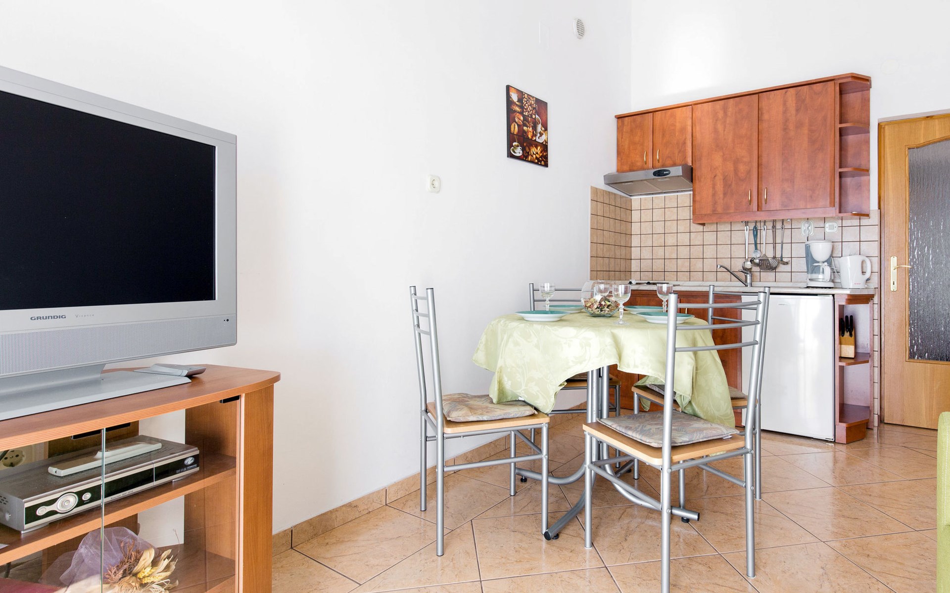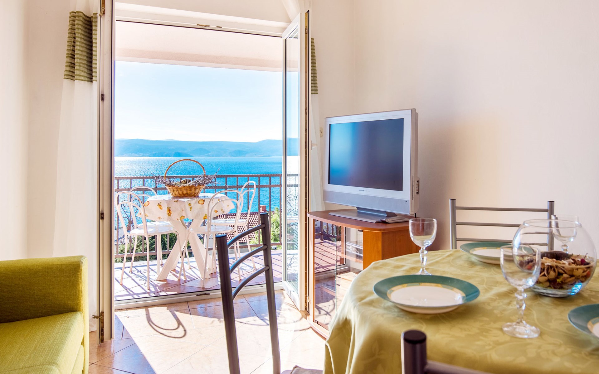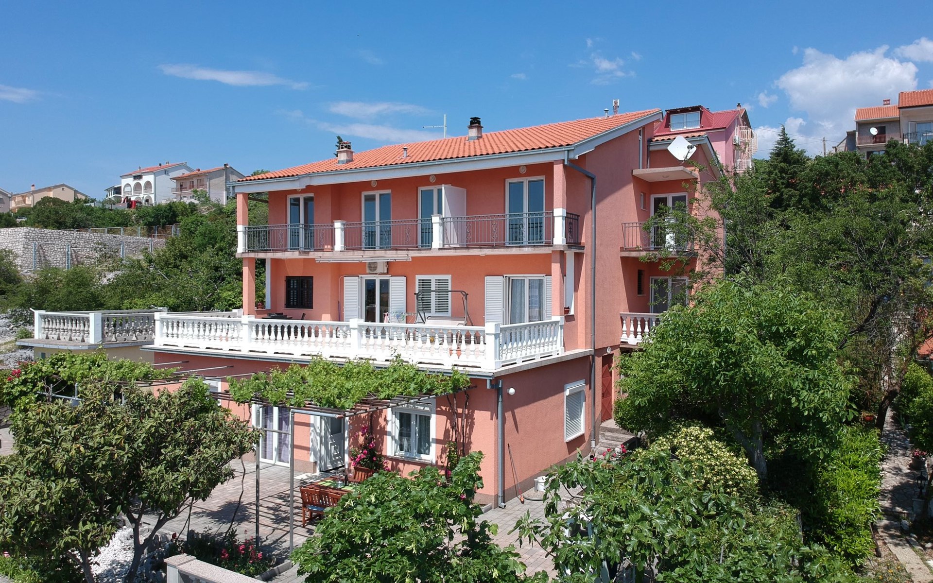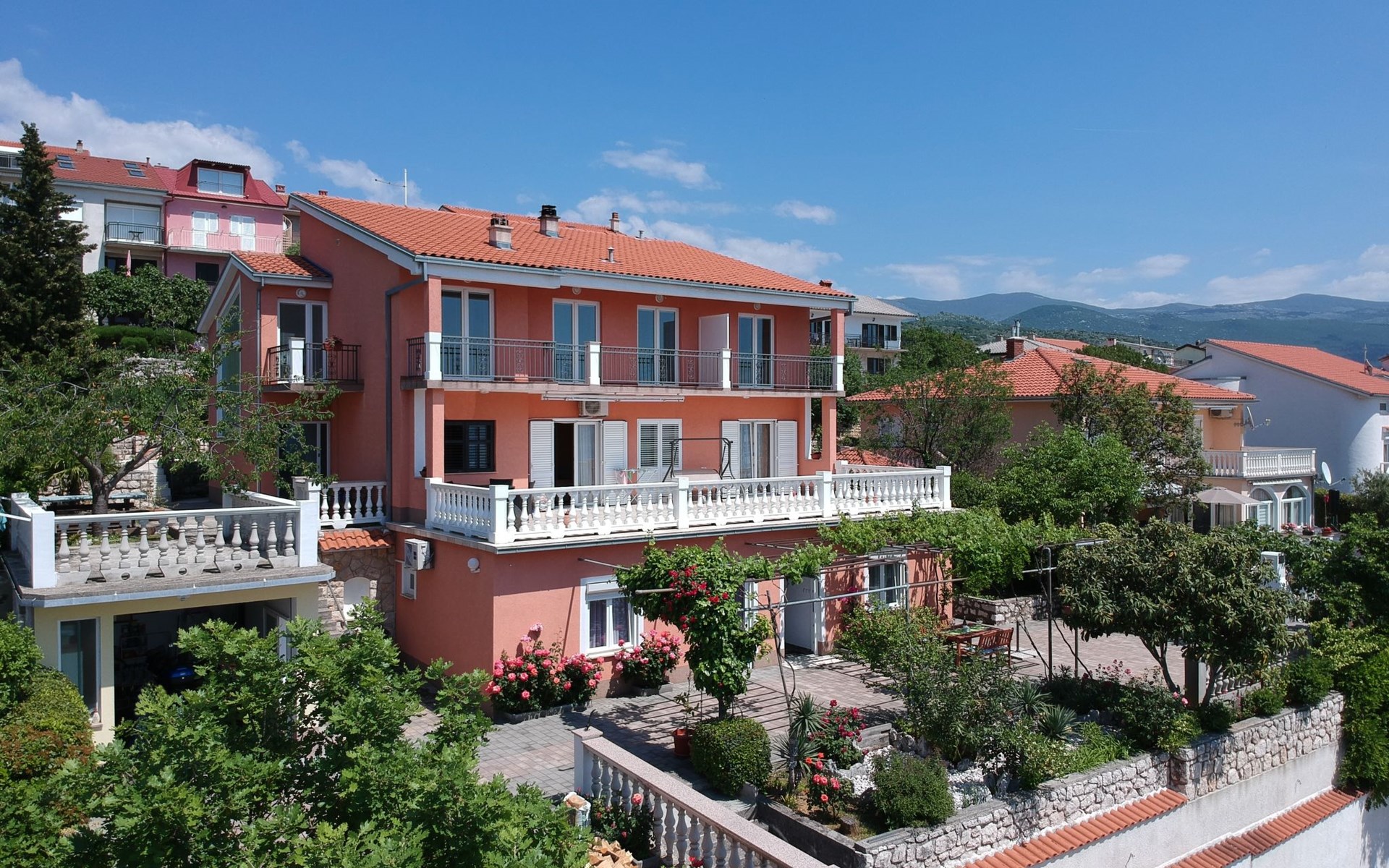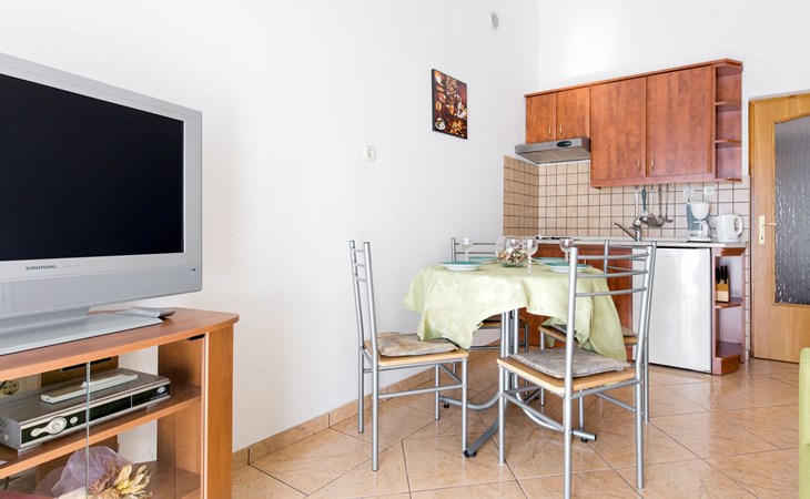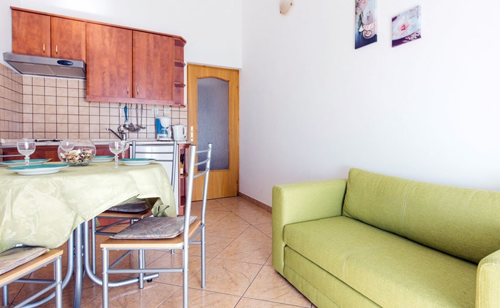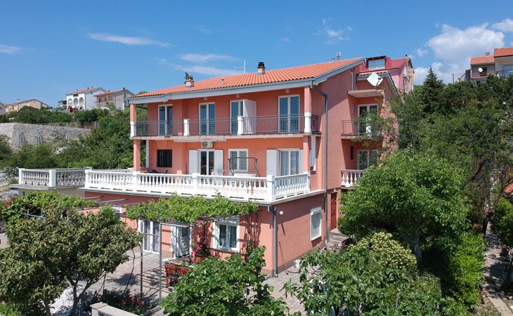 Mehrfamilienhaus "Valentina". 500 m vom Zentrum von Novi Vinodolski, 12 km vom Zentrum von Crikvenica, 20 km vom Zentrum von Jadranovo, 500 m vom Meer, 500 m vom Strand. Zur Mitbenutzung: Grundstück 1'000 m2 (eingezäunt), gepflegter terrassierter Garten. Im Hause: Internetzugang. Parkplatz beim Haus auf dem Grundstück. Einkaufsgeschäft 200 m, Supermarkt 500 m, Bushaltestelle 950 m, Felsstrand 500 m. Jacht-Hafen 500 m. Bitte beachten: Flugplatz 30 km vom Haus.