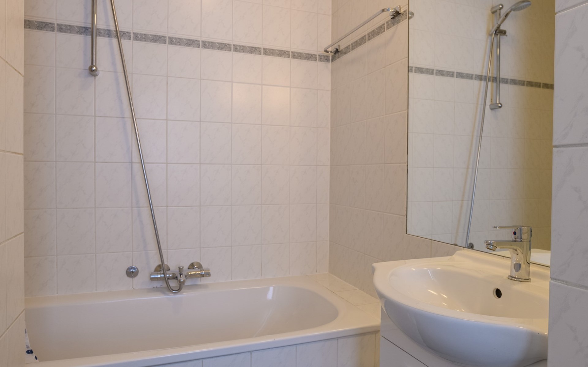 Es gibt 2 Badezimmer im Erdgeschoss. Eines der Badezimmer hat eine Dusche und ein Waschbecken. Das andere Badezimmer hat eine Badewanne und ein Waschbecken. Es gibt auch 2 separate Toiletten.