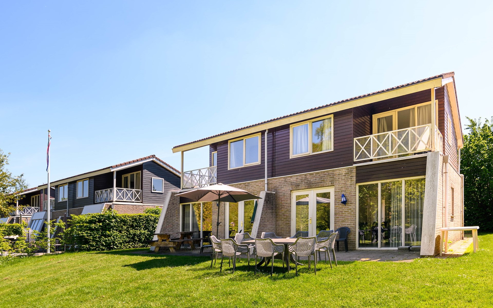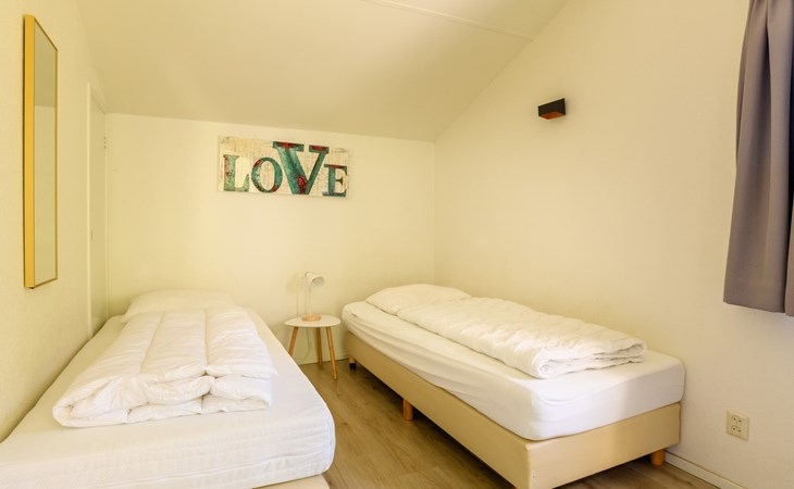 Der freistehende Bungalow Comfort 12 im Summio Vakantiepark Emslandermeer ist für bis zu 12 Personen geeignet. Dieser komfortable Bungalow besteht aus 2 Etagen und verfügt über 6 Schlafzimmer und 2 Badezimmer.