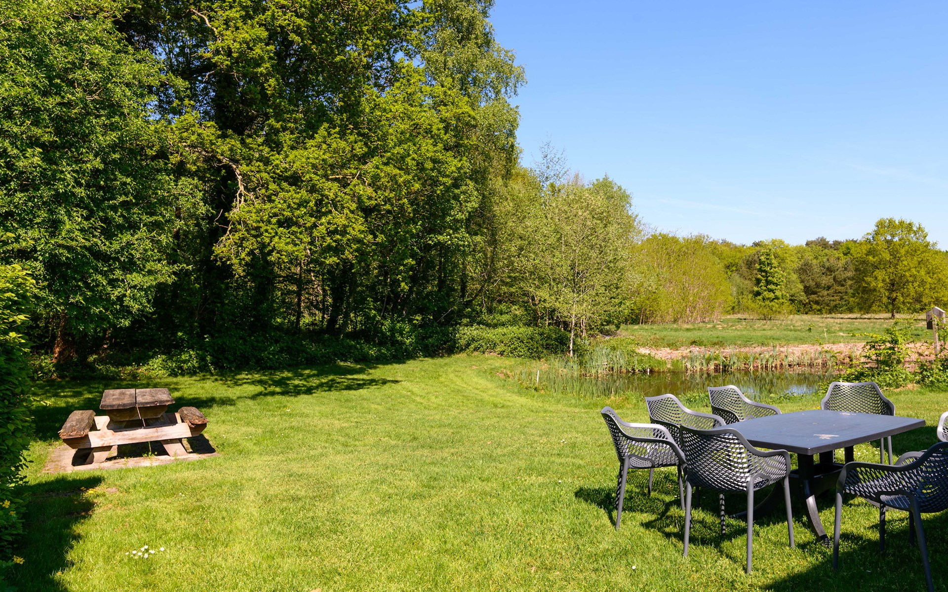 Draußen gibt es einen Garten mit einer möblierten Terrasse und einem Sonnenschirm. Der Bungalow hat einen Schuppen mit einer Ladestation für Ihr Elektrofahrrad.