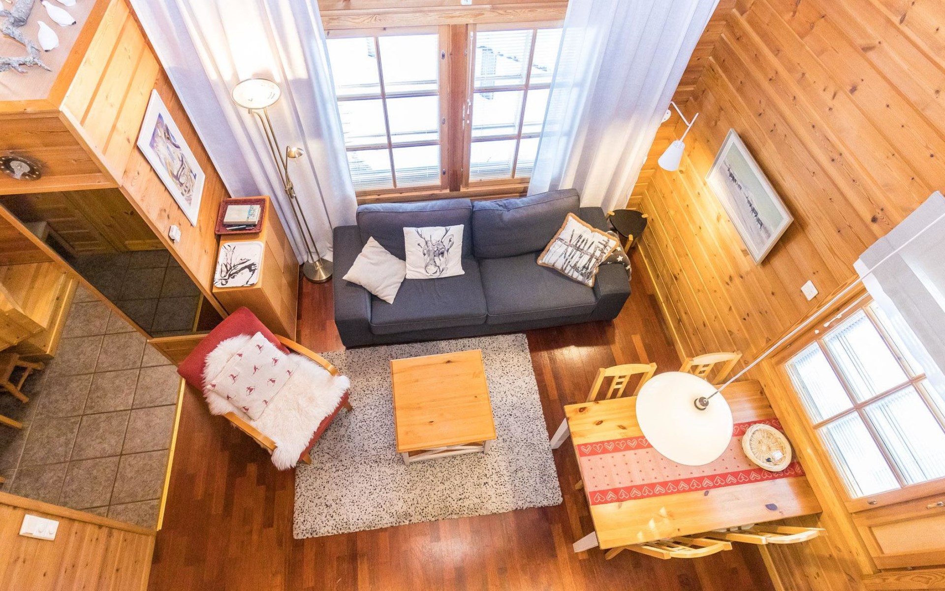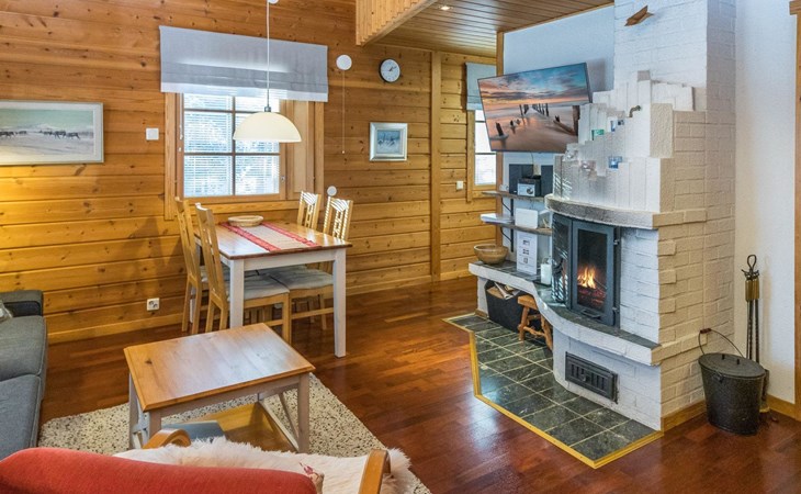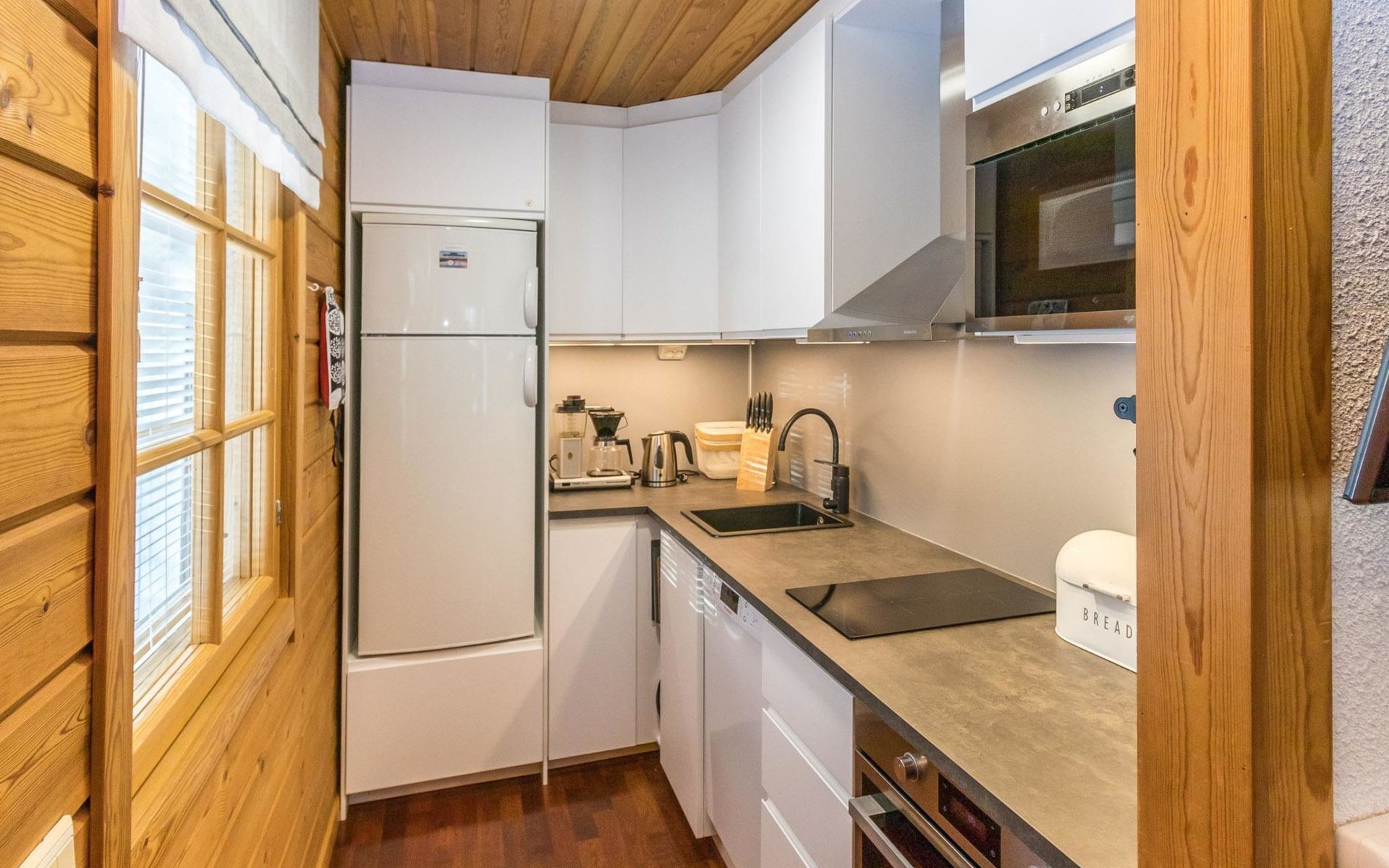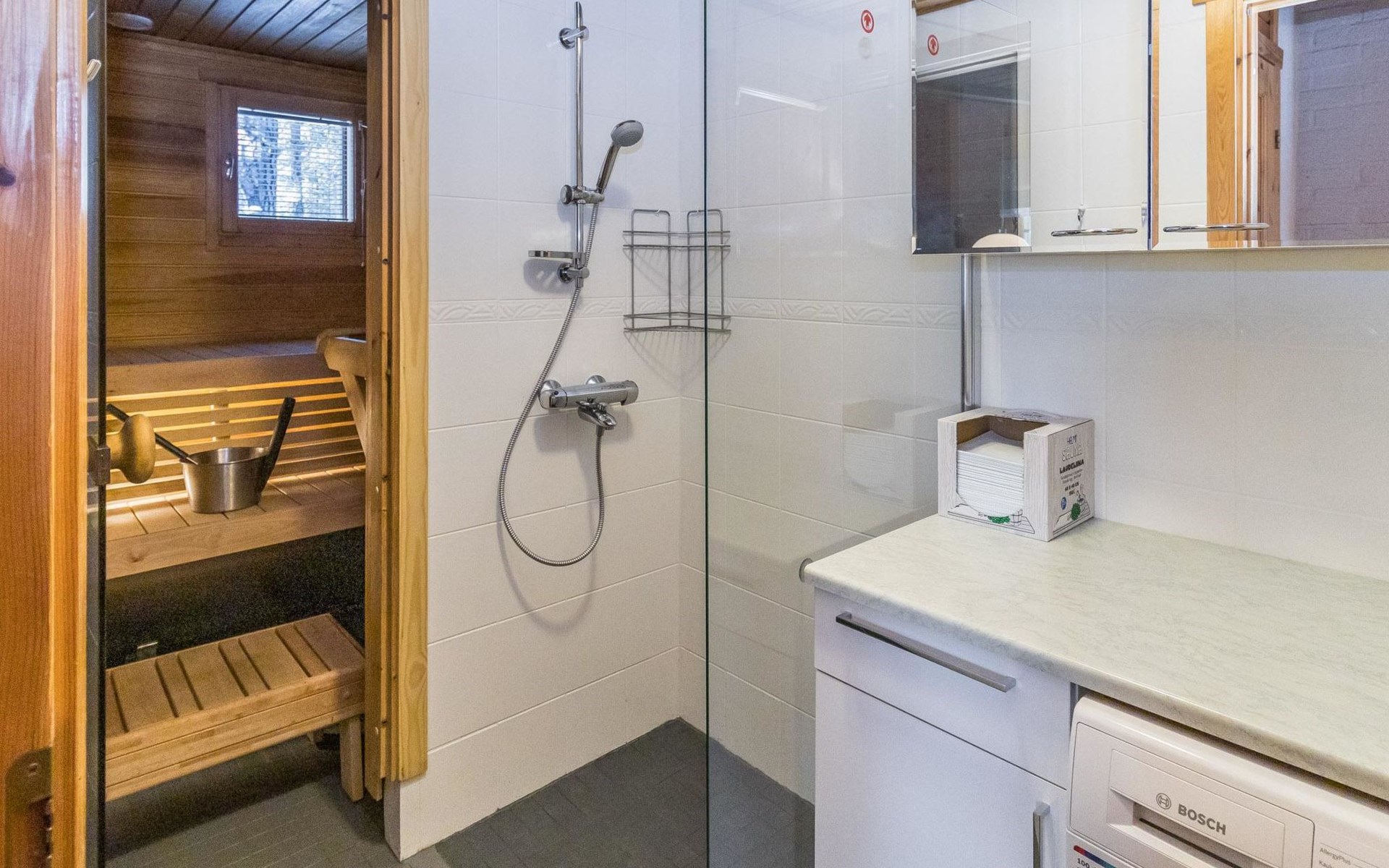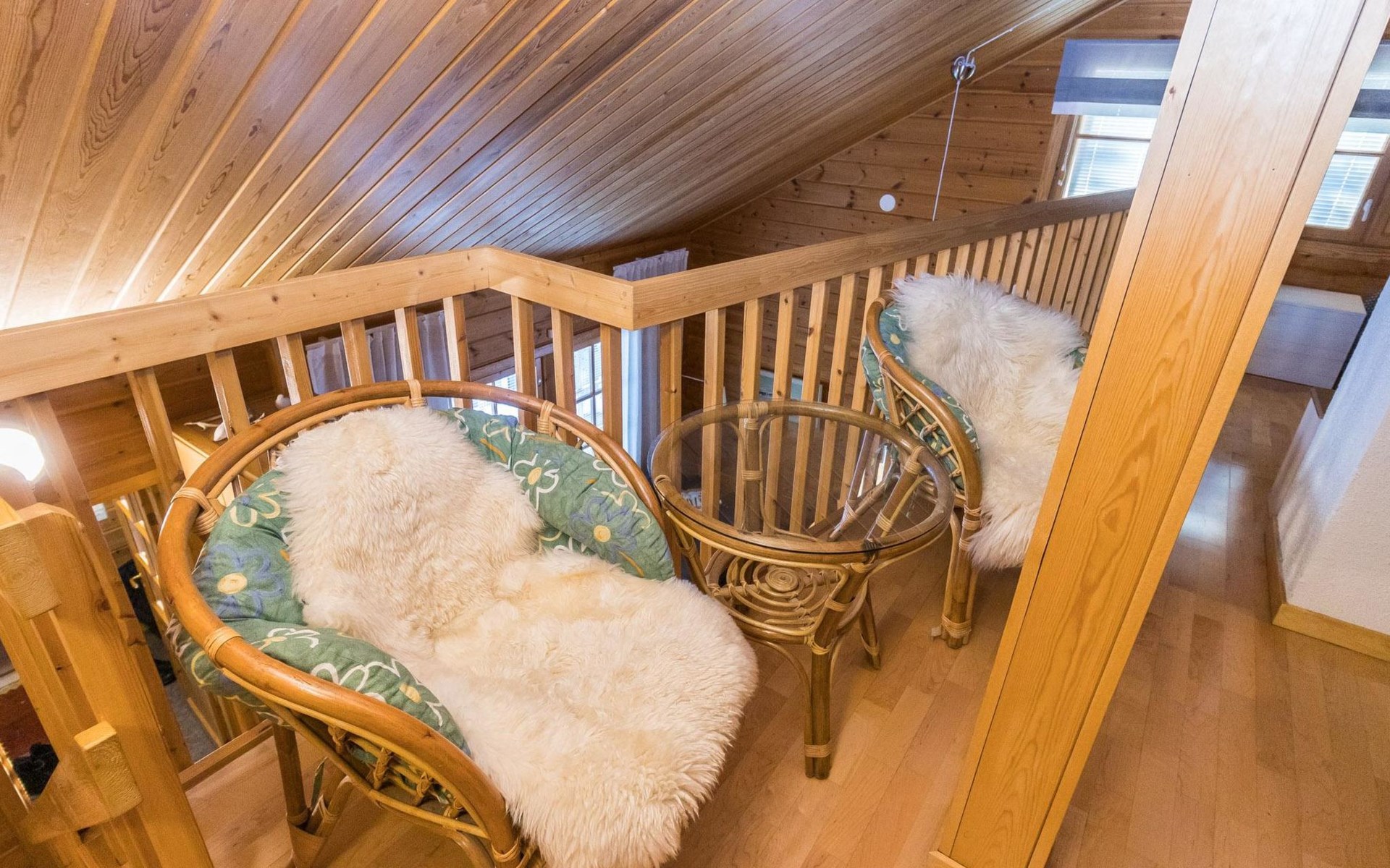 The 42-square-meter apartment has a kitchen/living room, a bedroom, a loft, a bathroom, a sauna, a toilet and a terrace. There is a ski storage room with a lubrication table in the storage.